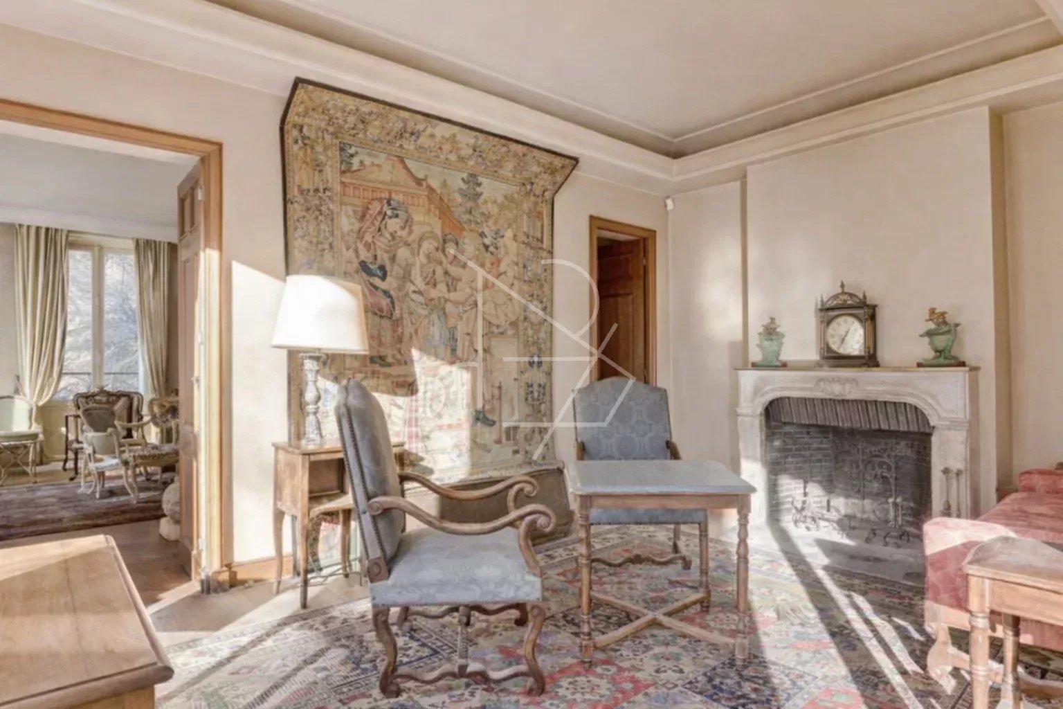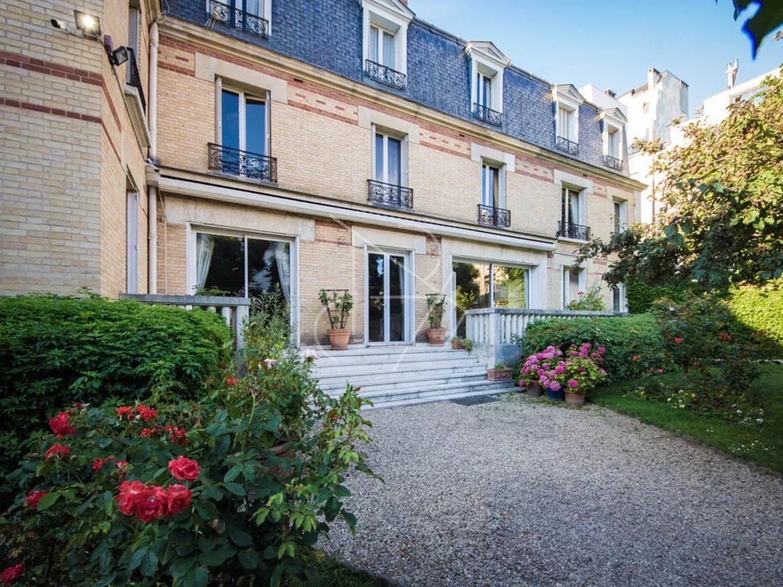 Description du bien Ce domaine familial, transmis depuis plusieurs générations - ou venait déjeuner régulièrement Gustave Eiffel, est constitué de 3 bâtiments du XIXe siècle (1846 -1860) de caractère - dont une maison de maître et deux dépendances avec habitation, reliées par une verrière à charpente métallique Eiffel, nichées au coeur d' une parcelle arborée de 1065m², rare à Paris, à deux pas du Village d'Auteuil. - La maison de maître, ou « Le Château », 360m² Carrez (surface au sol 364m²) se développe sur 3 niveaux (R+2) et 112m² env. de sous- sol aménageable (avec fenêtres) plus une cave à vin professionnelle (19m²). Elégante demeure en briques apparentes, avec une toiture recouverte de zinc et d’ardoises, dotée d’une vaste terrasse orientée plein sud. Elle donne sur le parc, avec une large allée en graviers bordée de marronniers et de deux pelouses entourées de roseraies. Elle comporte 15 pièces dont 8 chambres, 3 salles de bain, trois cabinets de toilette. - L’ancienne Ecurie a conservé tout son cachet avec ses attributs au rez-de-chaussée (sellerie, stalles), aménagé en bureau et studio. L'habitation à l'étage, 104m²Carrez ( 118m² surface au sol), comporte trois pièces en duplex (combles aménagés) : un grand séjour avec cheminée du XVIIIe, deux chambres, deux salles de bain. Une cave. Deux emplacements de parking. En face, un jardin exposé Ouest pourrait lui être dédié. Accès possible par le Hameau Boileau. - Le Garage / Atelier bénéficiant des verrières à charpente métallique a conservé son usage au rez-de-chaussée avec 4 à 5 emplacements de parking , tout en abritant encore une Rolls Royce blanche de collection ainsi que deux calèches d'époque. Il pourrait faire l'objet d'un réaménagement superbe , avec la possibilité d'une hauteur sous plafond cathédrale. L'habitation à l' étage, 122m² Carrez (148m² surface au sol) comporte cinq pièces en duplex (combles aménagées) : un grand séjour lumineux, une cuiisne dinatoire, quatre chambres, deux salles de bain. Ce domaine unique en plein Paris présente un très fort potentiel de réaménagement, de développement et de valorisation des surfaces et des bâtiments. Superficie totale Carrez des 3 bâtiments : 586 m2. Superficie totale au sol : 630m² Surface totale des annexes non Carrez (aménageables) : 367m² DPE : G/374 ; GES :G/109 Estimation des coûts annuels d'énergie du logement : 16 310 € - 22 110 € Logement à consommation énergétique excessive :G DPE : F/400 ; GES : F/88 Estimation des coûts annuels d'énergie du logement : 7 480 € - 10 170 € Logement à consommation énergétique excessive : F Honoraires de transaction 3,85 % TTC à la charge de l'acquéreur. Prix net vendeur : 18.000.000 € Les informations sur les risques auxquels ce bien est exposé sont disponibles sur le site Géorisques : georisques.gouv.fr W-02RB6F
