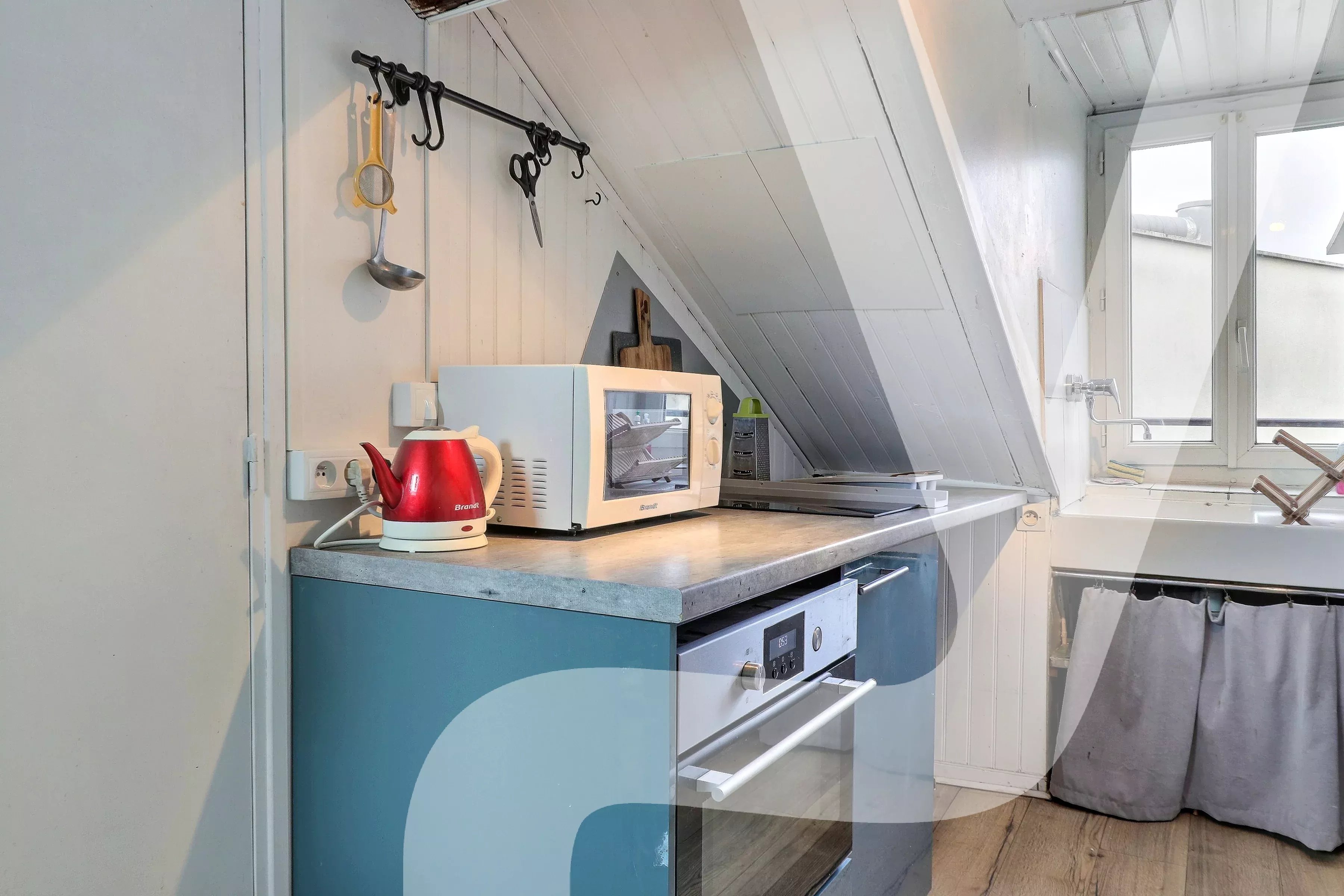 l'agence CityLife vous présente à la location en bail meublé 1 an renouvelable ce deux pièces de caractère niché au 4ème et dernier étage d'un immeuble ancien.