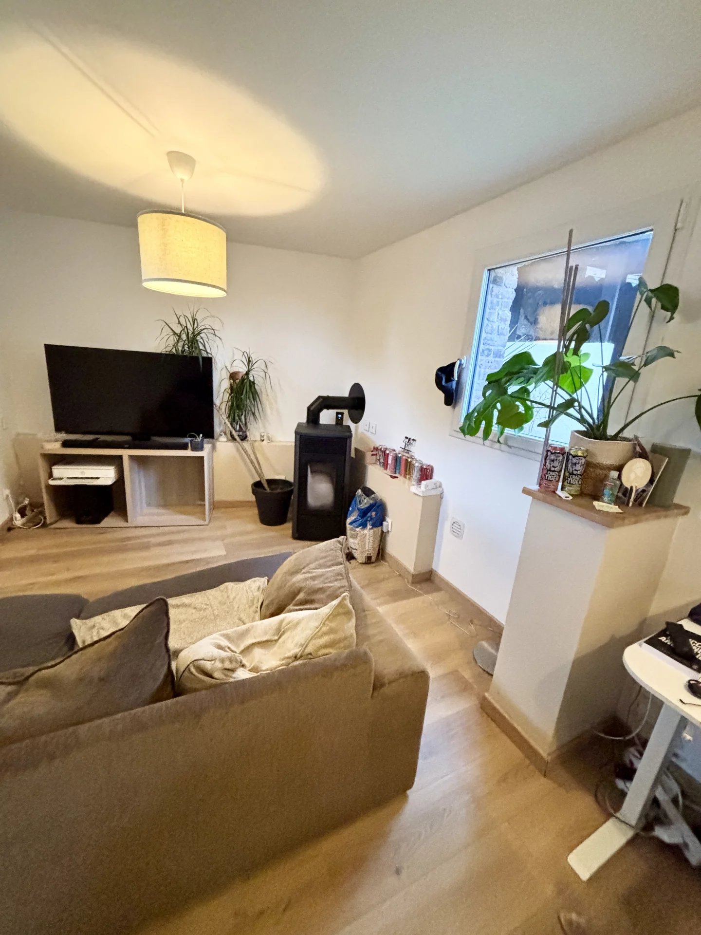 Au rez-de-chaussée une entrée ouvrant sur un séjour chaleureux équipé d'un poêle à granulés, idéal pour des ambiances douillettes en toute saison, une cuisine équipée.