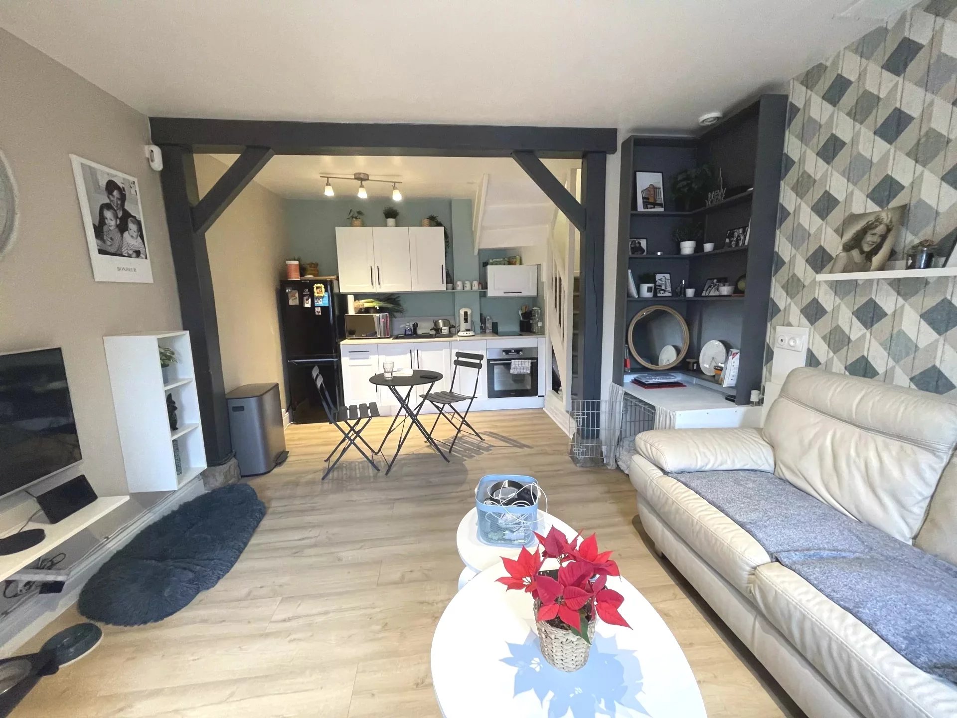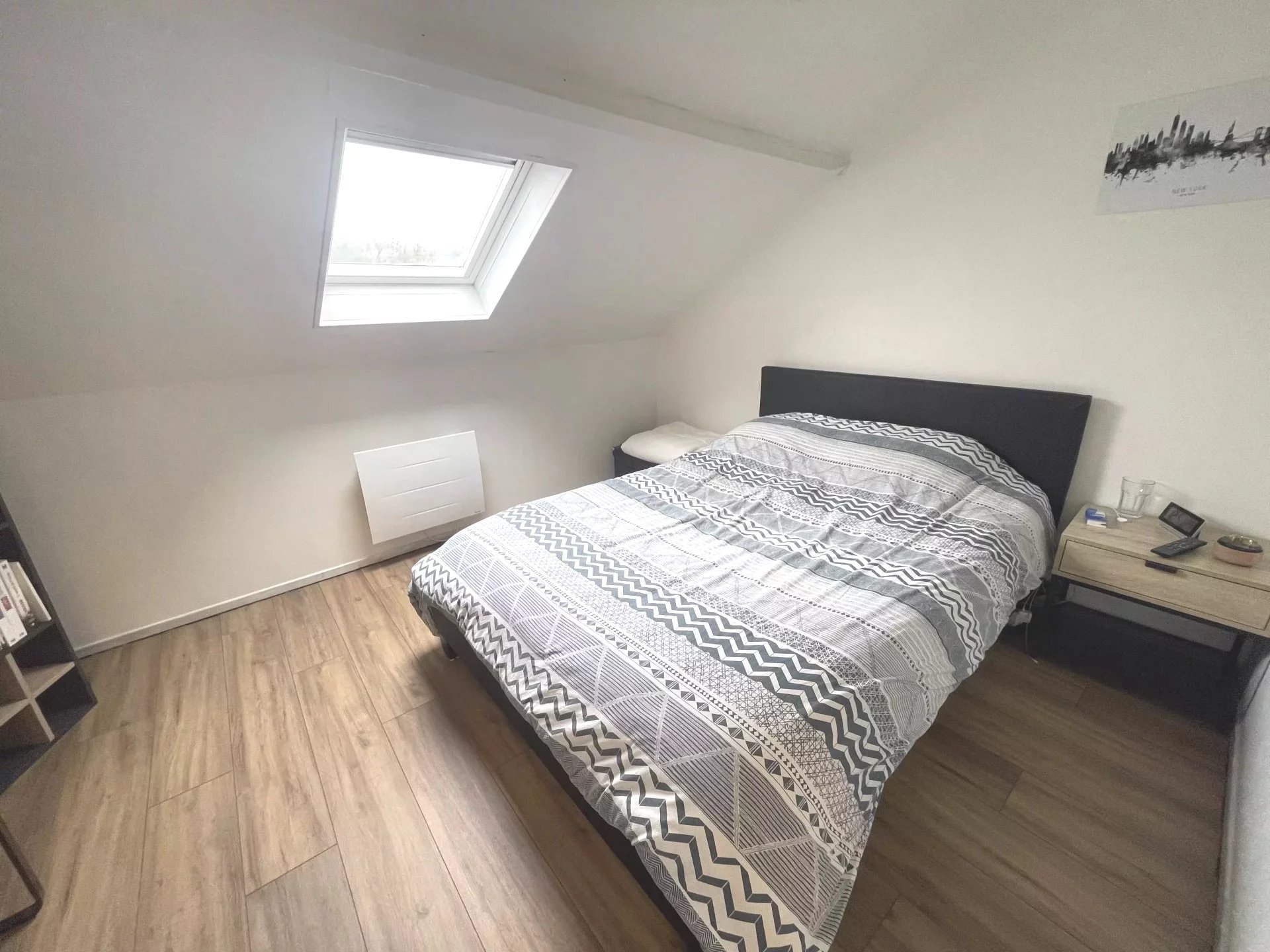 Elle vous offre au rdc un séjour avec cuisine ouverte équipée, à l'étage un palier dessert une grande chambre, une salle de douche et toilette/lingerie.