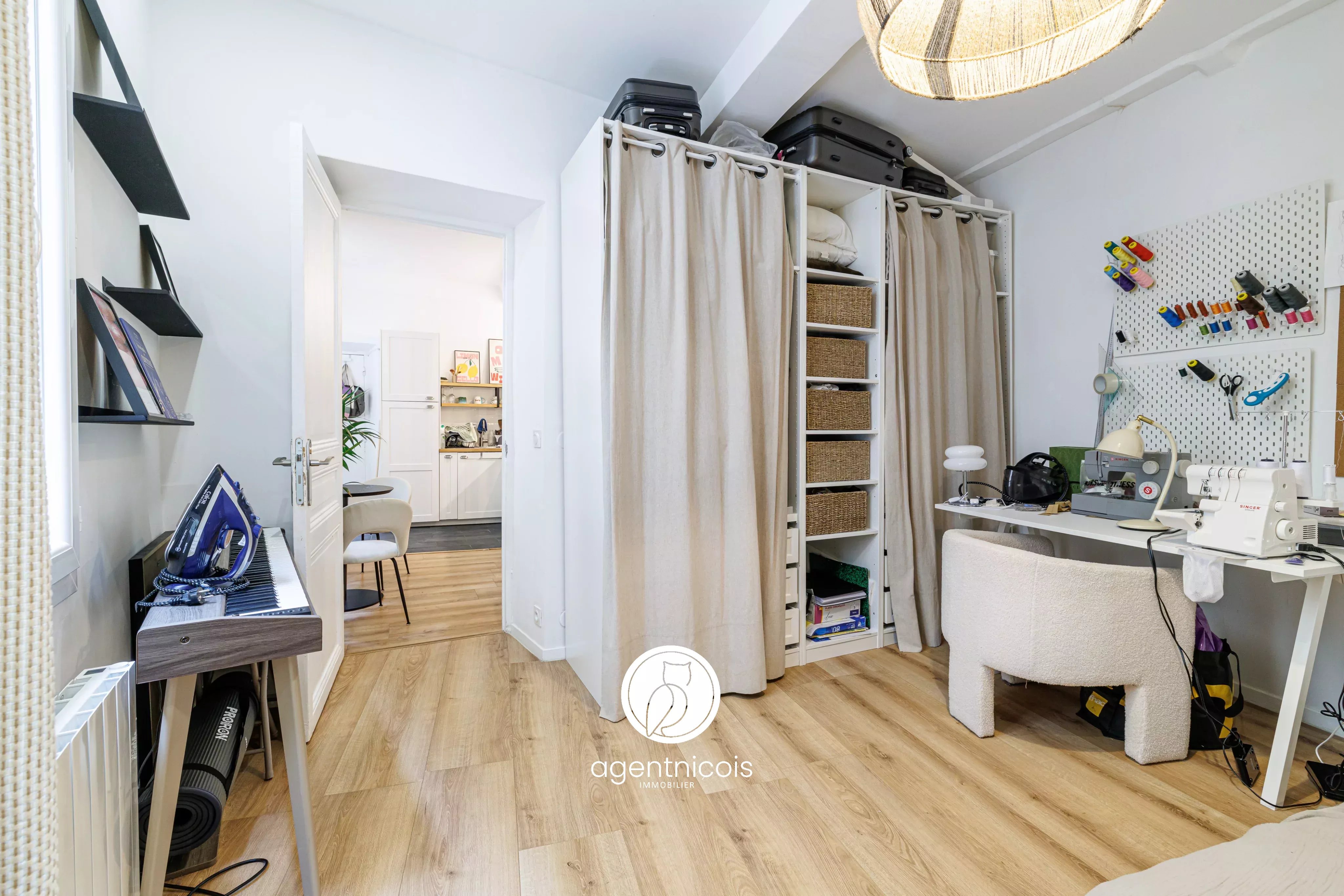 Une cuisine ouverte sur le séjour, une chambre spacieuse bénéficiant de nombreux rangements ainsi que d'une salle d'eau moderne.
