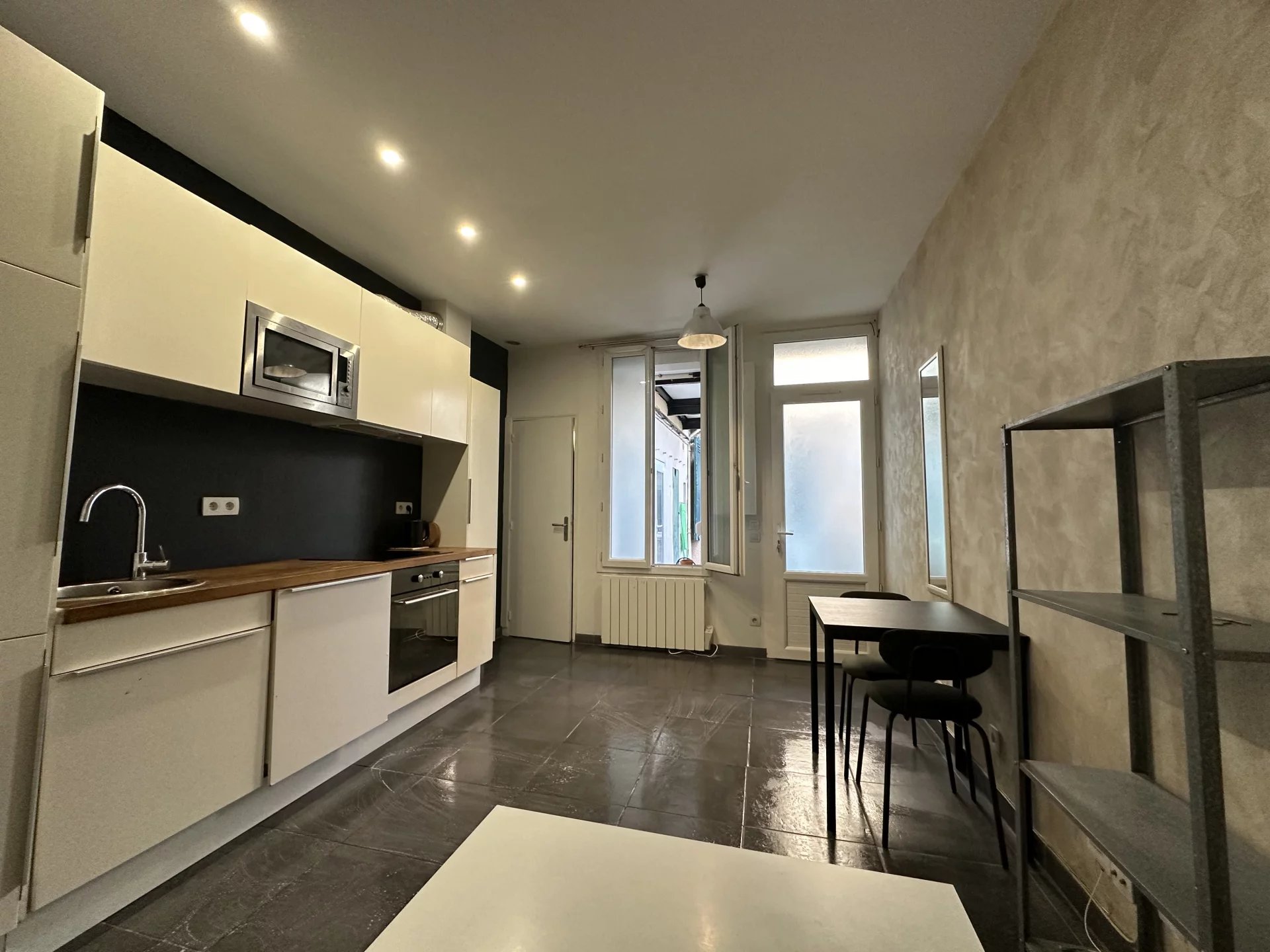appartement T2 meublé avec cour BAIL MEUBLÉ LIBRE le 2 mars Rue Vilaris à Bordeaux Situé à 6 min à pied de la gare St jean et du tram C et D, proche des bus et de toutes commodités, à l'arrière d'un petit immeuble en pierre, sur cour, venez découvrir ce T2 de 30 m2 environ entièrement équipé avec une cour de 10m2. Comprenant, un séjour avec cuisine entièrement, équipée , un coin nuit avec grand placard et salle d'eau, un WC séparé, une buanderie accessible depuis la cour avec machine à laver et évier, et une cour privative donnant sur la cour commune de l'immeuble. - Chambre : lit, matelas, étagère et dressing - Séjour : canapé, table basse, étagère, table à manger et deux chaises - Cuisine : rangements, vaisselles complètes, frigo, congélateur, four, plaque, hotte, lave vaisselle. - cour : table, chaise, bac à fleur - buanderie : Machine à laver Loyer : 720€ TTC (700€ + 20€ de charges) Dépôt de garantie : 1 300€ Frais d'agence : 351€ TTC (visites, rédactions des contrats et EDD entrée) Loyer encadré majoré : 19€ / m2 HC + complément de loyer (cour et équipement)