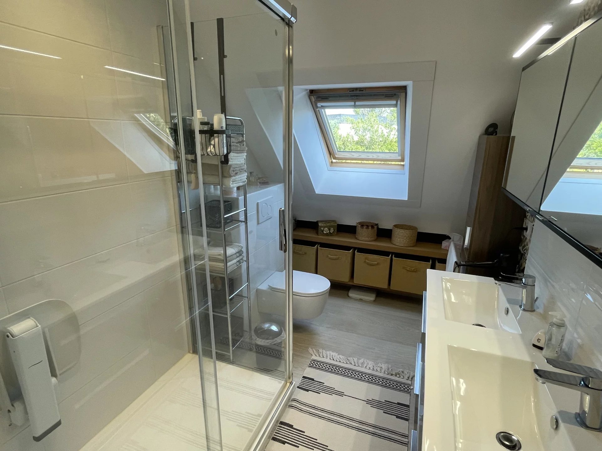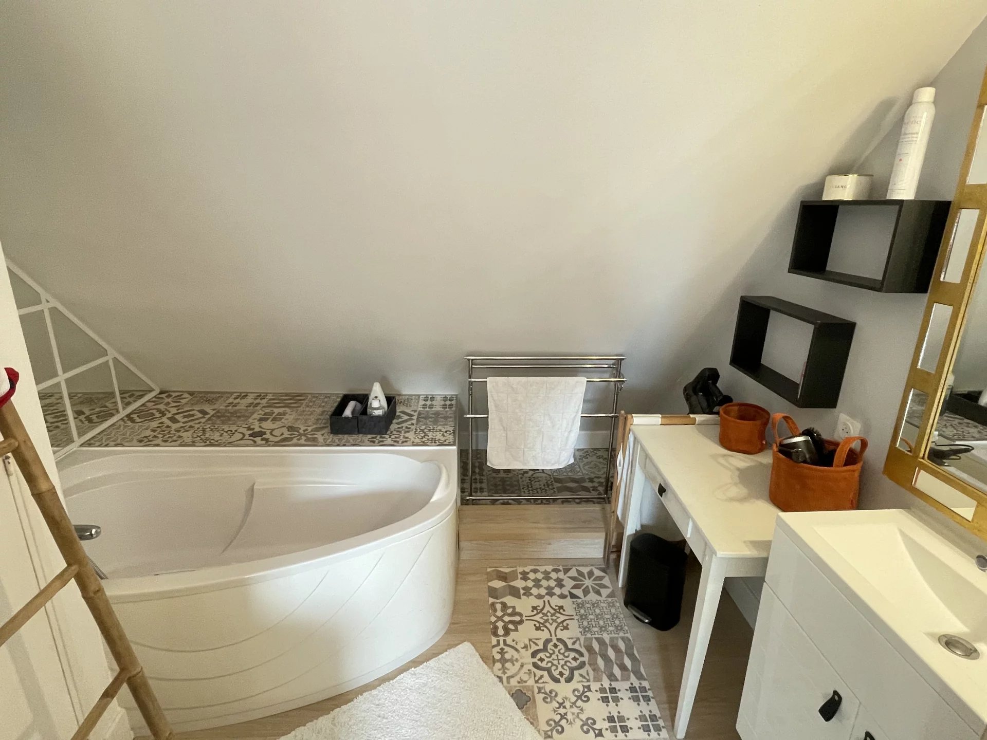 A l'étage, 3 chambres dont une avec salle de bains, un dressing et une salle d'eau avec w-c.