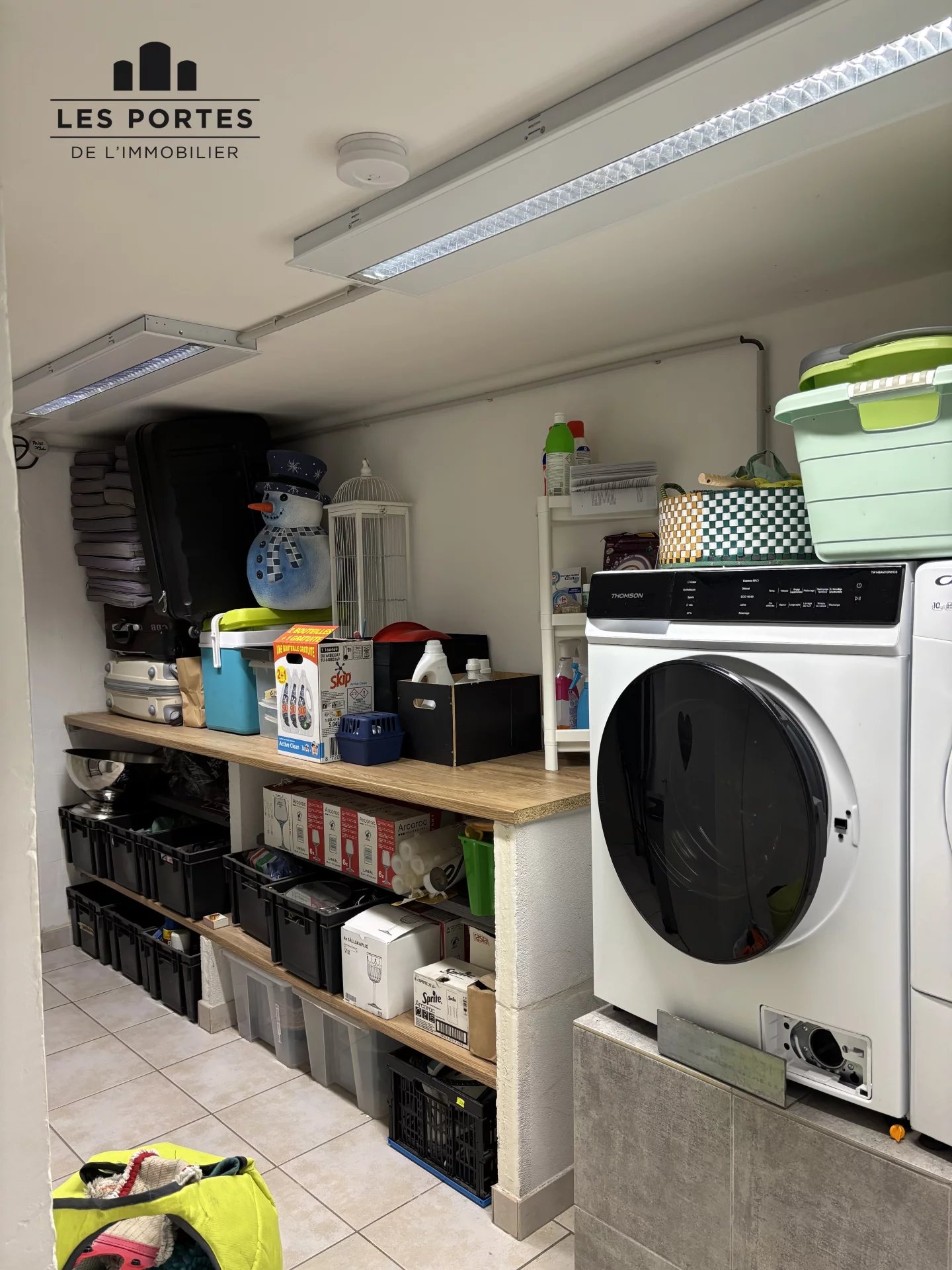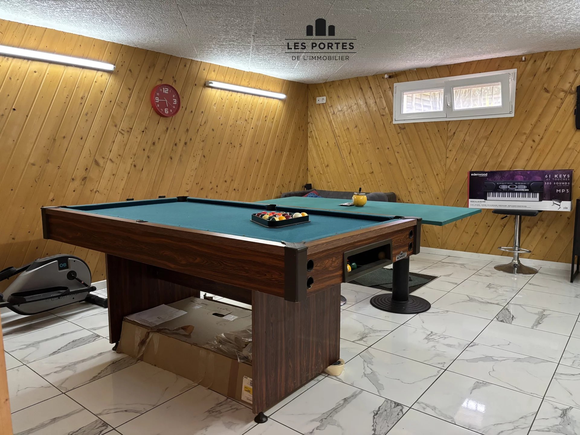- au sous-sol total : pièce carrelée, garage (40,40 m²), salle de jeux carrelée (17,50 m²) et buanderie carrelée.