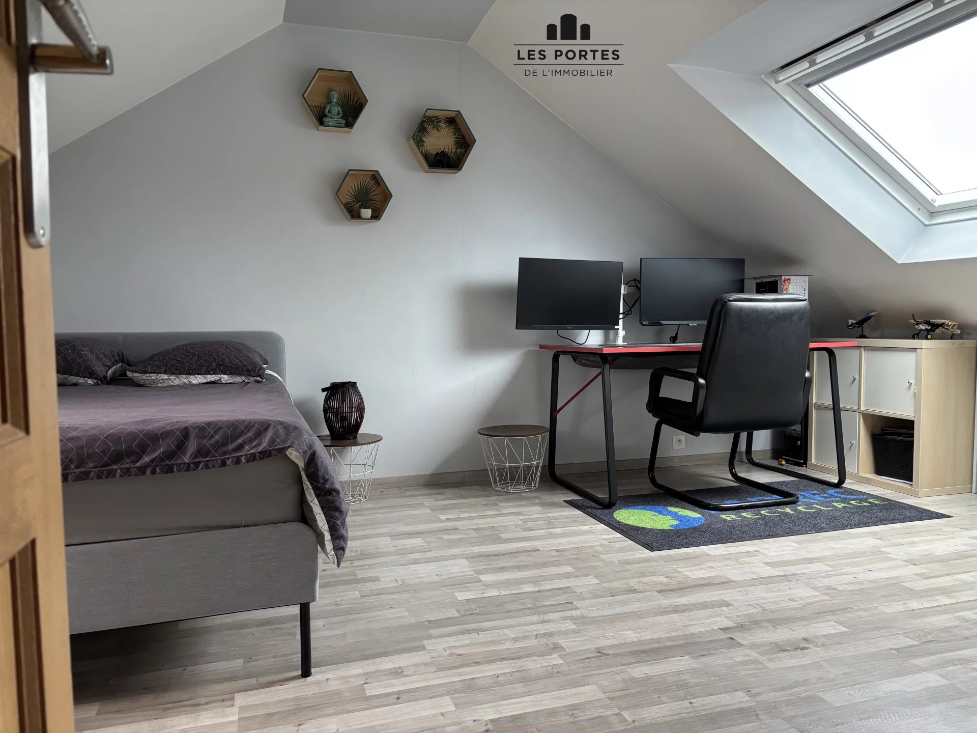 - à l'étage : palier (10,23 m²), deux chambres (9,78 m² (12,51 m² au sol) - 10,80 m²(14,21 m² au sol), une salle d'eau (3,70 m²)et wc (0,94 m²);
