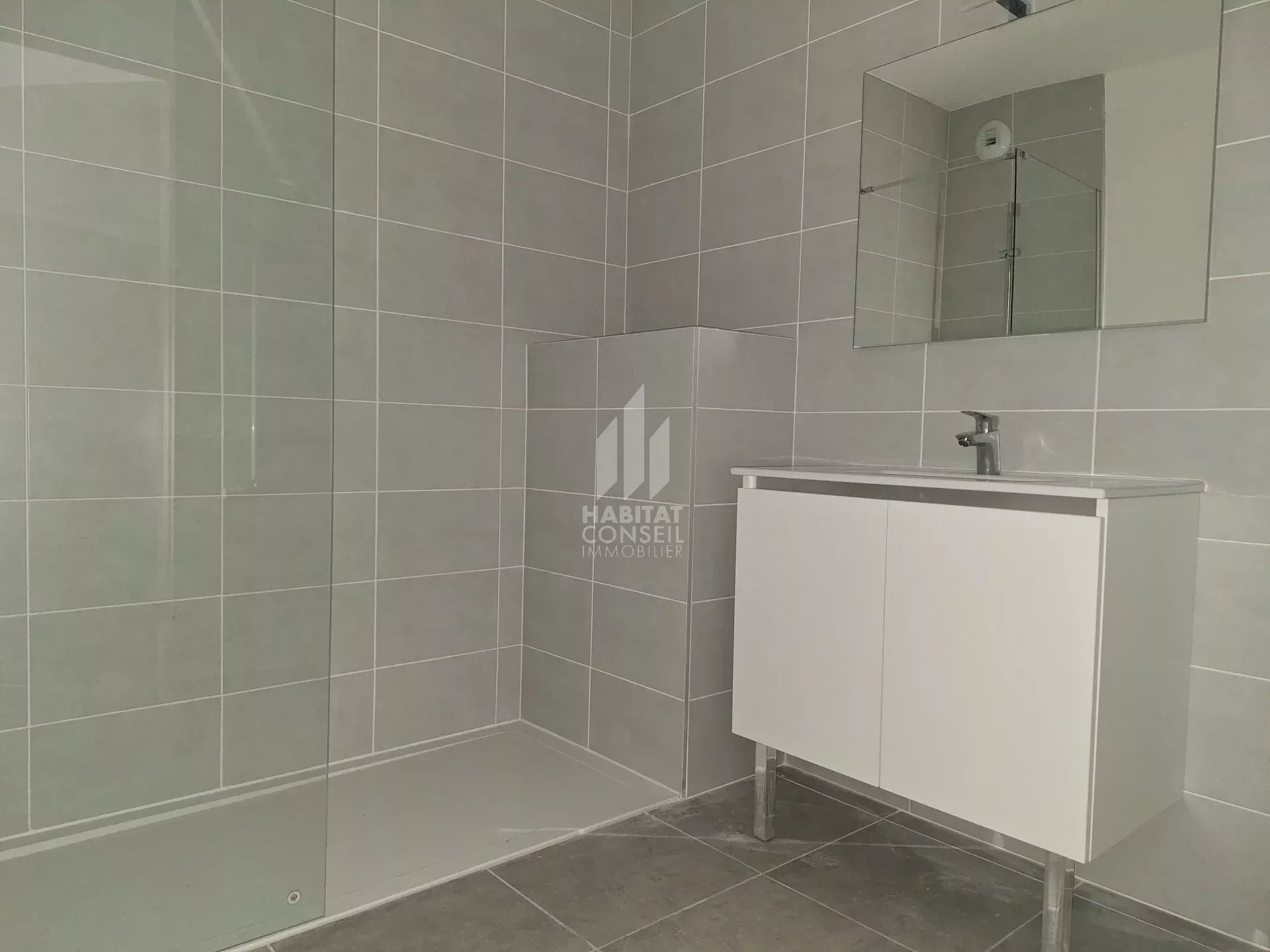 cet appartement se compose d'une entrée avec grand placard, 2 chambres dont une ouverte sur la terrasse, Une belle pièce de vie lumineuse avec une cuisine ouverte sur un séjour de plus de 25 m² donnant accès à une magnifique terrasse de plus de 13 m², un toilette avec WC suspendu et une salle d'eau avec un meuble vasque.