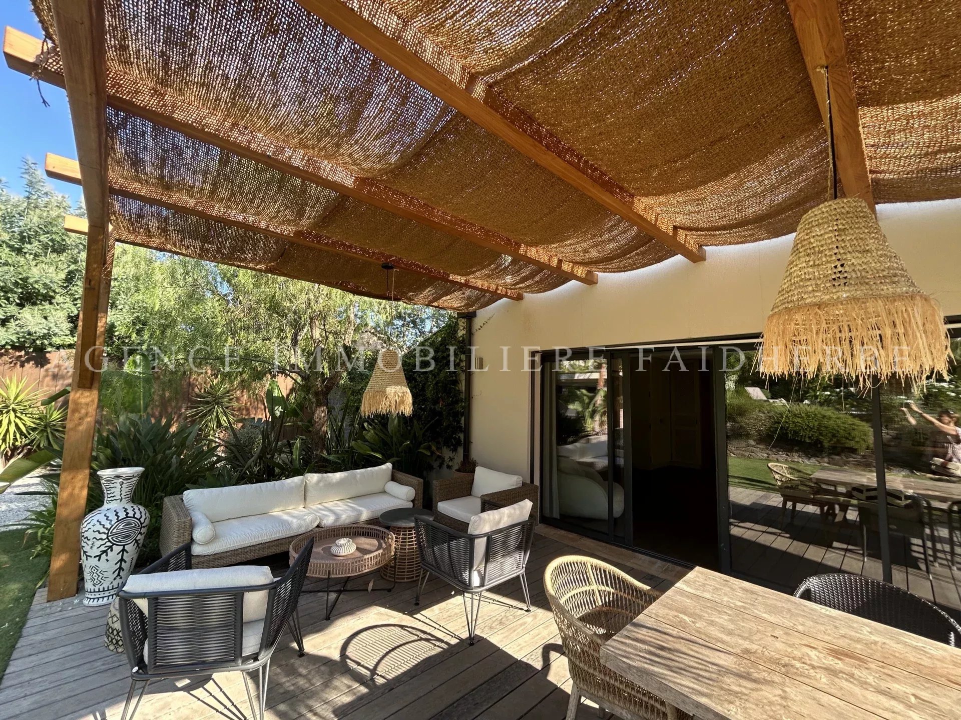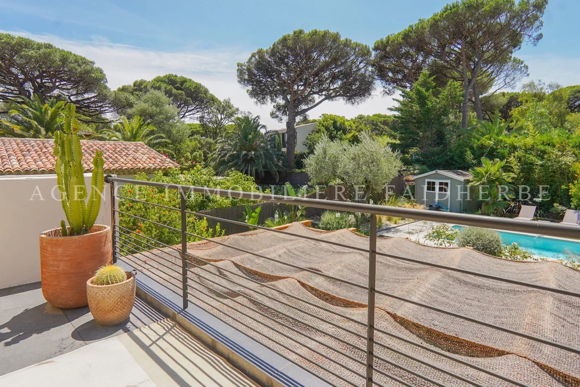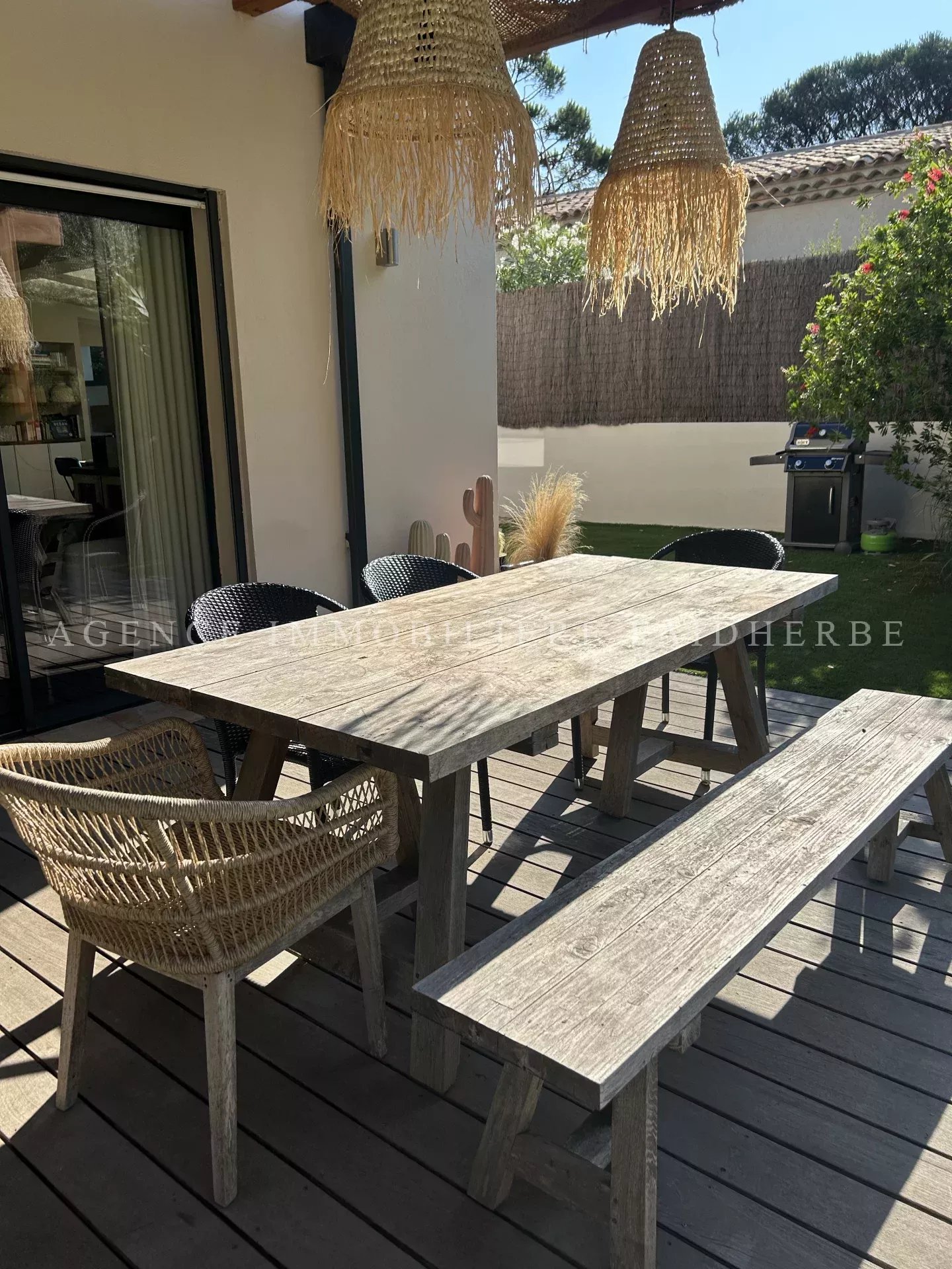Bellissima villa in un dominio privato a pochi minuti a piedi dalla spiaggia dei Salins Composta da un ampio soggiorno con salotto/sala da pranzo e cucina aperta completamente attrezzata, e un piccolo angolo lavanderia. 2 camere al piano giardino con un bagno con doccia. Al piano superiore: una camera doppia, un bagno con doccia e una camera matrimoniale con bagno privato e terrazza. Ampia terrazza esterna con zona pranzo e salotto, giardino e piscina. Spese: pulizie (30 h), biancheria (€30/persona), tassa di soggiorno (€6,91/giorno/persona)