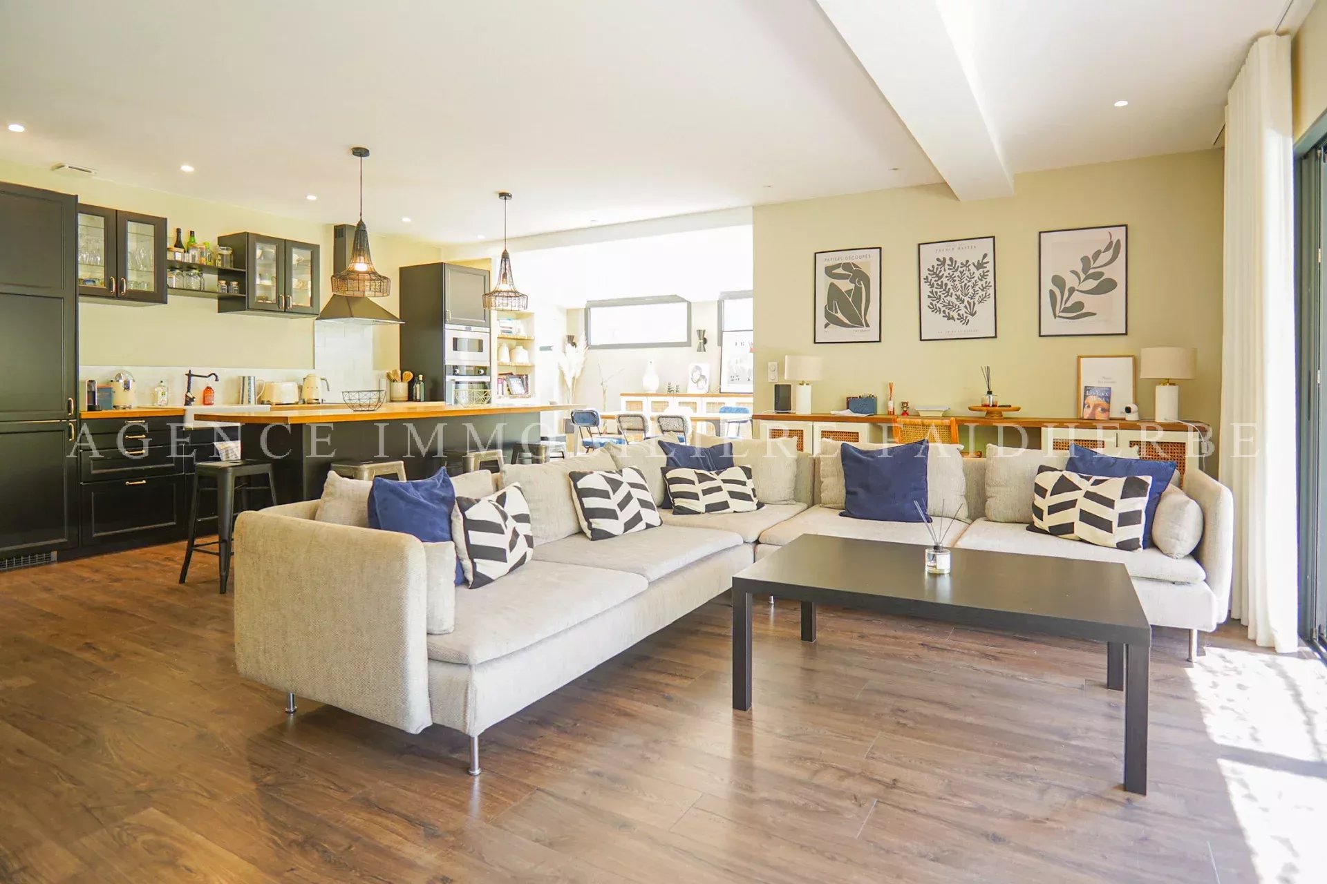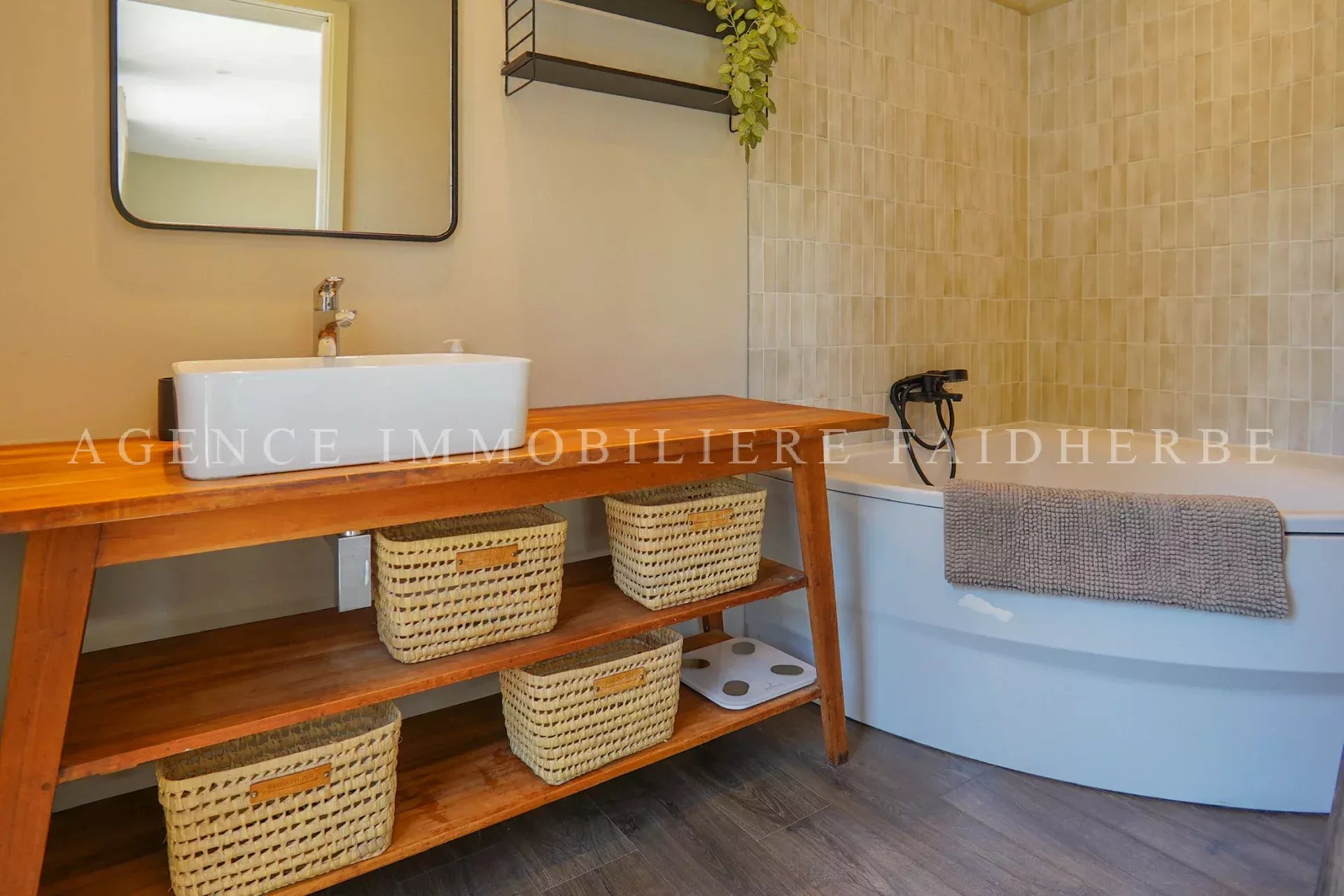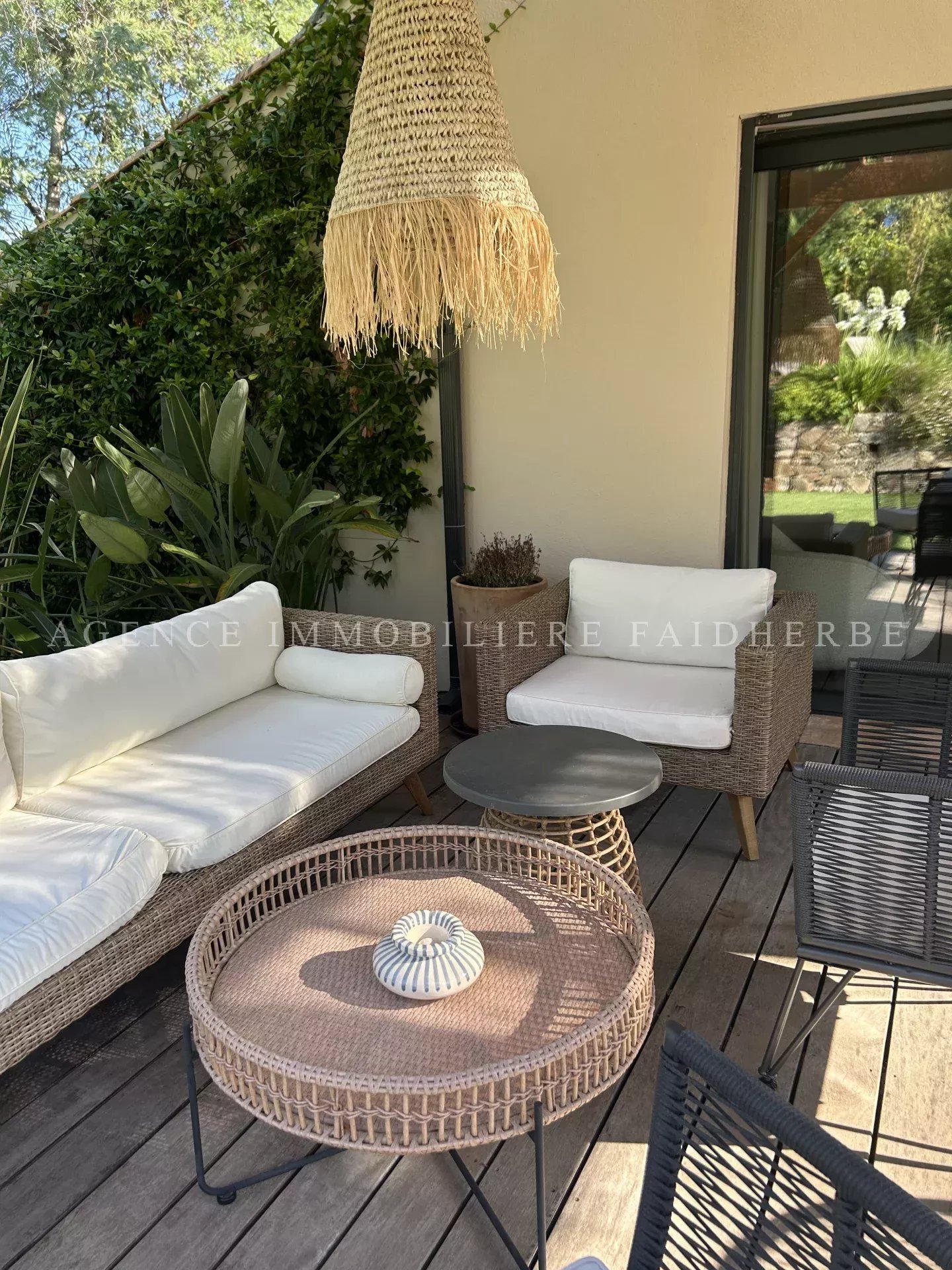 Bellissima villa in un dominio privato a pochi minuti a piedi dalla spiaggia dei Salins Composta da un ampio soggiorno con salotto/sala da pranzo e cucina aperta completamente attrezzata, e un piccolo angolo lavanderia. 2 camere al piano giardino con un bagno con doccia. Al piano superiore: una camera doppia, un bagno con doccia e una camera matrimoniale con bagno privato e terrazza. Ampia terrazza esterna con zona pranzo e salotto, giardino e piscina. Spese: pulizie (30 h), biancheria (€30/persona), tassa di soggiorno (€6,91/giorno/persona)