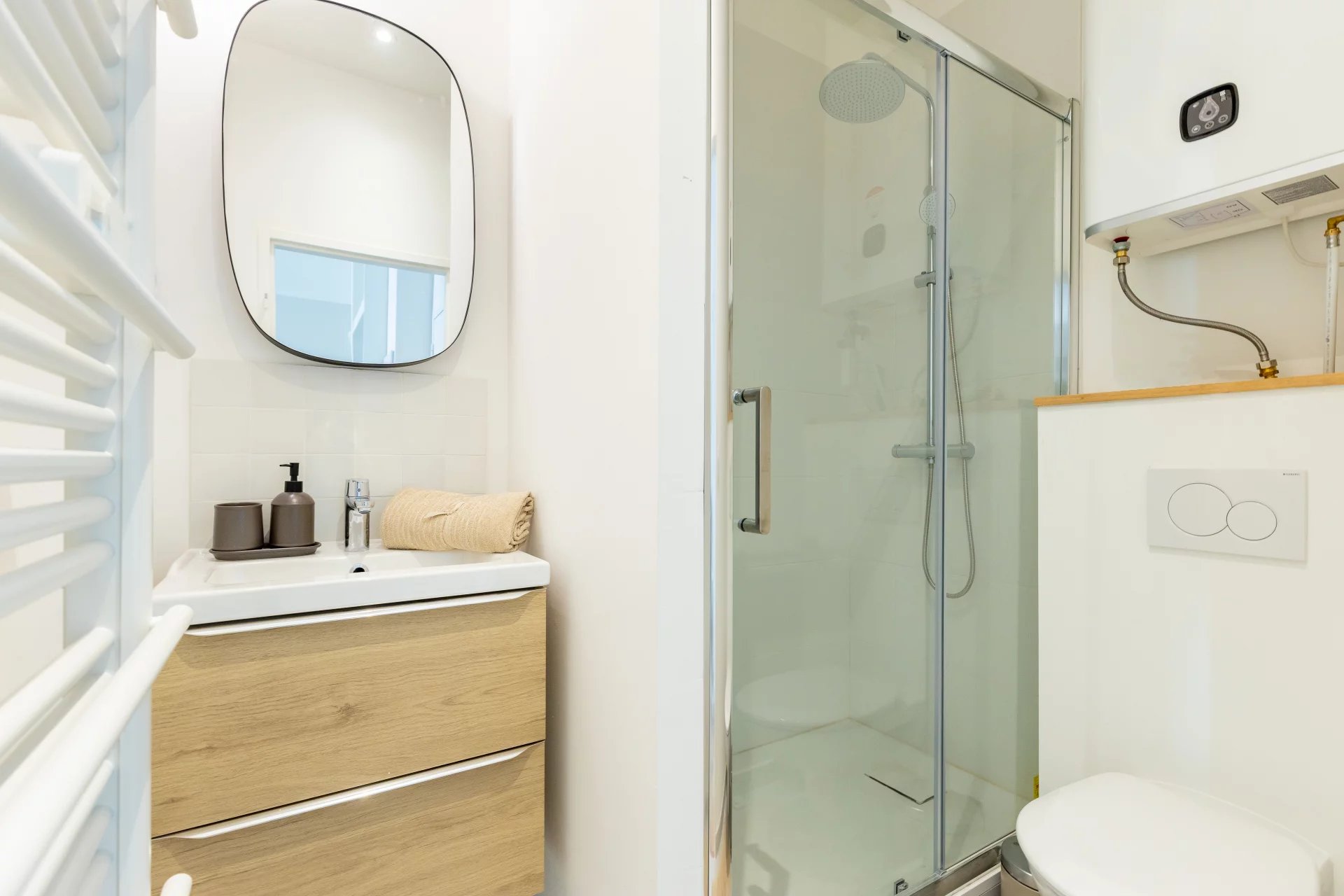 Vestizy vous propose A Louer Marseille 13006 Centre-Ville / Rome magnifique T2 – 37 m2 entièrement refait à neuf et meublé au goût du jour, avec des prestations de standing au calme absolu – coup de cœur assuré. Situé dans une rue calme au troisième étage, ce bien est équipé de : Séjour : - Canapé 3 places convertible - Tables basses gigognes - Console TV - Tapis, poils moyens - Table à manger - 4 places et chaises - Smart TV UHD 55” - Chauffage à inertie sèche Chambre: - Lit Queen size - Couette 240x200 - Deux oreillers - Chauffage - Armoire de rangement Cuisine: - Plaque à induction 4 feus - Réfrigérateur encastré avec partie congélation séparée - Four encastré à chaleur tournante - Four micro-ondes – grill combiné - Hotte à conduit - Lave-linge - Jeu d’ustensiles de cuisine complet Salle de bains : - Douche italienne - WC suspendu - Chauffe-eau extra plat dernier génération Description : Cet appartement a été entièrement rénové aux dernières normes (œuvre – plomberie – électricité). Les matériaux et la décoration ont été soigneusement sélectionnés et conçus par un architecte d’intérieur. Par ailleurs, il bénéficie d’une belle luminosité. Situé proche de la Rue de Rome en plein centre-ville dans le 1er arrondissement de Marseille, très bonne desserte par les transports en commun (Métro, bus, Tramway). Vie de quartier assurée (commerces, librairie, fromagerie, caves à vin, restaurants…). Il saura vous séduire et vous faire profiter de son calme et de son positionnement idéal. Il est par ailleurs équipé d’internet. Pour plus de renseignements veuillez contacter votre agence. Loyer : 870€ + 30€ de charges Dépôt de garantie: 1740€ Adresse : Rue de la Glace Attention : Sérieuses références exigées.Location disponible le 1er Mars. Les informations sur les risques auxquels ce bien est exposé sont disponibles sur le site Géorisques : www.georisques.gouv.fr »