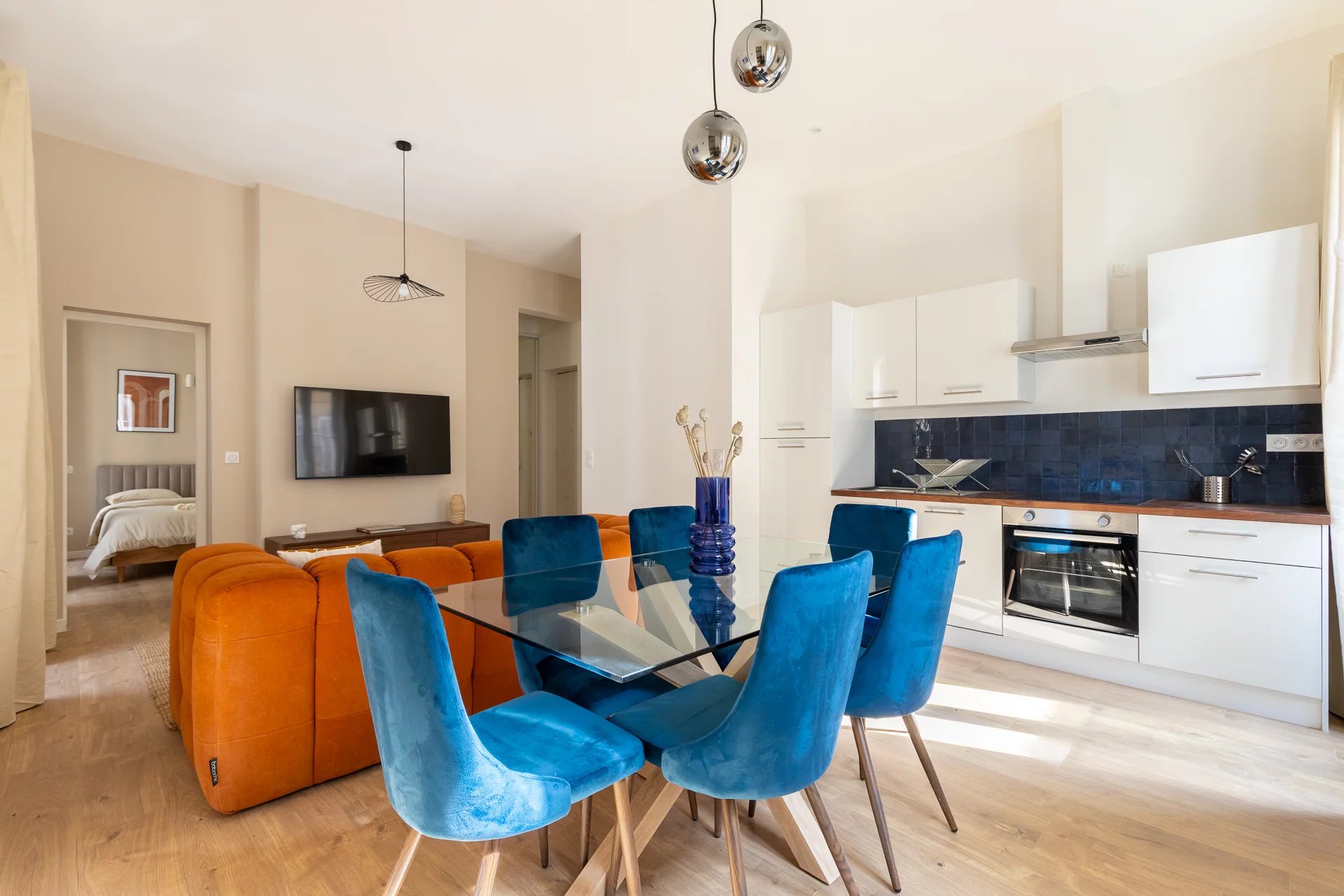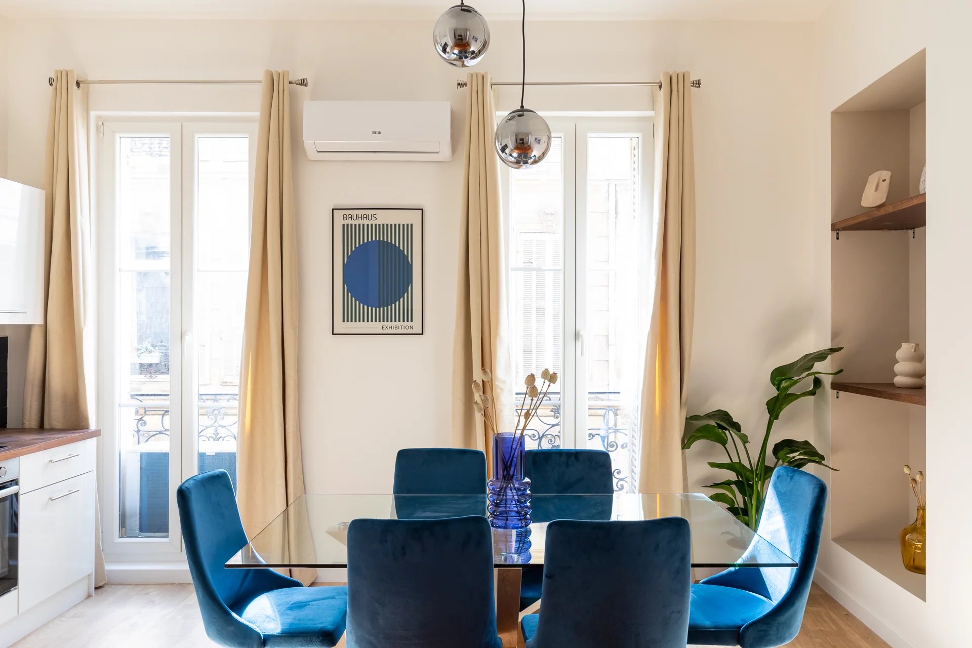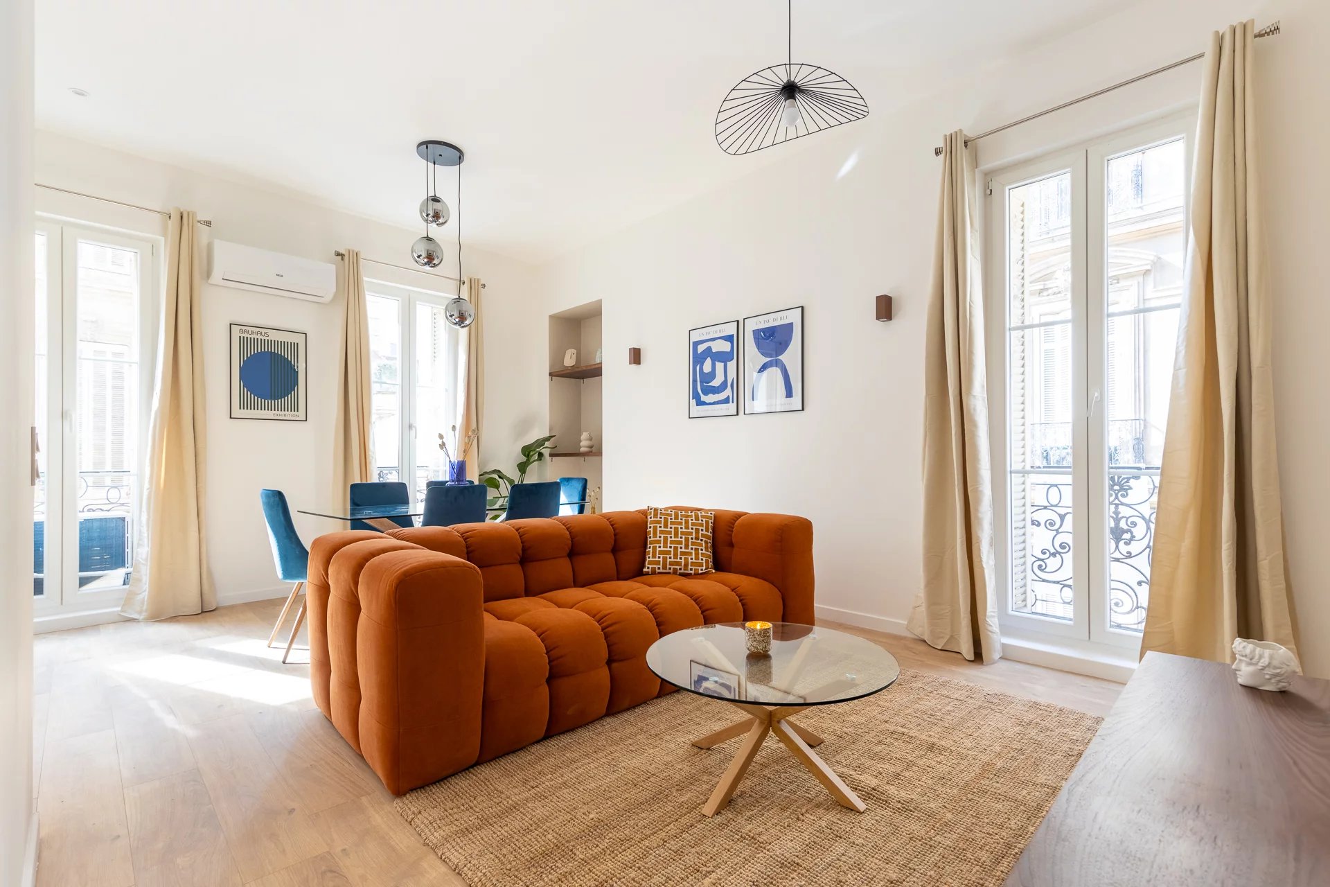 Vestizy vous propose A Louer Prefecture /Castellane 13006 Marseille un sublime T2 tout climatisé de 43m2 entièrement refait à neuf et meublé au goût du jour. Cet appartement "coup de coeur" alliant le charme de l'ancien et le contemporain se compose d'une master suite parentale avec salle d'eau, d'un grand séjour lumineux avec sa cuisine ouverte entièrement aménagée et équipée ainsi que de WC indépendants avec lave-mains. Cet appartement en angle a été rénové aux dernières normes (œuvre - plomberie - électricité). Les matériaux et la décoration ont étés soigneusement sélectionnés et conçus par un architecte d'intérieur. Par ailleurs il est baigné de lumière et possède de beaux volumes. L'appartement se situe dans le très prisé quartier des Antiquaires, proche de toutes les commodités, universités, des commerces, concepts stores et des galeries d’exposition très chics à proximité directe de l’appartement et du métro Estrangin et Castellane ainsi que du tramway Castellane. Ce bien est équipé de : Séjour : - Canapé 3 places - Table basse - Tapis - Table + 4 chaises - TV LED 4K 108cm - Lustre design - Climatisation Chambre dispose : - Lit 2 places 140x200 avec housse de lit protectrice deux oreillers une couette 240x200 (draps fournis) - Placards de rangements - Fenêtre double vitrage - Téléviseur HD Cuisine : - Plaque 4 feux vitrocéramique - Réfrigérateur / congélateur grand format encastré - Four chaleur tournante - Four micro-ondes - Lave Vaisselle - Machine à Laver - Hotte - Jeu d'ustensiles de cuisine complet Salle de bain : - Douche - Meuble Vasque - Sèche-serviettes Des draps et serviettes sont fournis lors de votre arrivée vous n'avez donc plus qu'à poser vos valises et vous installer! Bien situé, au 2ème étage sur 4 d'un immeuble bourgeois. Eau froide, entretien des communs inclus dans les charges, il est disponible de suite pour un bail meublé classique. Vous serez séduits par les prestations de ce bien exceptionnel et rare à la location dans se secteur privilégié. Disponible le 13/02/2025 Honoraires de location : 559€ TTC dont 129€ pour l'état des lieux.