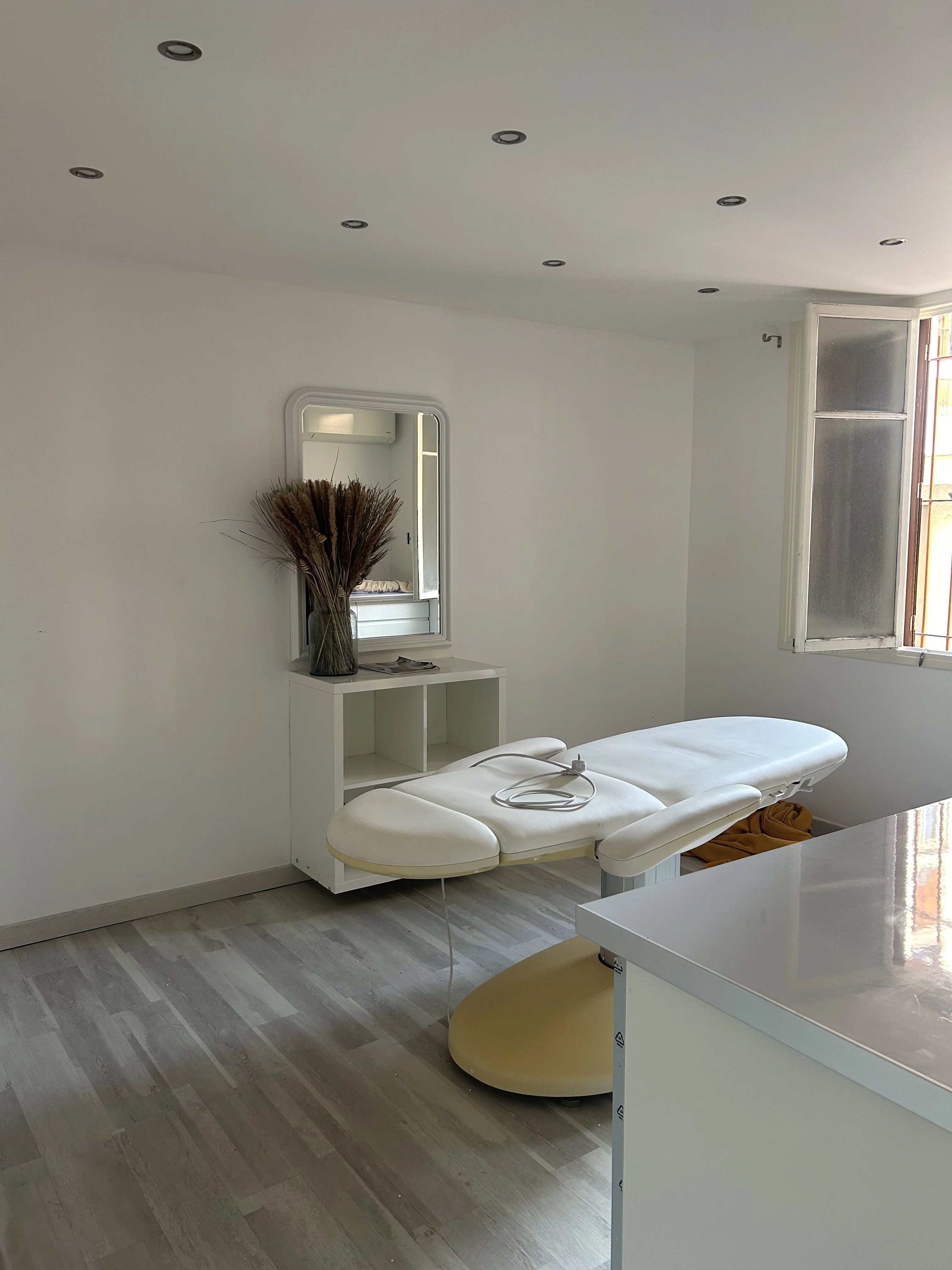 Un local d'environ 58 m² avec 2 vitrines et une entrée sur rue, fermé par un rideau/grille métallique. Une autre entrée se fait par le hall de l’immeuble. Il est composé de 4 pièces principales climatisées, dont 2 donnent sur la cour intérieure de l'ensemble immobilier. Il comprend également un cabinet de toilette avec WC suspendu, vasque avec eau chaude et froide, un placard avec un cumulus. Une petite cave est accessible au sous-sol par le hall d’entrée de l’immeuble. Actuellement aménagé en salon d'esthétique. Possibilité autres commerces ou bureaux. Loyer 700 €/mois Charges 150 € (avec provision taxe foncière)/mois Dépot de garantie 1 400 €. Honoraires 10 % HT du montant cumulé des loyers e la première période triennale soit 2 520 € HT. Contact : Jean-Luc GABORIT, agent commercial, inscrit au RSAC n° 378 180 384