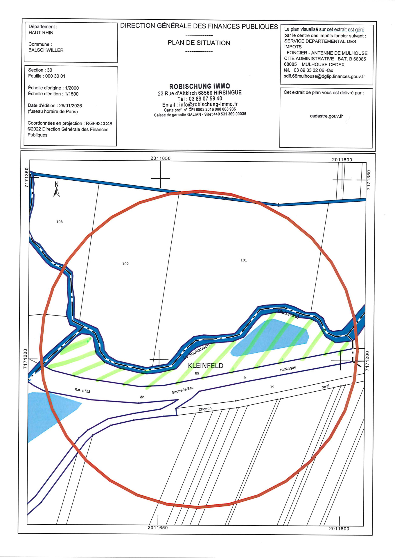 BALSCHWILLER : Terrain de 60 ares avec étang et source, accè