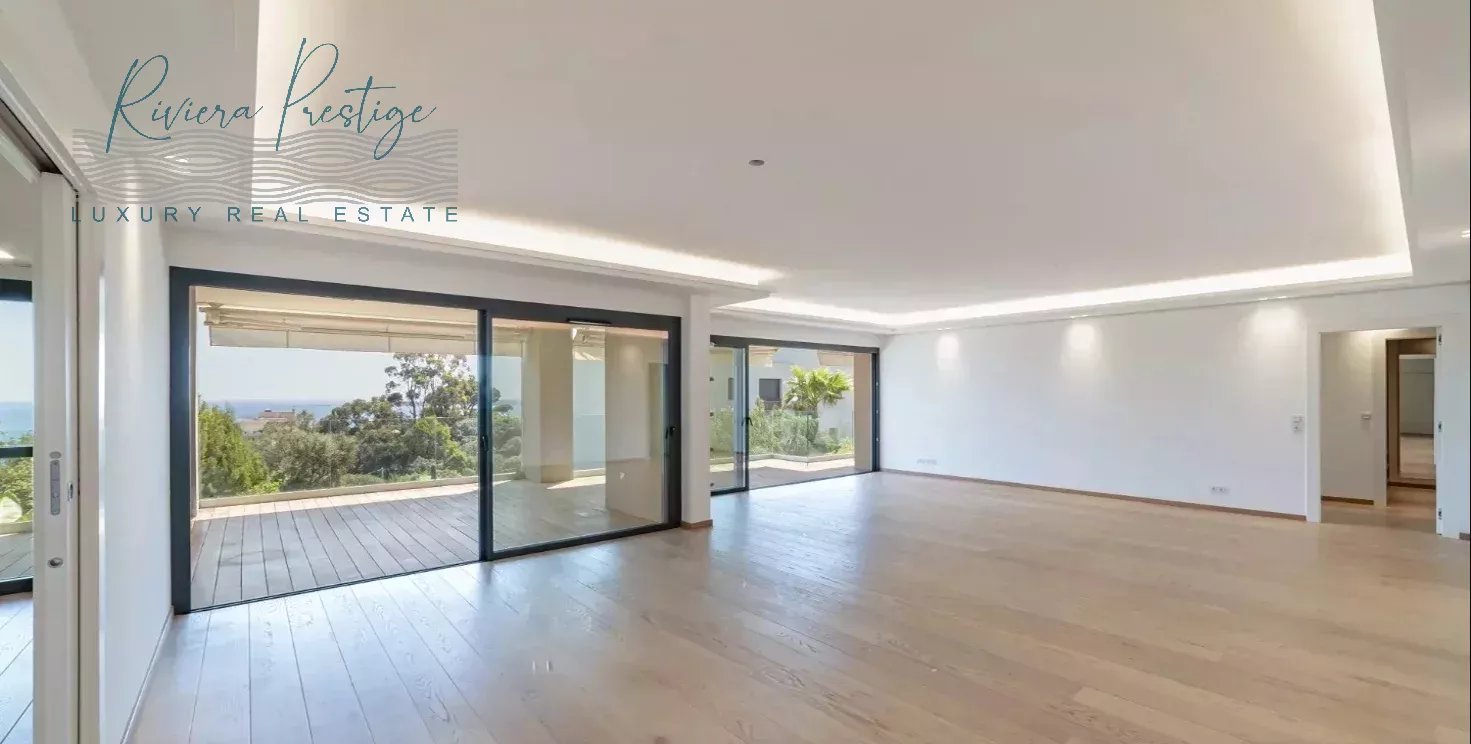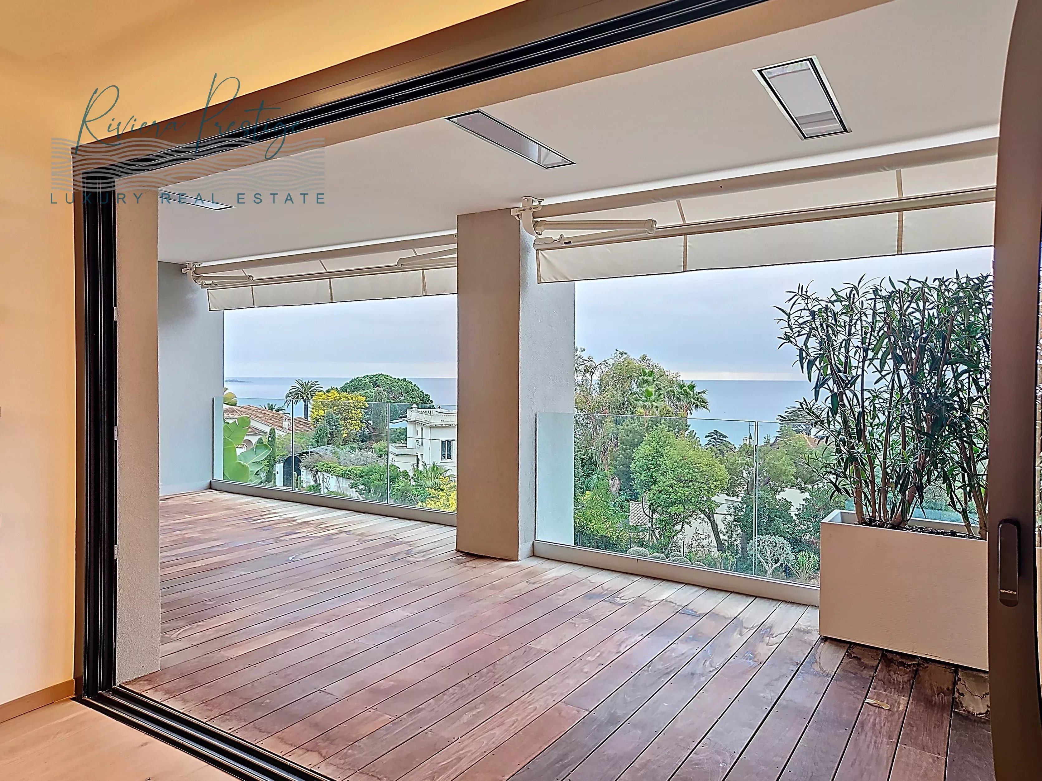 L’appartement s’ouvre sur une vaste terrasse d’environ 50 m², exposée plein sud, offrant une vue dégagée sur la mer.