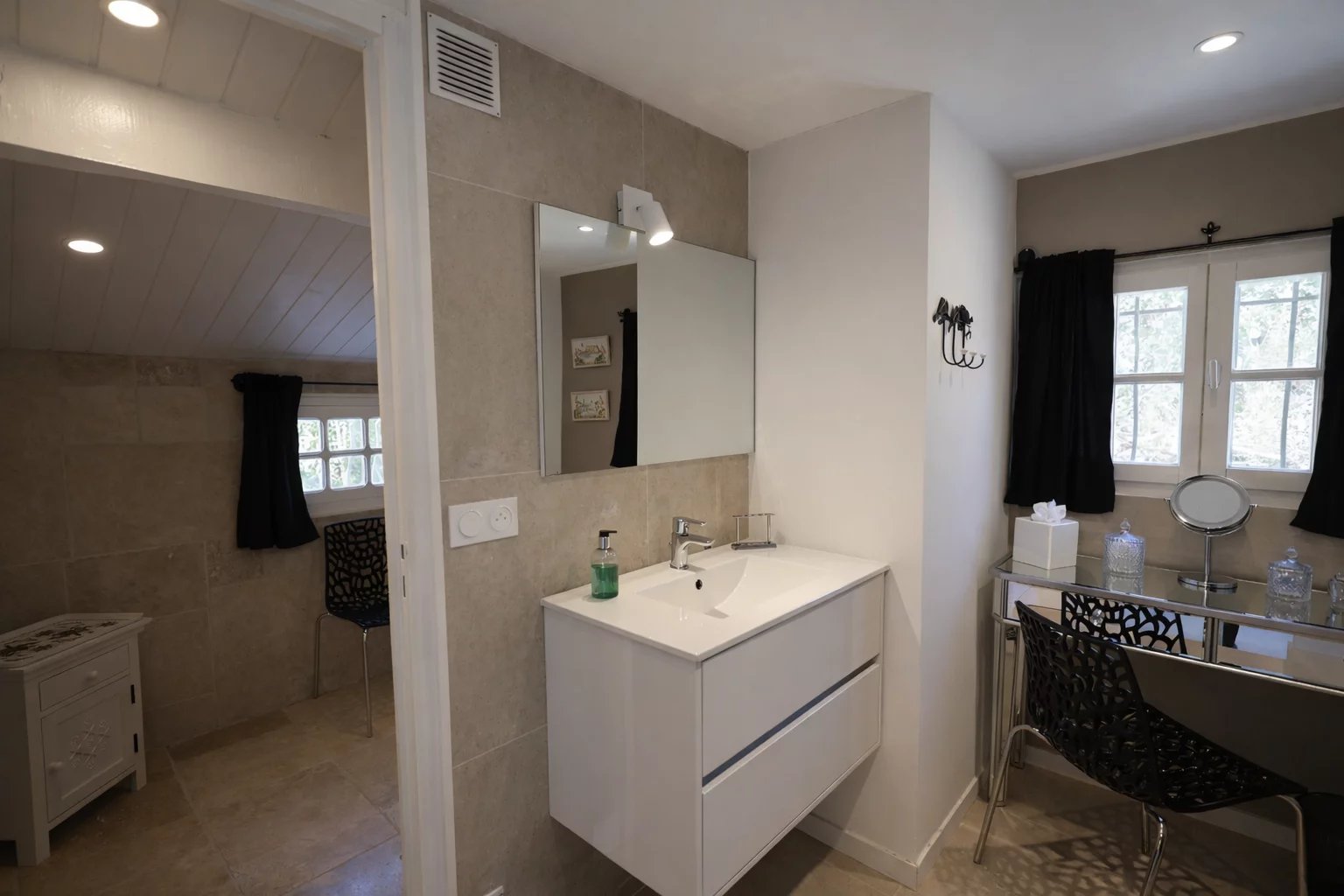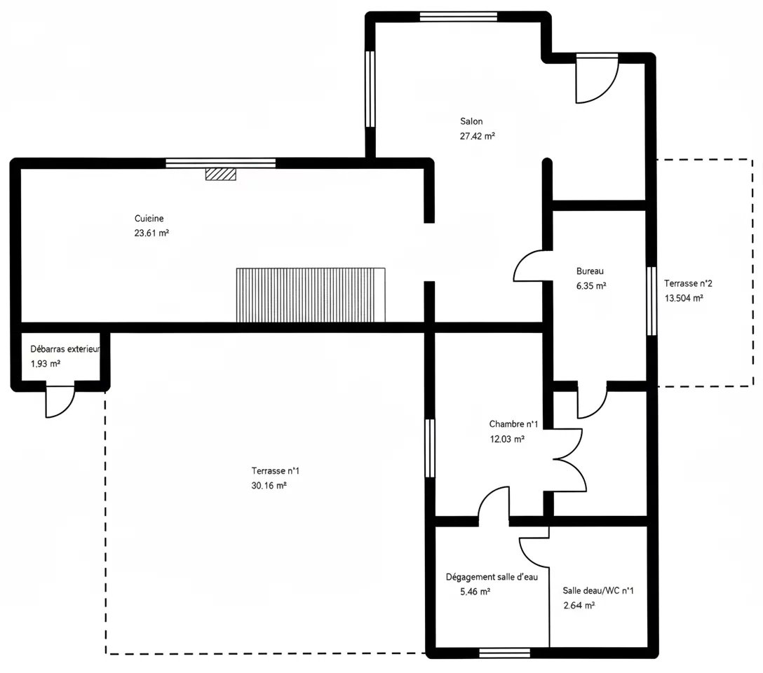 Le rez-de-chaussée se compose d'un salon accueillant, d'un espace d'activité ou salle à manger, et d'une vaste cuisine sous un magnifique plafond cathédrale. Ce niveau dispose également d'une chambre avec salle d'eau privative et d'un espace bureau ou dressing. À l'étage, vous trouverez deux chambres supplémentaires ainsi qu'une salle de bains moderne. Grâce à son agencement fonctionnel, cette demeure de caractère est idéale pour un projet familial ou une résidence principale confortable.