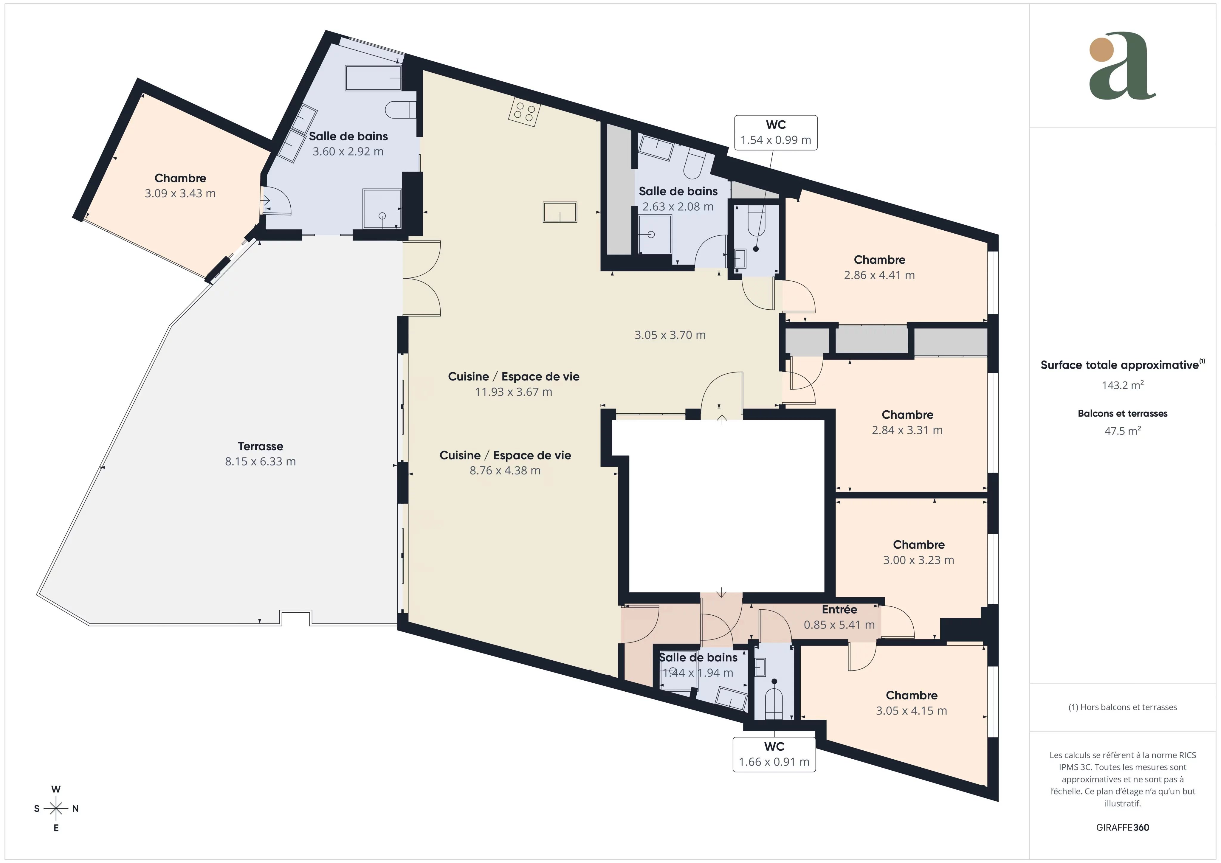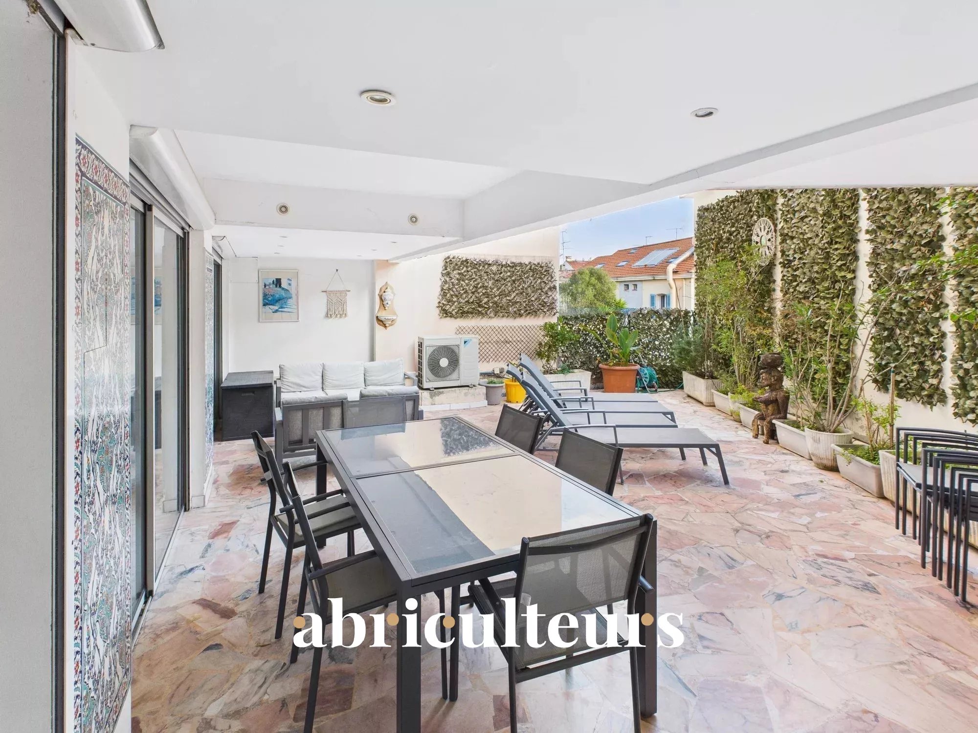 Bienvenue chez Abriculteurs, l’agence familiale qui s’engage à un service d’exception. Découvrez une présentation soignée de ce bien : des photos professionnelles, un plan détaillé et une visite virtuelle immersive pour vous projeter. Faites confiance à notre expertise pour transformer vos projets immobiliers en réussites remarquables. Découvrez cet appartement familial de 6 pièces, situé à seulement 150 mètres du Palais des Festivals, au cœur du quartier La Banane à Cannes. Offrant 143,80 m² habitables et une terrasse aménagée de 45 m² de plain-pied, ce bien rare bénéficie d’un emplacement exceptionnel. L’appartement s’ouvre sur un double séjour lumineux, une cuisine équipée, une buanderie, ainsi que 5 chambres, toutes insonorisées. La configuration actuelle comprend 1 salle de bains (avec baignoire, douche, double vasques), 2 salles de douche, 4 WC dont 2 séparés. Situé au 1er étage d’un immeuble de 1974, en très bon état général, le bien est climatisé (partiellement) et offre de très beaux volumes. Il conviendra aussi bien pour une résidence principale, un usage professionnel (libéral ou bureaux), ou un investissement événementiel grâce à sa localisation premium. Les + du bien : - Adresse centrale à quelques pas du Palais, de la Croisette et des commerces - 5 chambres, 3 pièces d’eau, 4 WC – idéal grande famille, activité libérale ou bureaux - Belle terrasse de 45 m² exposée sud-ouest – rare en centre-ville - Aucun travaux à prévoir – état impeccable - Possibilité d’usage professionnel ou mixte À noter : - Taxe foncière : 2 173 € / an - Taxe d’habitation : 3 056 € / an - Charges : 430 € / mois (chauffage collectif + eau chaude collective) - Chauffage : central – collectif (inclus dans les charges) - Eau chaude : collective - Étage : 1er (ascenseur) - Année de construction : 1974 - État du bien : très bon état général - Bien soumis au statut de la copropriété (28 lots) - Pas de procédure en cours - Eaux usées : tout-à-l’égout - Usage : habitation / profession libérale / usage commercial autorisé - Volets roulants et double vitrage - Digicode / interphone - Possibilité de location de parking ou garage dans l’immeuble Performance énergétique : DPE : Classe C GES : Classe C Prix de vente : 1 415 000 € TTC (Honoraires Abriculteurs à la charge du vendeur) Ce bien a retenu votre intérêt ? Pour organiser la visite avec nous, rien de plus simple, prenez rendez-vous en ligne au moment qui vous convient le mieux. Les informations sur les risques auxquels ce bien est exposé sont disponibles sur le site Georisques : www.georisques.gouv.fr Annonce rédigée sous la responsabilité éditoriale de la SASU Inov’You, immatriculée au RSAC de Nice sous le n° 851 223 610, siège social situé 14 rue Foncet, 06000 Nice, sans détention de fonds, agissant pour le compte de la SARL Abriculteurs Immobilier, immatriculée sous le SIREN n° 837 704 584, titulaire de la carte professionnelle n° CPI 7501 2018 000 025 842, délivrée par la CCI de Paris Île-de-France.