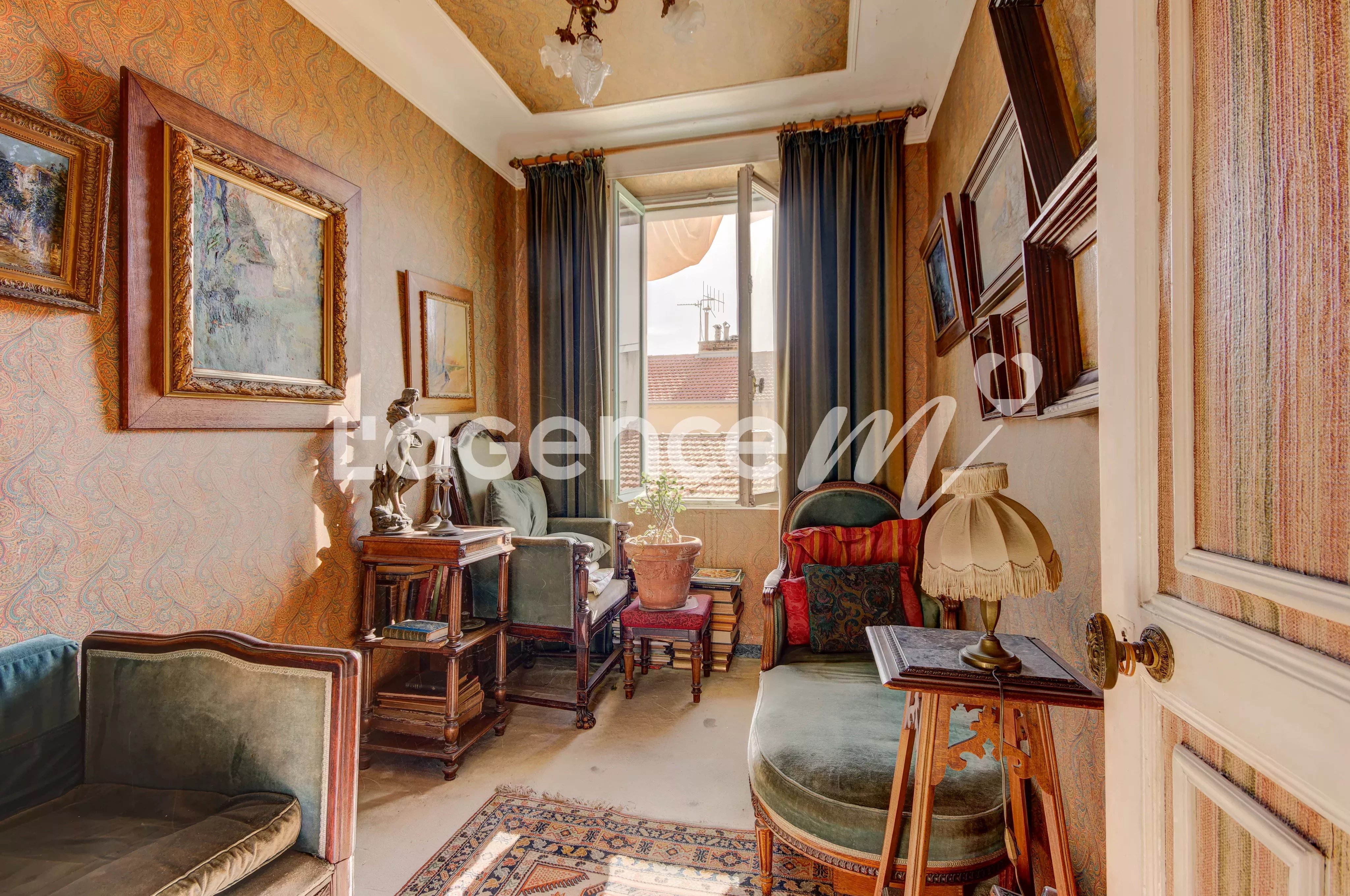 BAS CIMIEZ – Rue calme – 4P 71m² + balcon 7m2 + Garage 22m² (en sus) + Cave/Atelier NICE BAS CIMIEZ : EXCLUSIVITÉ dans une rue très calme, à deux pas du centre-ville : venez découvrir cet appartement familial de 71 m² avec garage fermé de 22 m² (en sus) et cave/atelier, dans un petit immeuble au calme absolu. Première mise en vente depuis des décennies – un bien qui n'a connu qu'une seule famille et qui se dévoile aujourd'hui sur le marché. Cet appartement offre des atouts rares : une configuration familiale modulable (3 ou 4 pièces selon vos besoins), le calme et le prestige du quartier de Cimiez, tout en pouvant se rendre en ville à pied, un balcon, un garage, ainsi qu'un atelier spacieux – un argument exceptionnel pour les bricoleurs, les artistes ou pour ranger ses affaires. L'appartement se compose d'une entrée, d'un séjour/salle à manger lumineux avec 3 ouvertures sud/ouest, d'un balcon accessible par deux accès différents, de 3 chambres dont une grande avec placards profonds, d'une cuisine indépendante avec fort potentiel d'ouverture sur le séjour, et d'une salle de bain avec WC. Un appartement sans vis-à-vis et ensoleillé, une denrée rare à cette proximité immédiate du centre-ville. Il nécessite une rénovation complète avec de belles possibilités de réagencement. Vous pourrez imaginer un grand 3 pièces (double séjour + 2 chambres + cuisine ouverte) ou un vrai 4 pièces familial (séjour + 3 chambres optimisées + cuisine ouverte + salle d'eau agrandie). Le garage de 22 m² dispose de deux accès (principal pour les véhicules et porte piétonne) et offre un volume suffisant pour véhicule + rangement, voire un projet d'atelier. Un bien rare pour une famille qui recherche un vrai projet de rénovation, avec le potentiel de créer un intérieur sur-mesure. A visiter rapidement. Classe énergie E - Copropriété de 9 lots principaux - Charges mensuelles 136€ - Taxe foncière 1056€ - Pas de procédure en cours à notre connaissance. Les informations sur les risques auxquels ce bien est exposé sont disponibles sur le site Géorisques http://georisques.gouv.fr