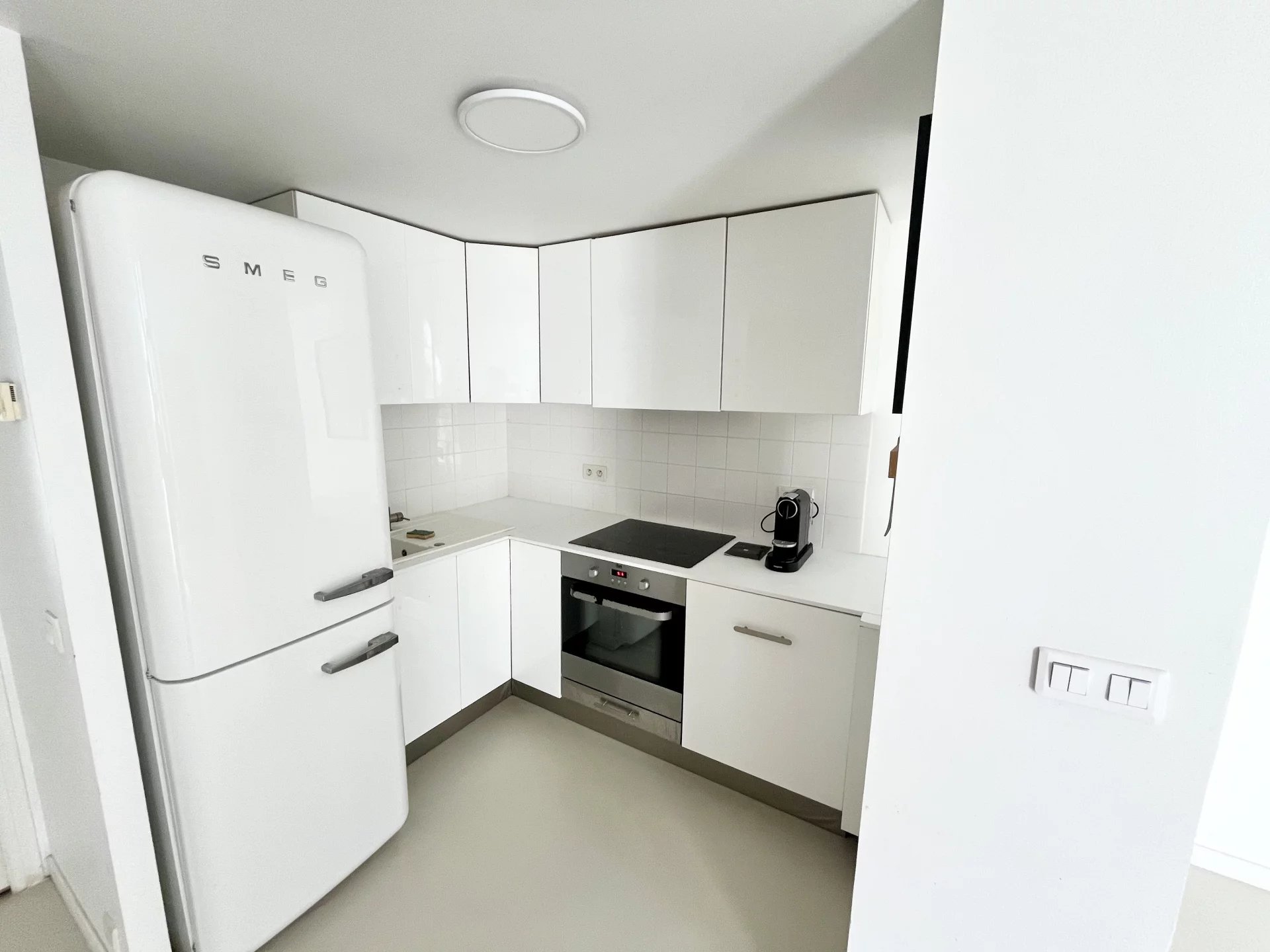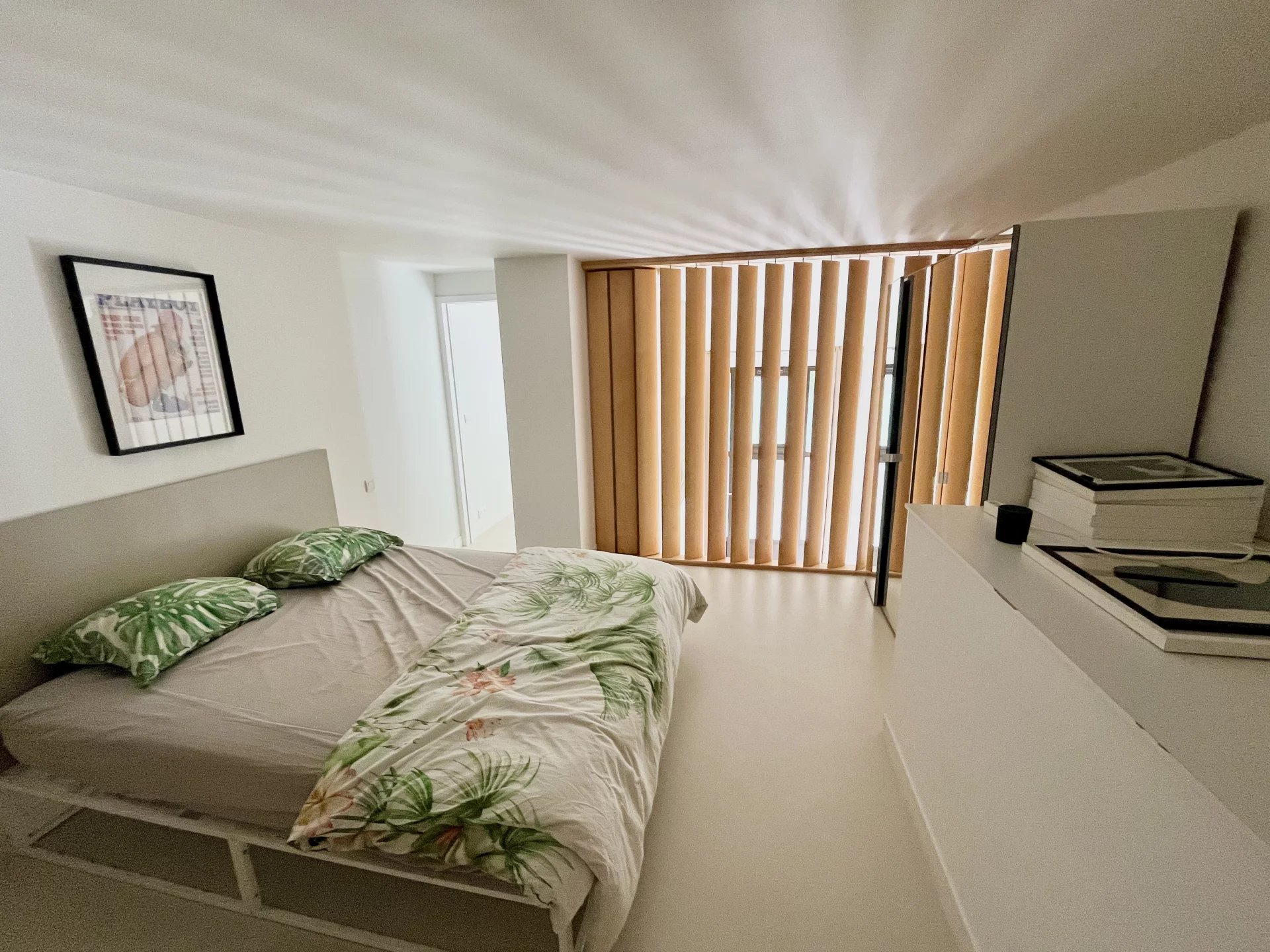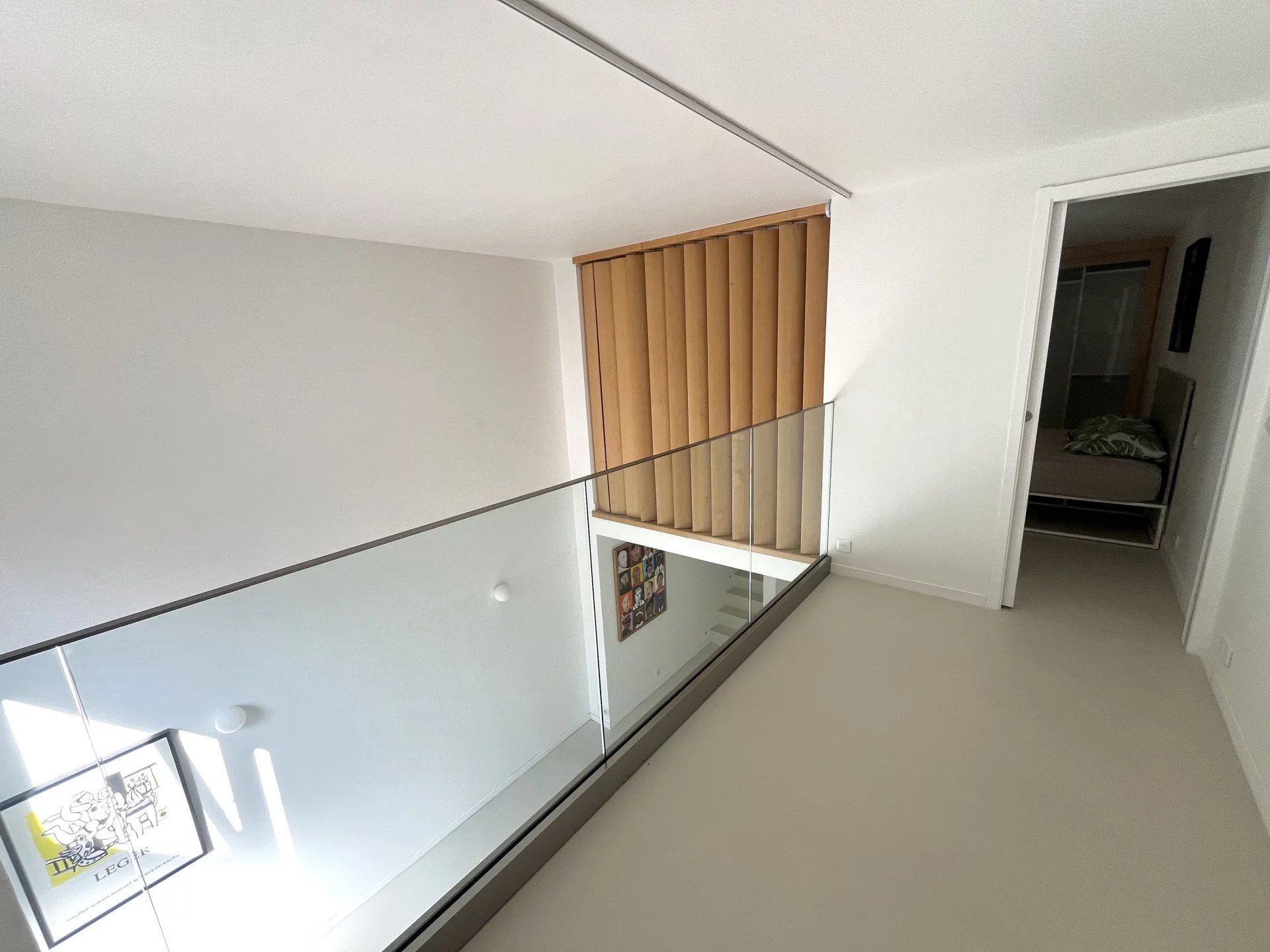 Ce bien en location vide se compose d’un grand salon lumineux avec une belle hauteur sous plafond, d’une cuisine ouverte et équipée et d’une salle de bain avec un grand placard de rangement. À l’étage, vous trouverez une chambre avec de grands placards intégrés, ainsi qu’un coin bureau,