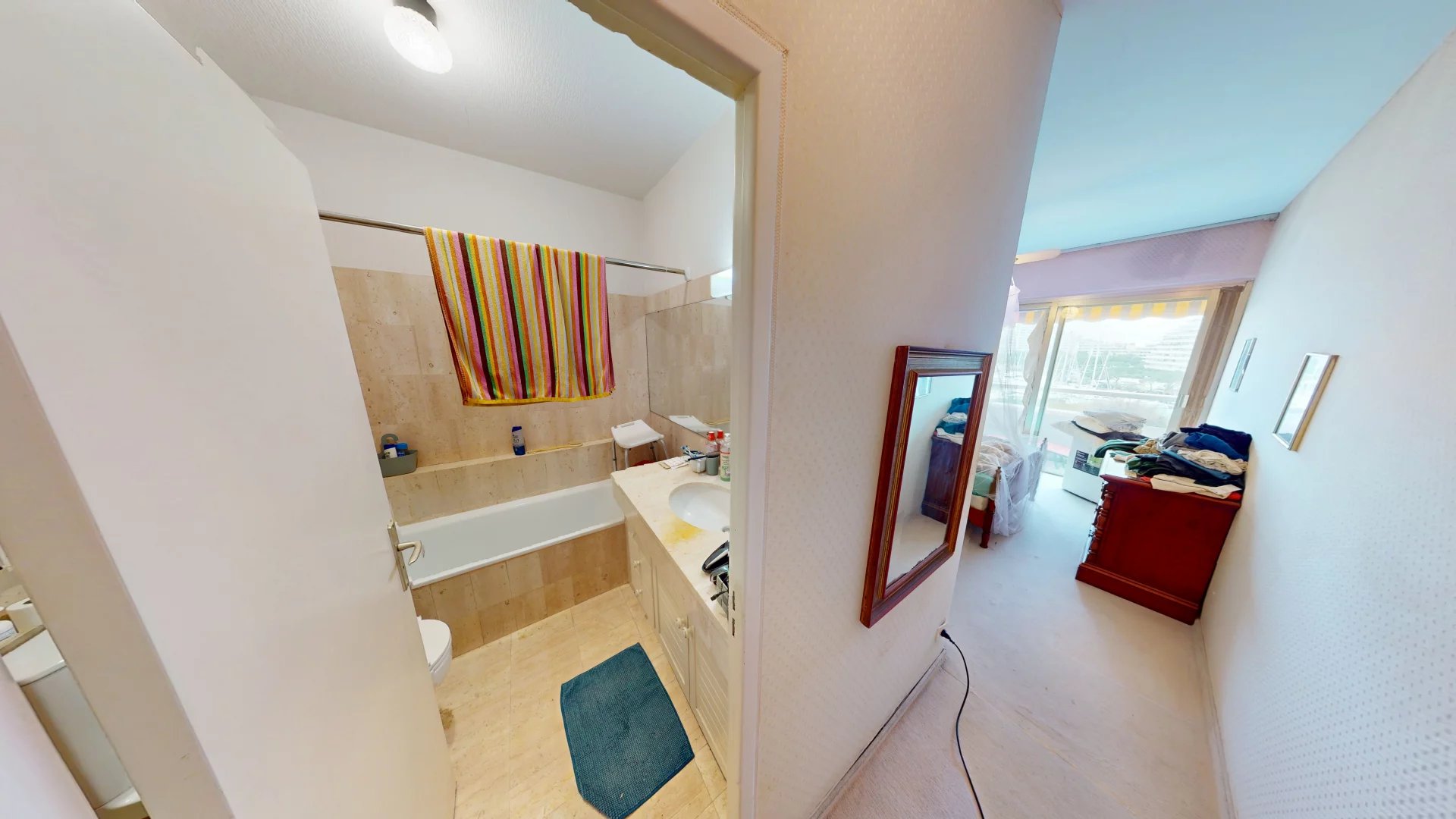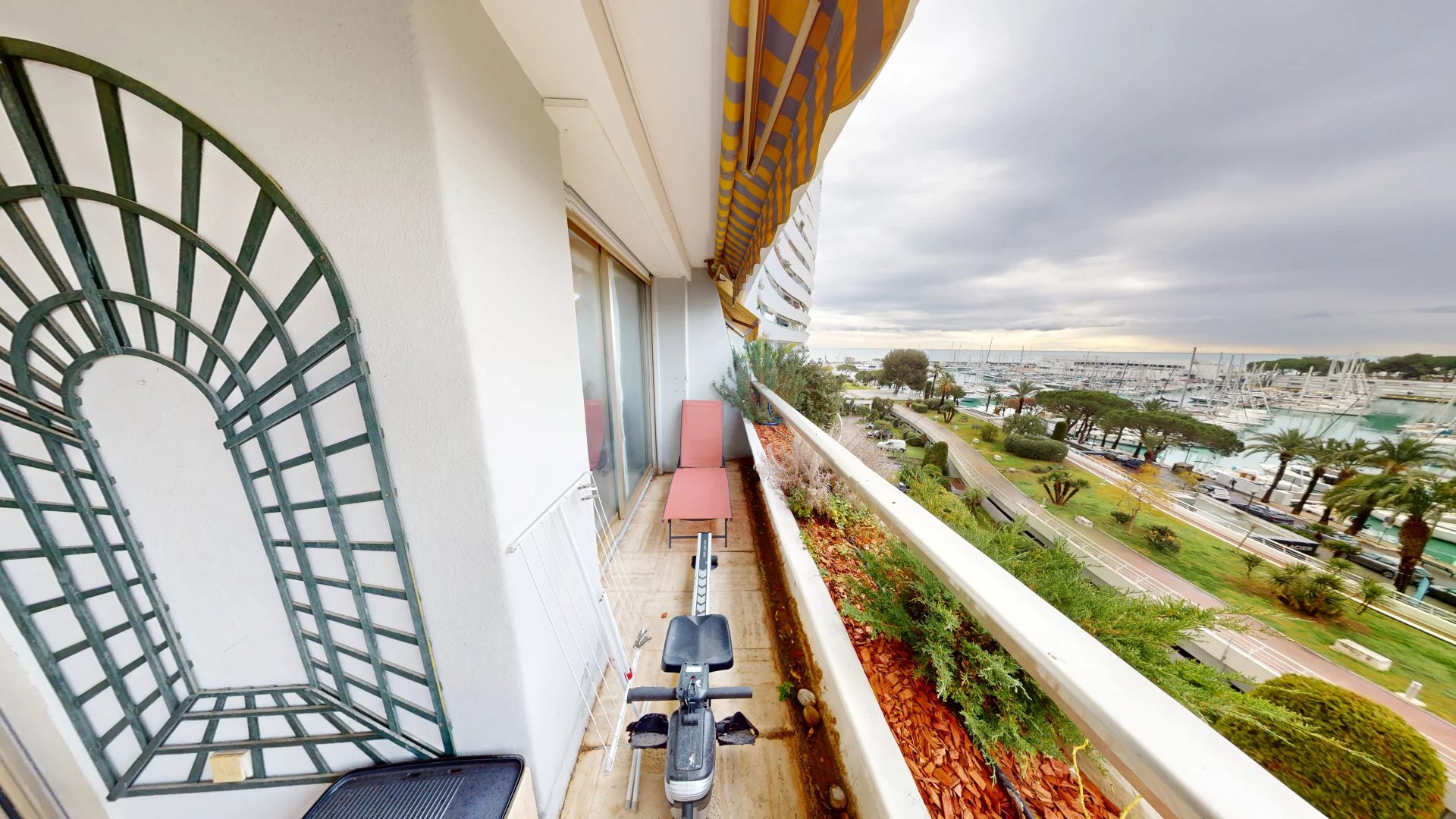 Dès l’entrée, le regard est immédiatement attiré par la lumière et la vue spectaculaire sur le port et les célèbres pyramides de la Marina. Le séjour, spacieux et lumineux, s’ouvre sur une agréable terrasse de 15 m², véritable balcon sur la Méditerranée, offrant un panorama unique, aussi enchanteur de jour que féérique le soir venu.
