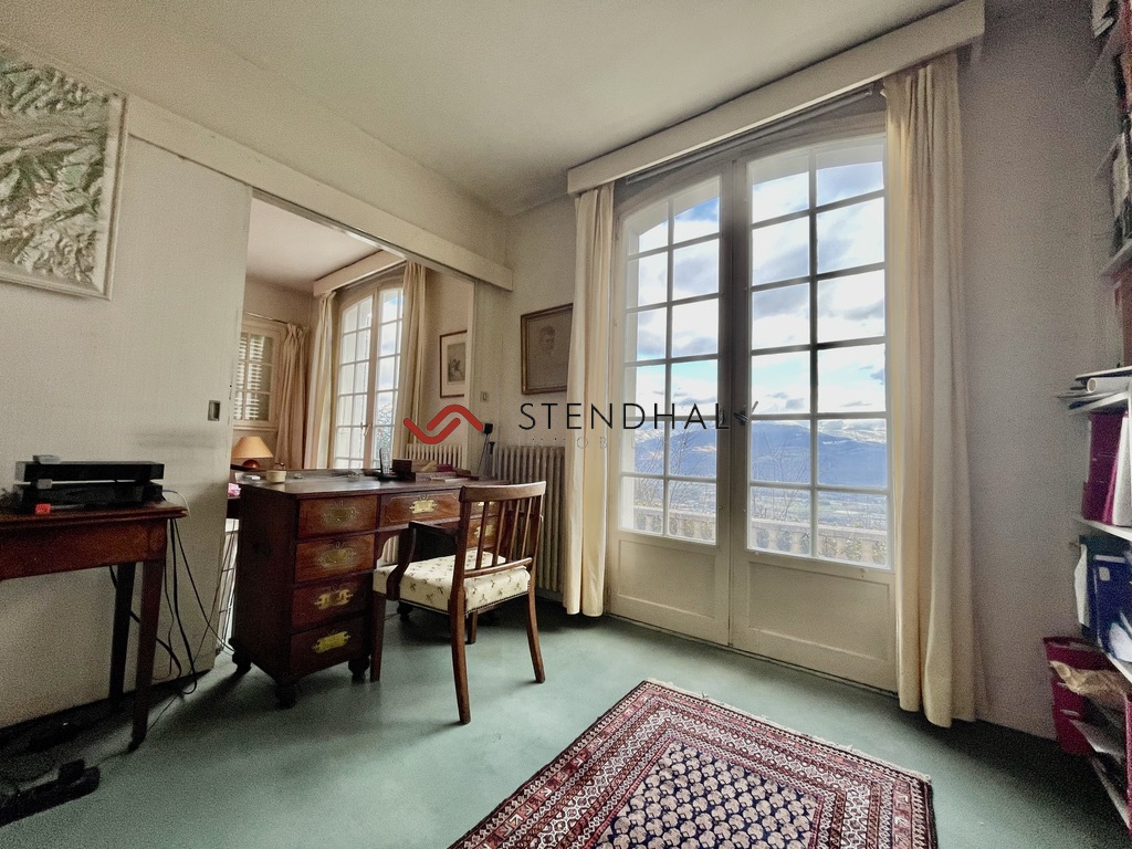Secteur résidentiel et très calme pour cette maison de famille bénéficiant d'une vue exceptionnelle sur Belledonne et sur la plaine. Sa superficie de 197m2 est répartie en un rez-de-chaussée avec une entrée, une belle et grande pièce de vie baignée de lumière avec ses grandes fenêtres en Sud et Ouest ouvrant sur la terrasse et le jardin, ainsi qu'une cuisine équipée. De plain-pied également une grande suite parentale avec de nombreux rangements, un bureau et une salle d'eau, un toilette. À l'étage, un bel espace à aménager en bureau, salle de jeux ou salon de lecture, 5 chambres dont une avec une salle d'eau. Une buanderie, une salle de bain et un WC complètent l'étage. Construite en 1968, très bien entretenue, quelques travaux sont néanmoins à prévoir pour répondre à vos envies. Un garage, ainsi qu'une cave en sous-sol avec chaufferie viennent compléter l'espace de rangement. Le terrain d'une superficie de 1 291 m2 sans vis-à-vis permet de profiter pleinement. Cadre de vie idéal et privilégié avec les écoles et crèche à deux pas, une supérette, et bientôt un bar restaurant au coeur de ce village au charme authentique avec sa place et son église.
