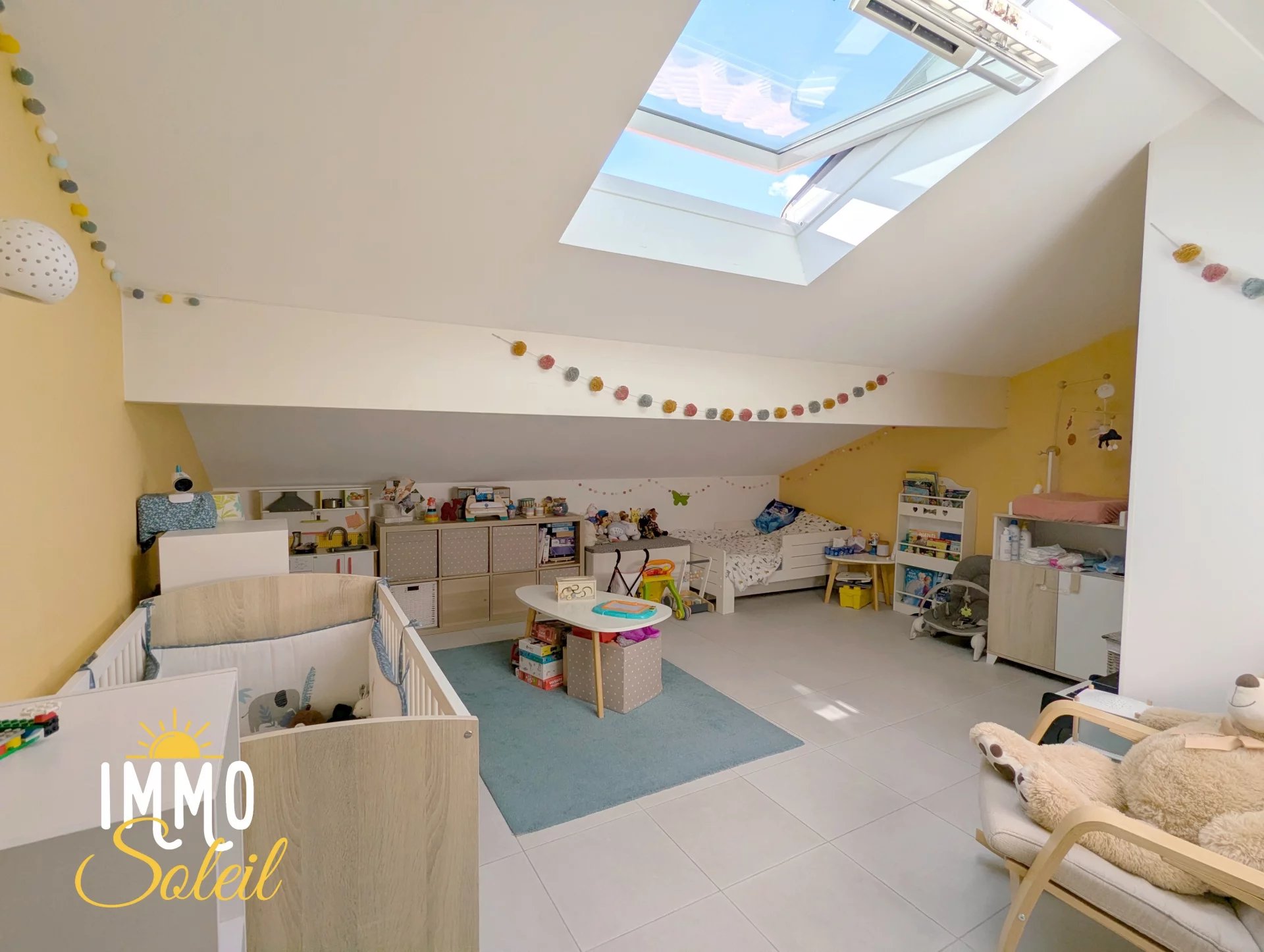 - au 4iè étage : palier, 2 chambres (18m² et 21m² au sol), salle de douche et WC
