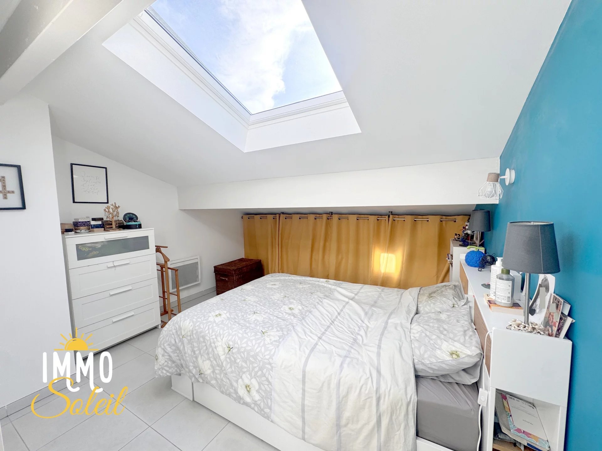Le séjour et la chambre du 3è étage donne sur une terrasse spacieuse d'environ 13 m² au calme, sans vis à vis offrant une très jolie vue dégagée sur la ville avec quelques échappées sur la mer.