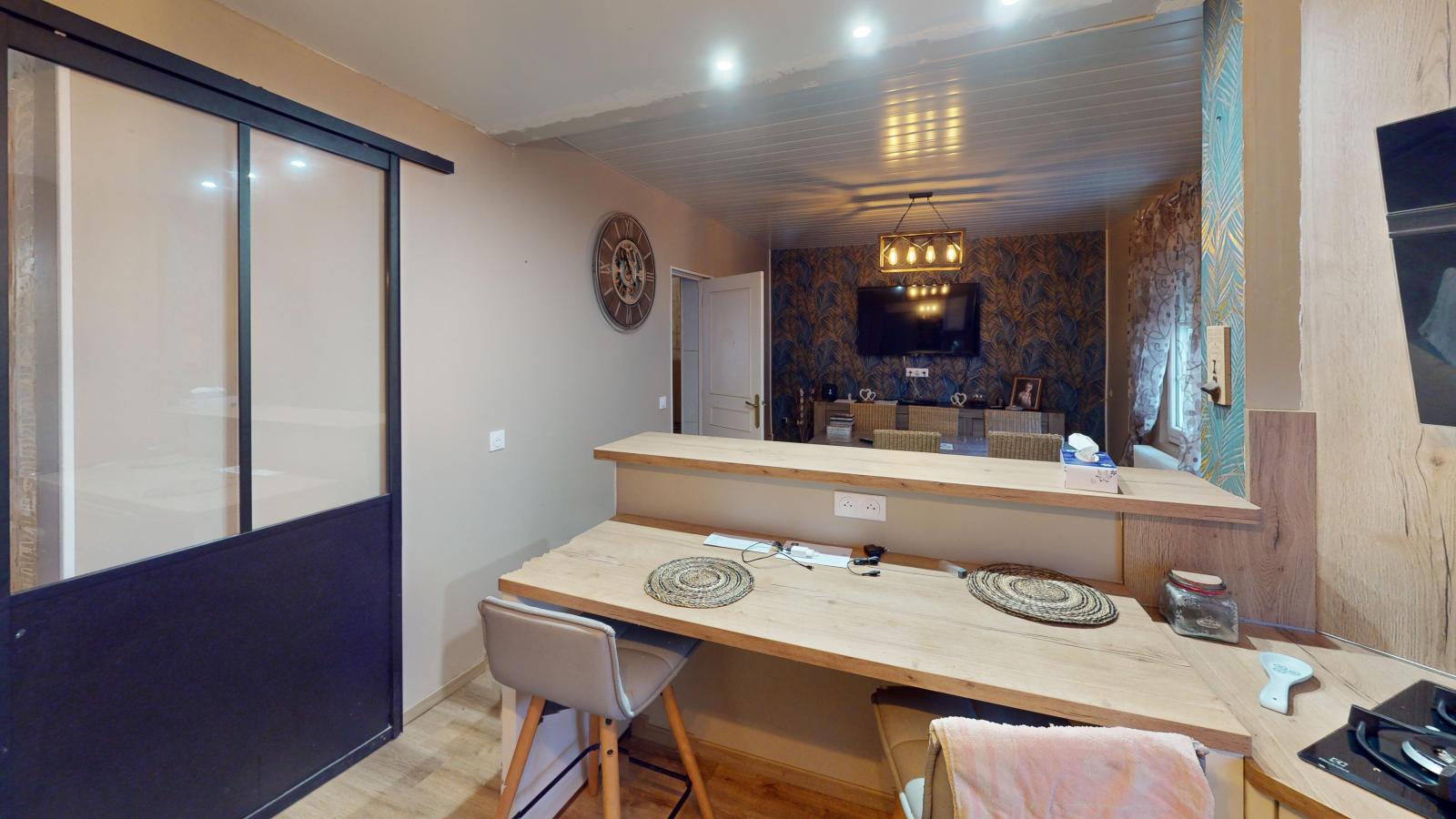 D'une cuisine ouverte sur un séjour salon moderne et bien agencé !