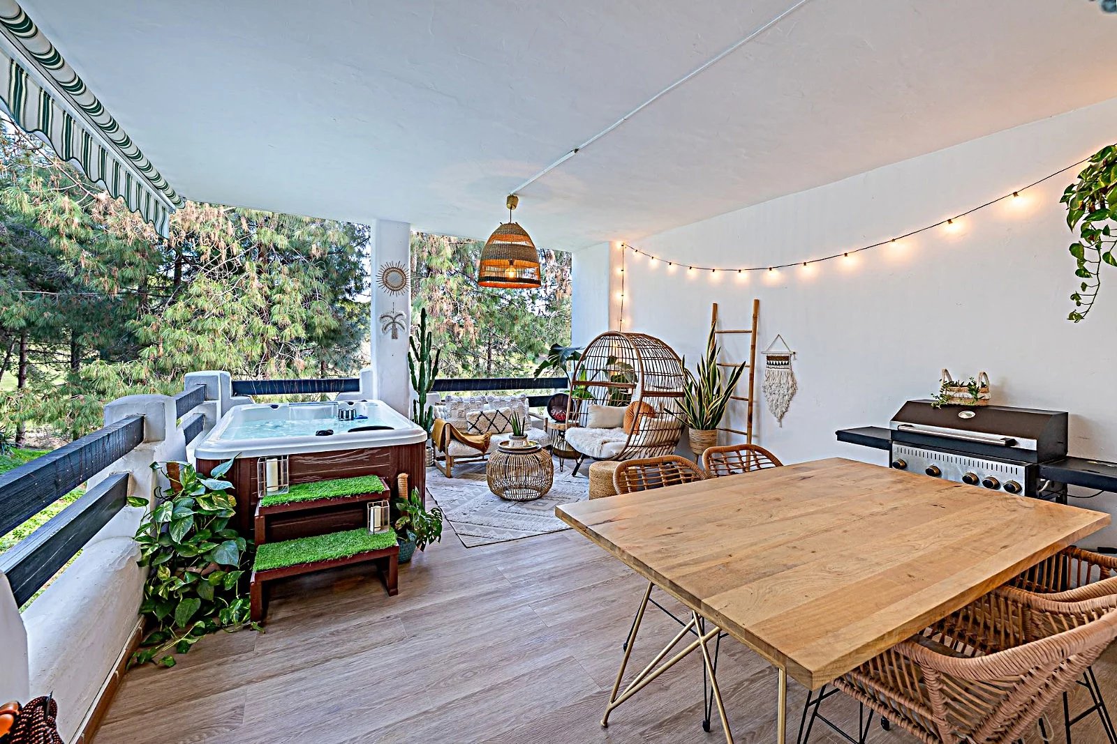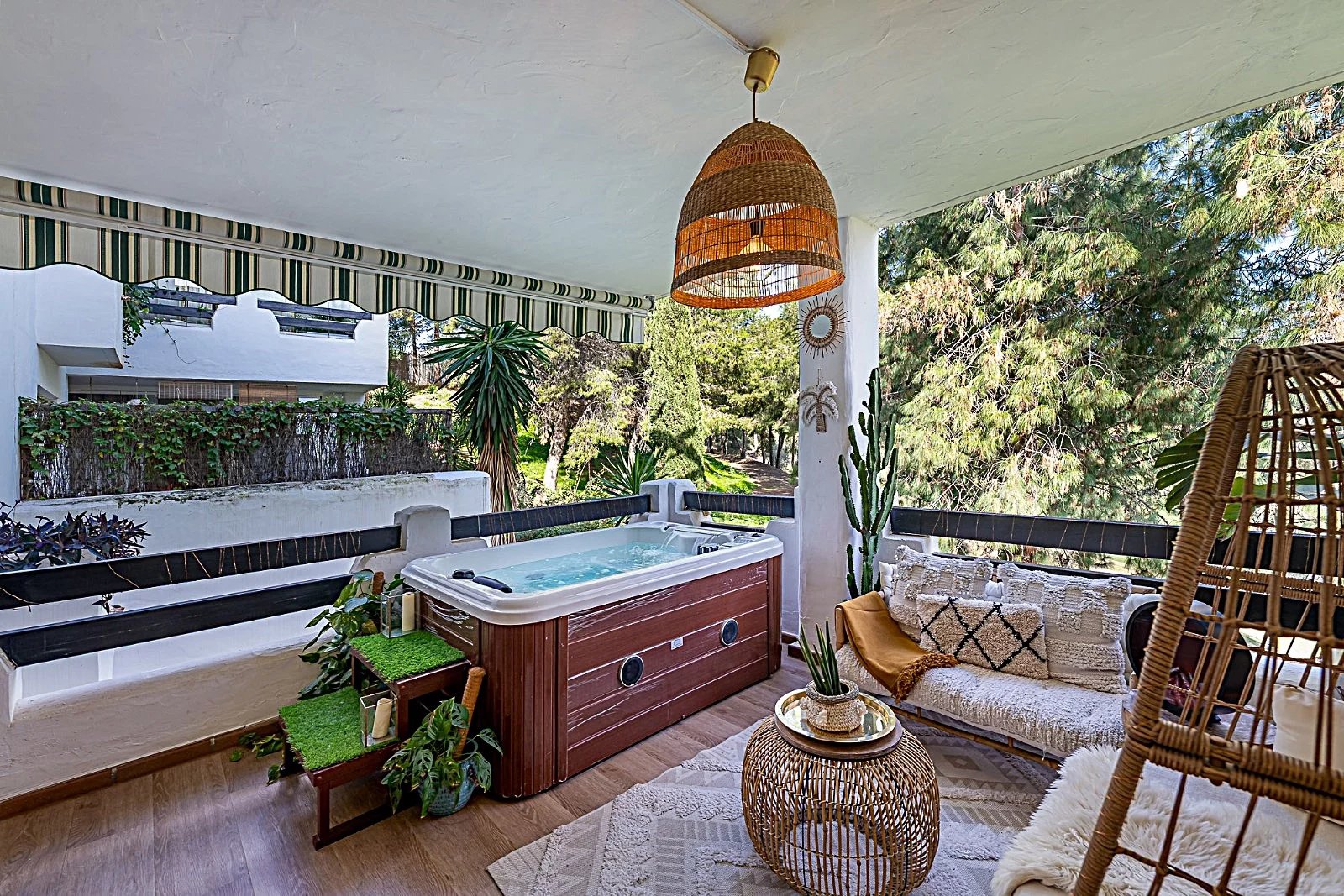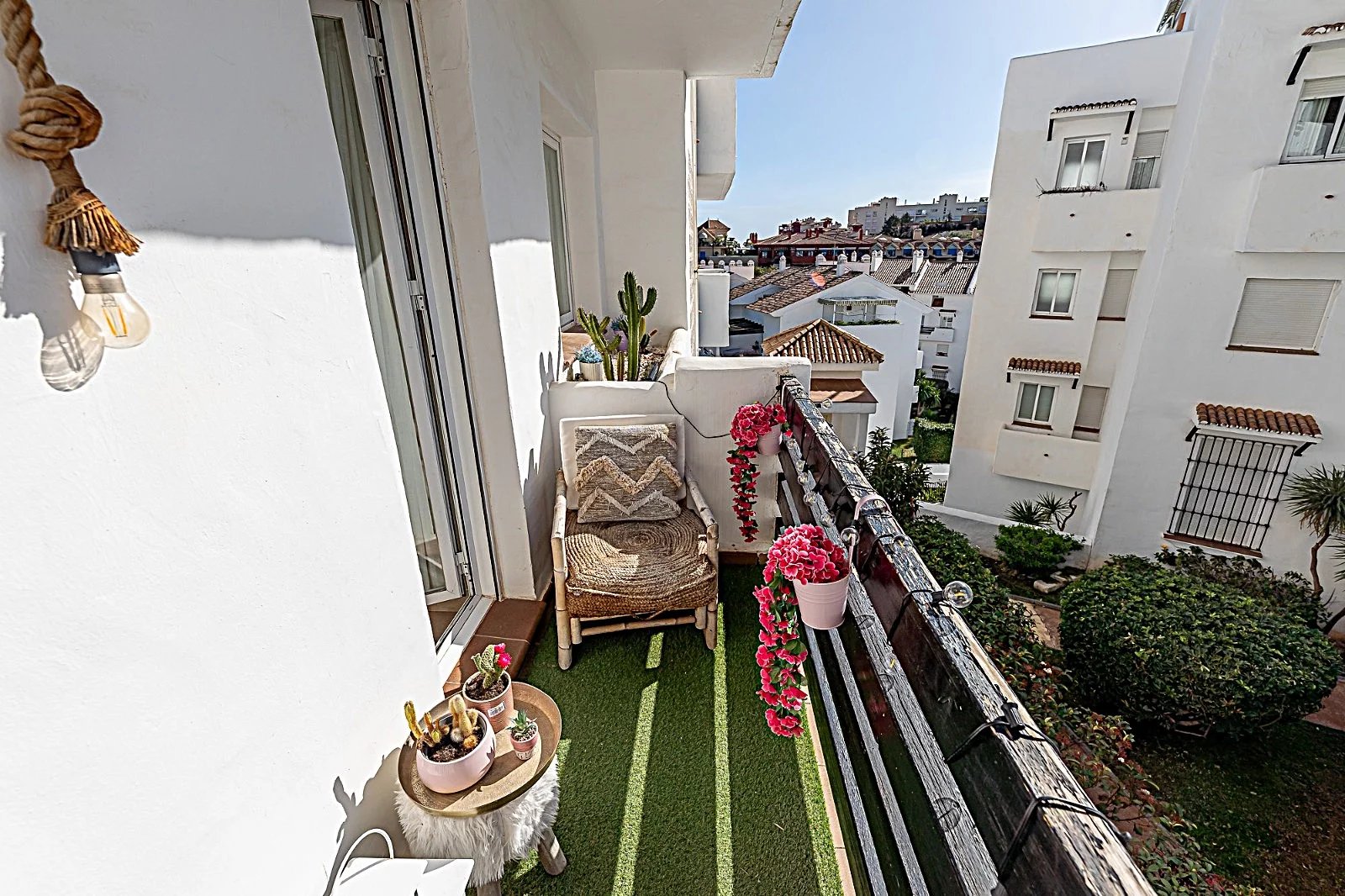 Zona Centro Comercial Torrequebrada, Benalmádena Esclusivo appartamento ristrutturato ad Atalaya Golf – Nueva Torrequebrada. Scoprite questo magnifico appartamento ristrutturato situato nel prestigioso complesso residenziale Atalaya Golf, in una strada privata situata in una delle zone più esclusive di Nueva Torrequebrada, vicino al campo da golf e circondato dalla tranquillità, ma a pochi passi dalla spiaggia, dai supermercati e dai ristoranti. L'abitazione ha una superficie costruita di 96,70 m² e si distingue per le sue due terrazze e la vista, ideali per godersi il clima della Costa del Sol durante tutto l'anno. L'appartamento è distribuito su due camere da letto e due bagni, situato al primo piano con ascensore, e offre un'eccellente luminosità grazie al suo accurato orientamento. È distribuito in: un ingresso, un ampio soggiorno di 27 m², con una terrazza principale di 28 m² con jacuzzi e con una spettacolare vista aperta sul campo da golf, una cucina completamente ristrutturata, due camere da letto, una camera attualmente utilizzata come spogliatoio e dotata di una terrazza privata di 4 m² con una piacevole vista sulla piscina, un bagno ristrutturato nel corridoio e una seconda camera (camera padronale) con bagno en suite e accesso diretto alla terrazza principale. L'appartamento è molto luminoso grazie al suo doppio orientamento: Cucina e camera da letto secondaria con orientamento sud-est. Soggiorno e camera da letto principale con orientamento nord-est. L'abitazione è stata recentemente ristrutturata, con l'aggiunta di: Cucina nuova. Nuovo pavimento sulla terrazza. Tradotto con DeepL.com (versione gratuita)