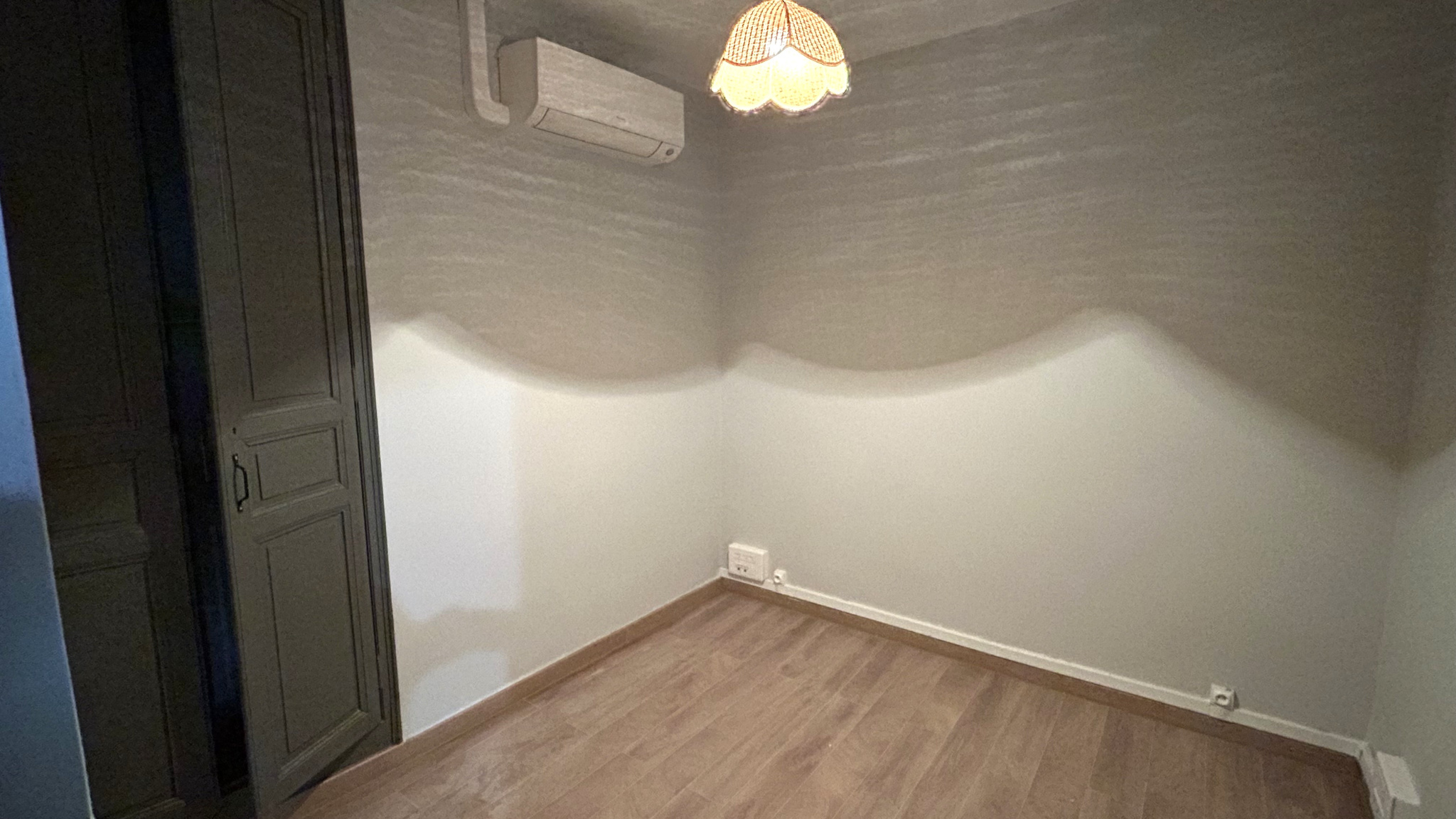 Cuisine indépendante, 2 WC, douche, placards. L'ensemble est traversant, entièrement climatisé, pour une surface totale de 116m2, refait à neuf.