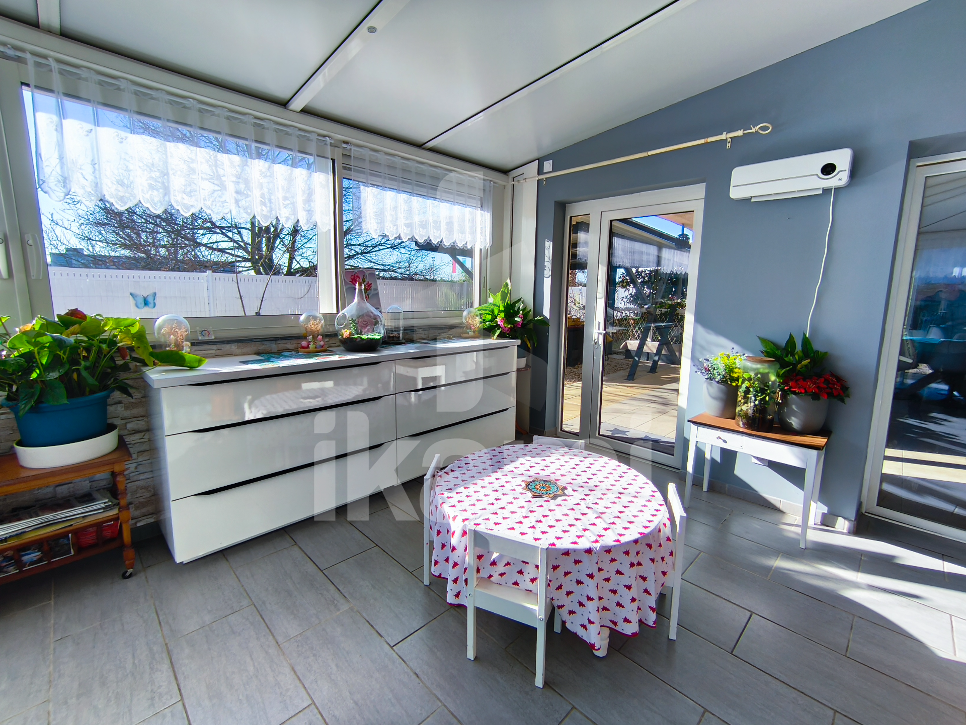 Elle comprend un salon donnant sur une véranda, trois chambres et une grande buanderie de 17 m2, idéale pour être transformée en une suite parentale, un bureau ou tout autre pièce selon vos besoins.
