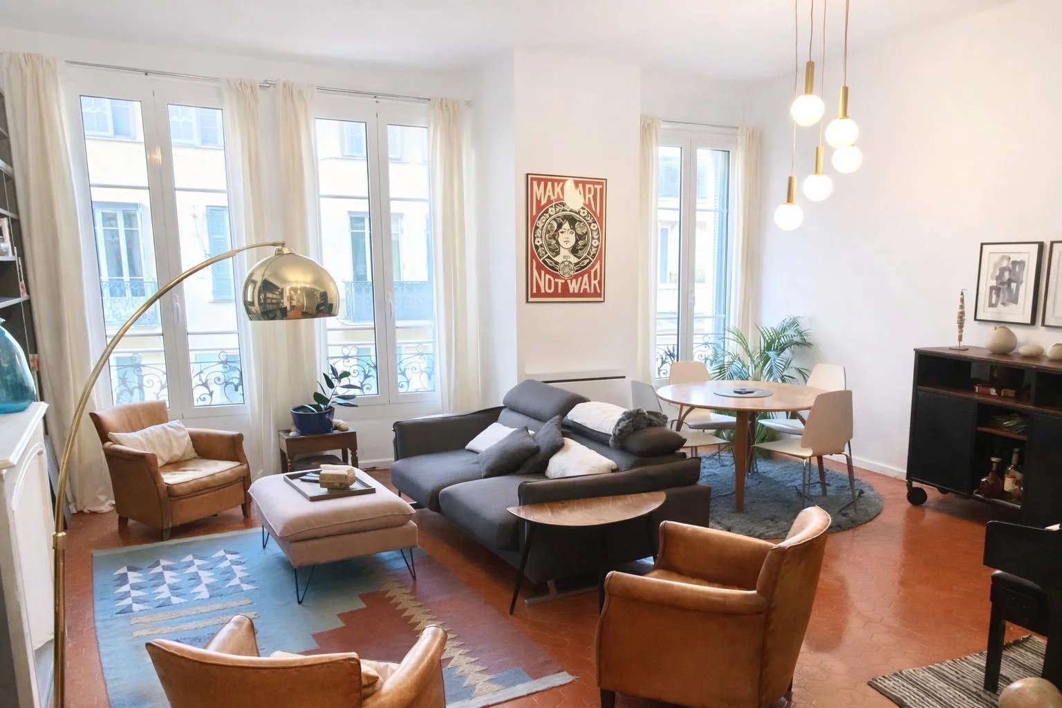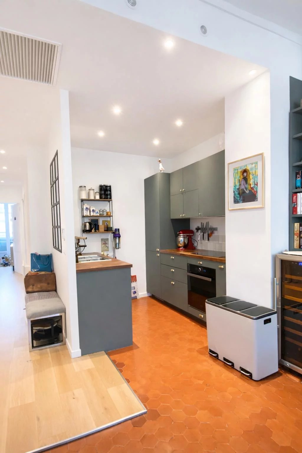 Traversant Sud/Nord, l’appartement est équipé d’une climatisation réversible intégrée, d’un beau parquet, il combine charme et élégance avec ses tommettes et sa cheminée décorative.