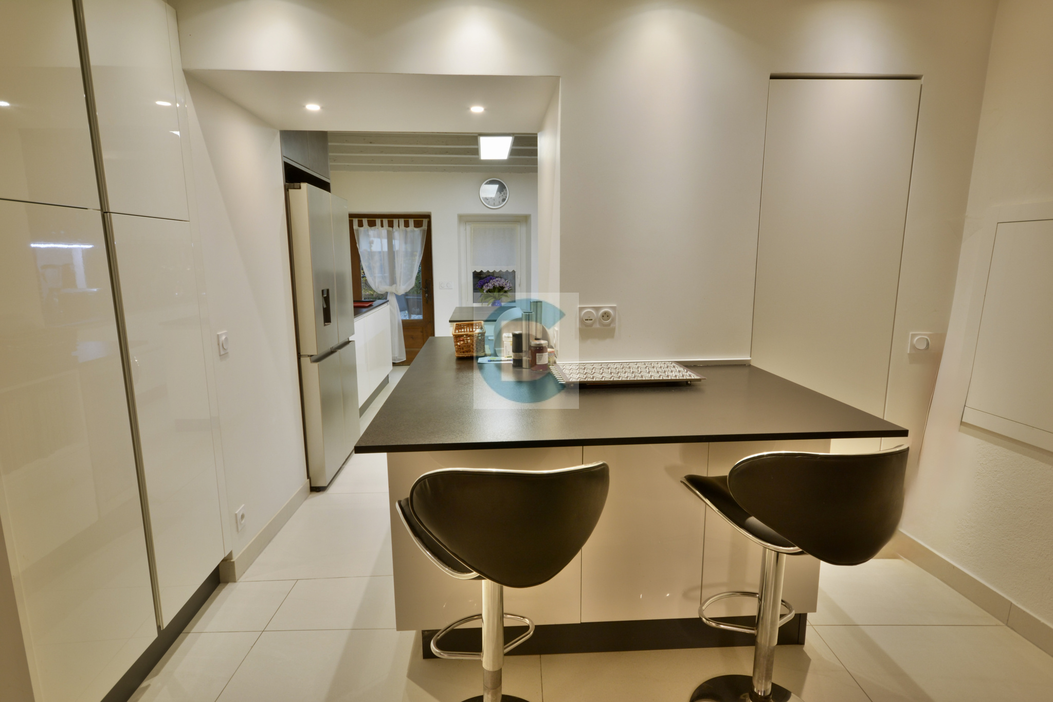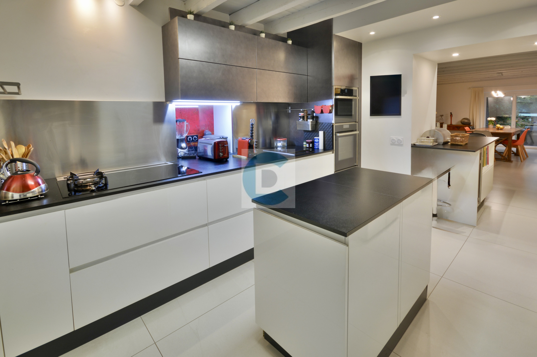 Une cuisine semi-ouverte entièrement équipée, conviviale et élégante.