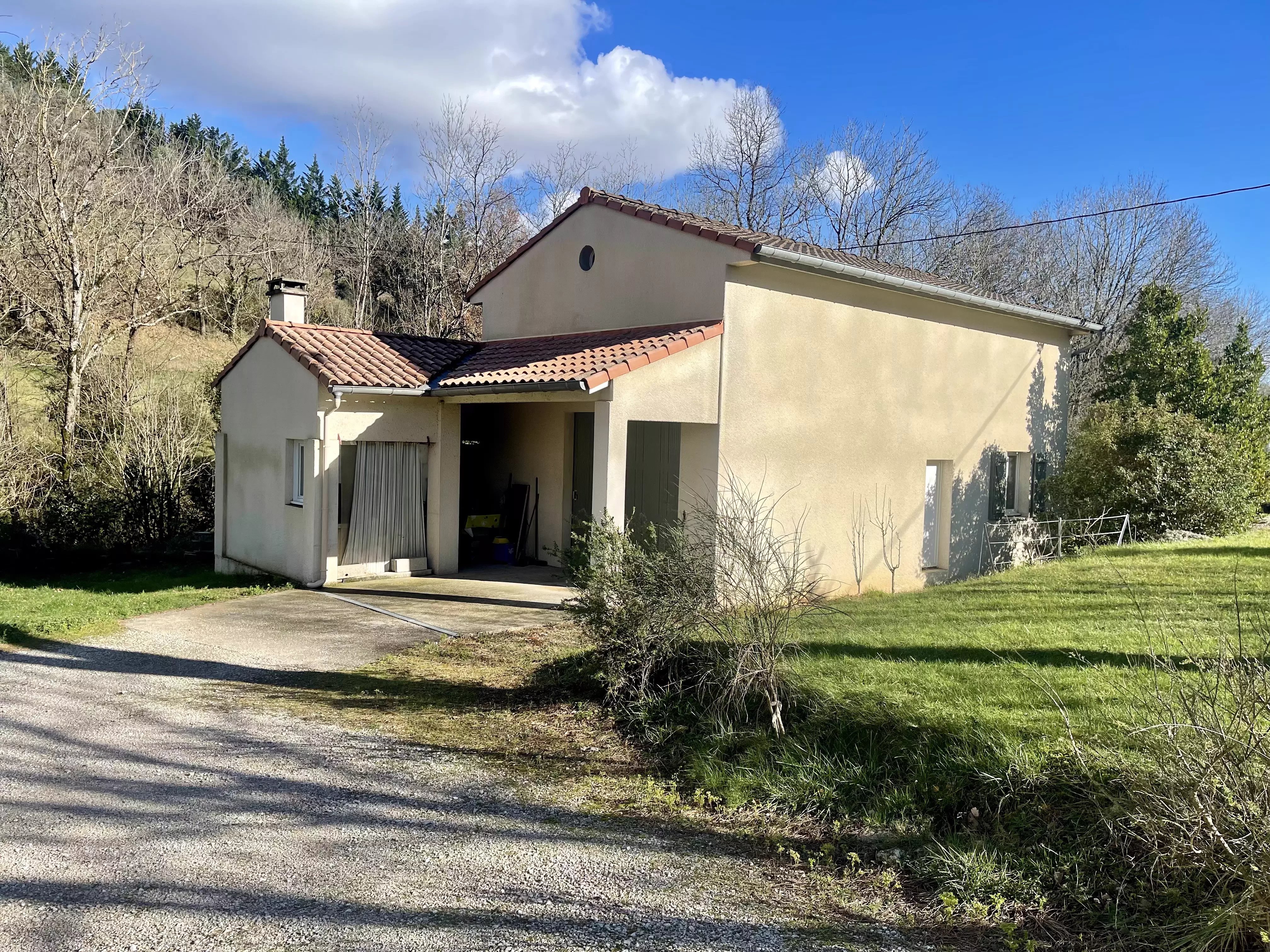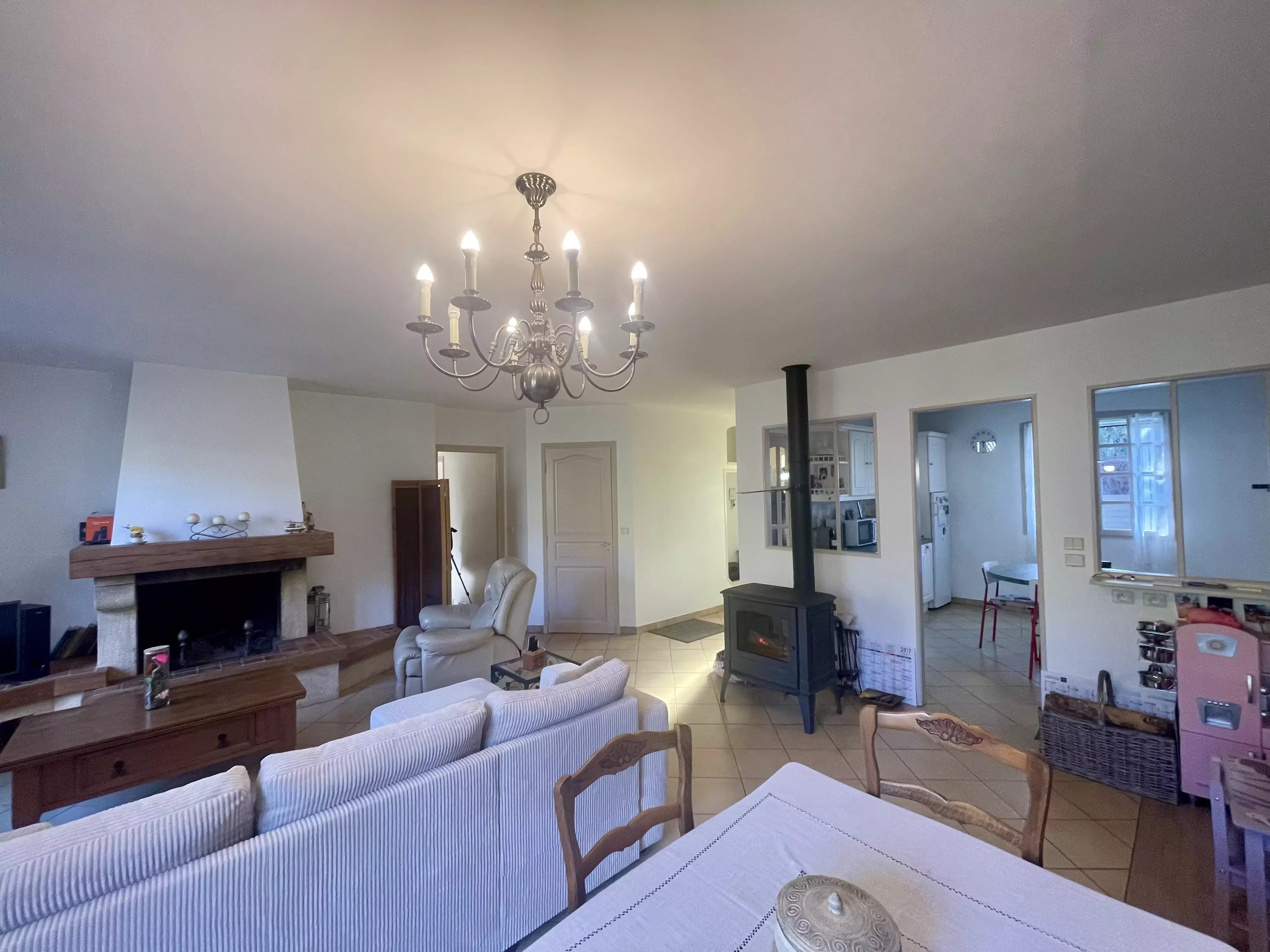 La maison principale, construite en 1989 et parfaitement entretenue, développe environ 125 m² habitables. L'étage de vie de plain-pied est composé d’une cuisine, d’un séjour lumineux agrémenté d'une cheminée et d'un poêle à bois, ainsi que de trois chambres.