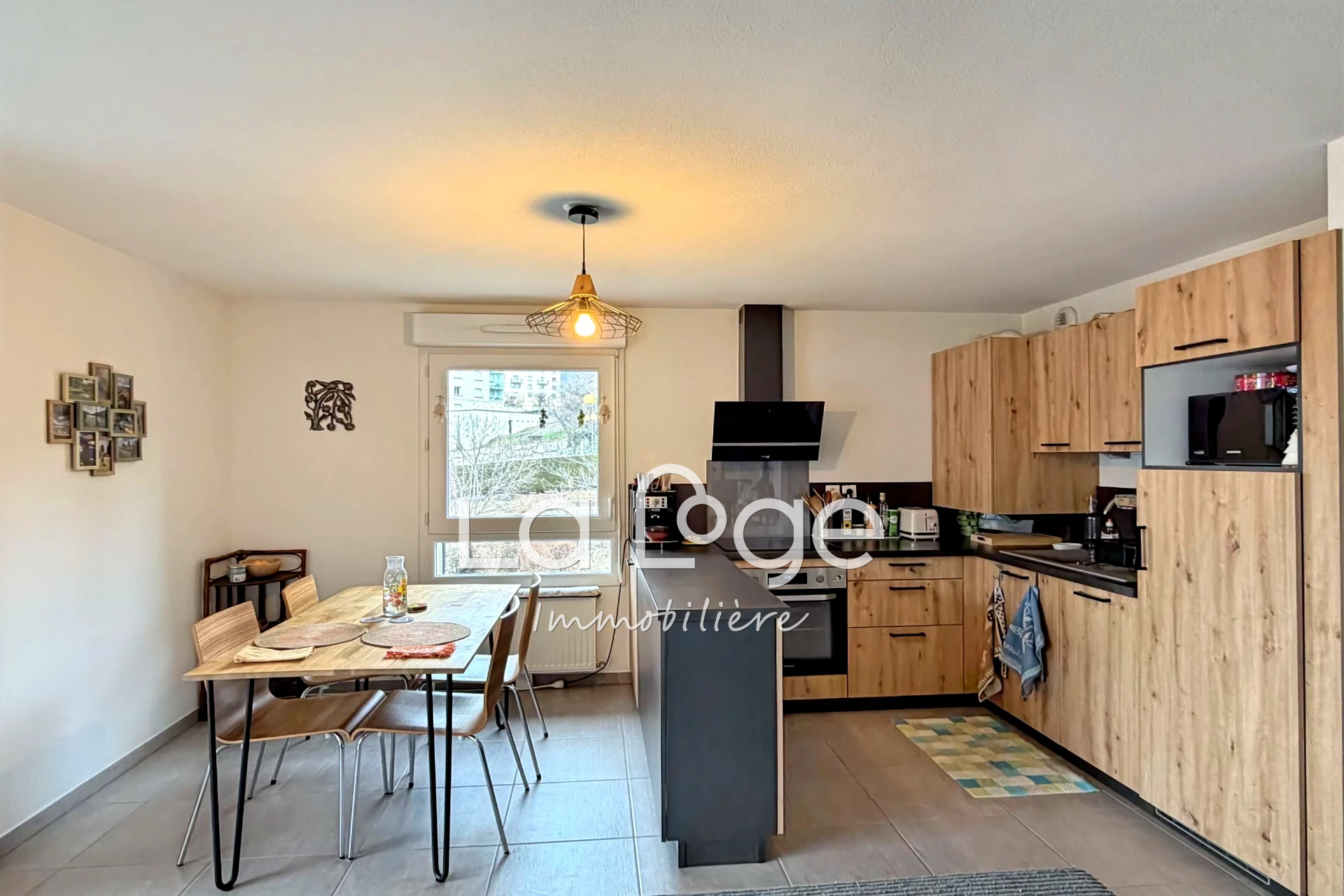 Installé en position dominante, l'appartement bénéficie d'une vue dégagée sur la ville et les montagnes environnantes, offrant un cadre de vie particulièrement agréable. Sa triple exposition lui confère une luminosité naturelle remarquable tout au long de la journée, renforcée par une spacieuse terrasse de 11 m² exposée plein sud et ouest, parfaite pour profiter des beaux jours. L'intérieur, moderne et soigneusement entretenu, propose une distribution fonctionnelle et confortable. Il se compose d'une cuisine équipée et pratique, ouverte sur l'espace de vie, d'un cellier aménagé apportant un réel espace de rangement supplémentaire, de deux chambres avec placards intégrés, d'une salle d'eau avec fenêtre et de toilettes séparées. L'ensemble s'inscrit au sein d'une résidence de standing récente, construite en 2020, sécurisée et dotée d'un ascenseur, ainsi que d'un parking collectif, offrant un confort de vie appréciable au quotidien. Un bien rare sur le secteur, alliant emplacement, luminosité et prestations récentes.À visiter rapidement !