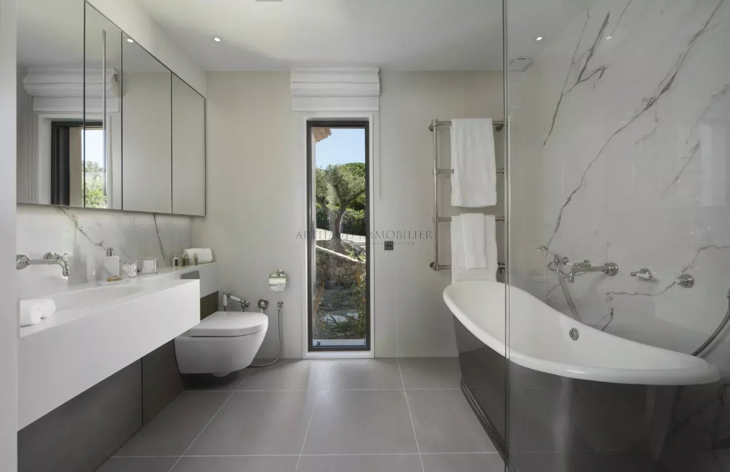 Nichée au cœur d'un prestigieux domaine privé, la villa place ses hôtes au centre de l'effervescence de la Côte d'Azur. Le village attire depuis longtemps les amateurs de luxe et de raffinement grâce à ses clubs de plage, son ambiance animée et sa gastronomie réputée. À l'intérieur, une cuisine design, un mobilier sur mesure et une sélection d'œuvres d'art créent une atmosphère d'une sophistication raffinée.