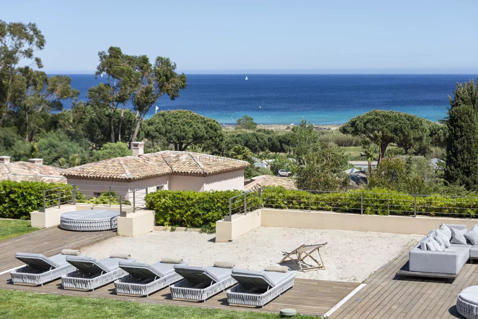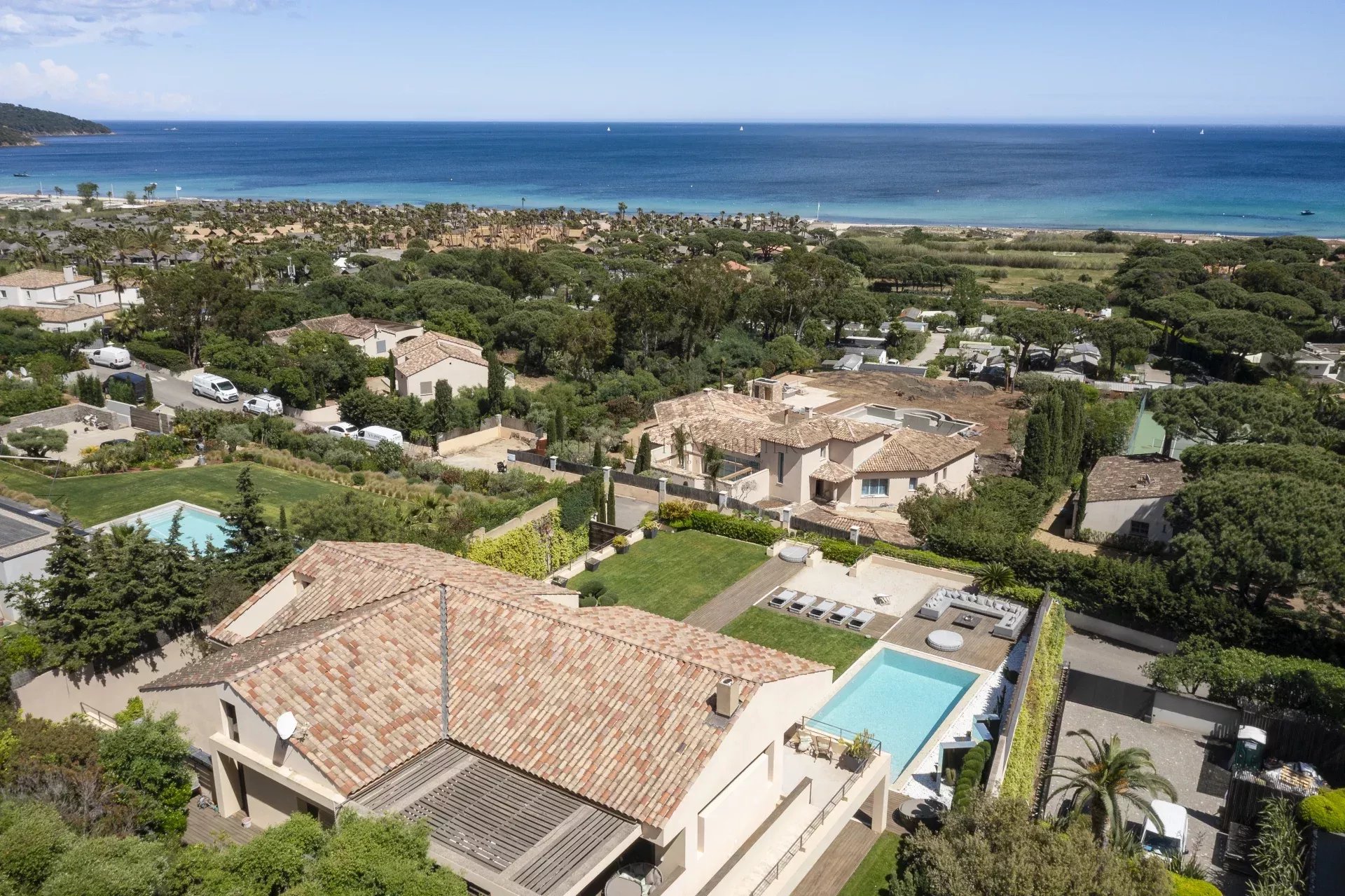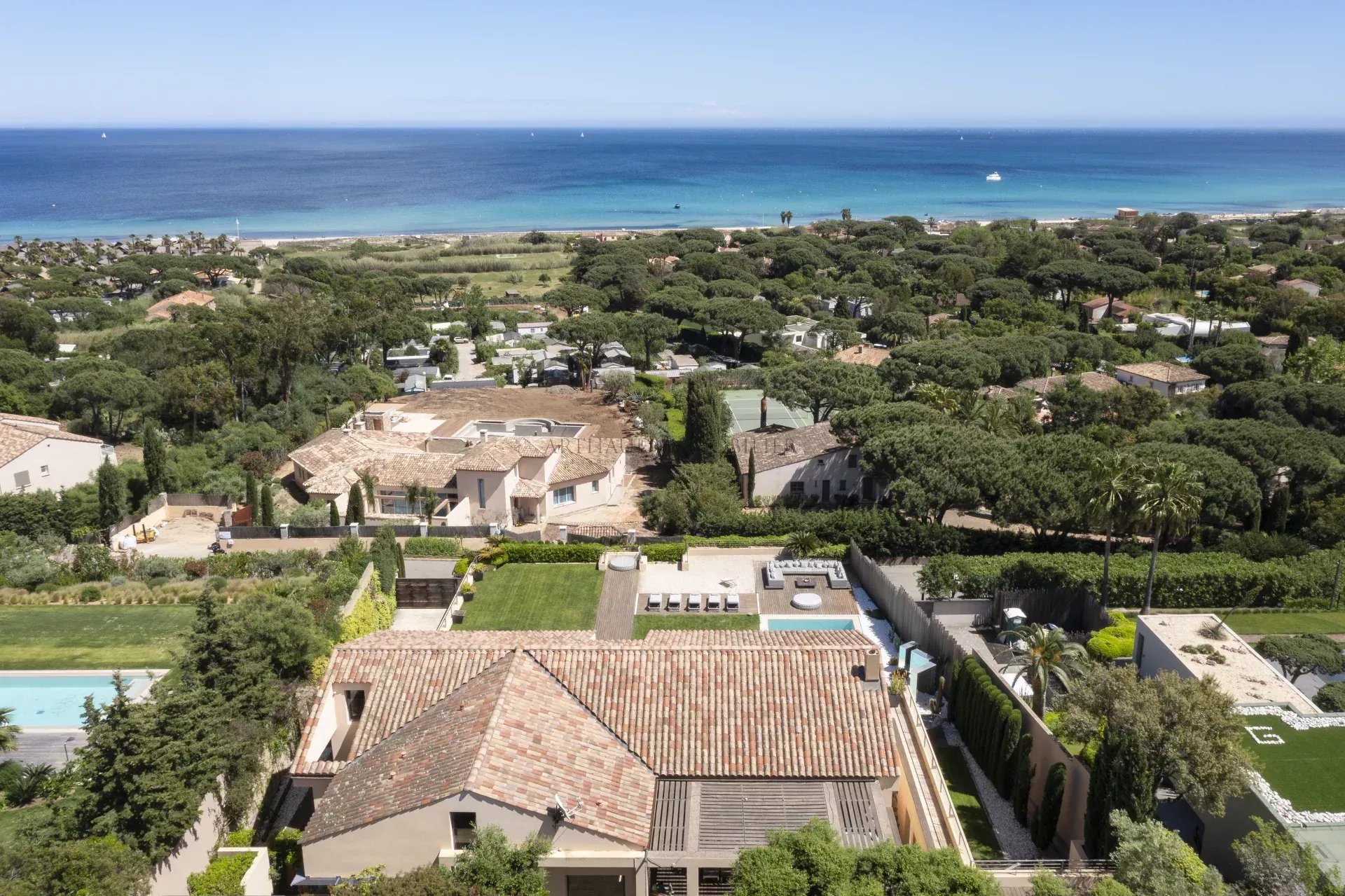 Idéalement située à proximité de Grimaud, Saint-Tropez et Ramatuelle, la propriété offre un accès facile aux plages réputées de la région, à ses restaurants et à sa vie nocturne animée, tout en préservant une intimité absolue.