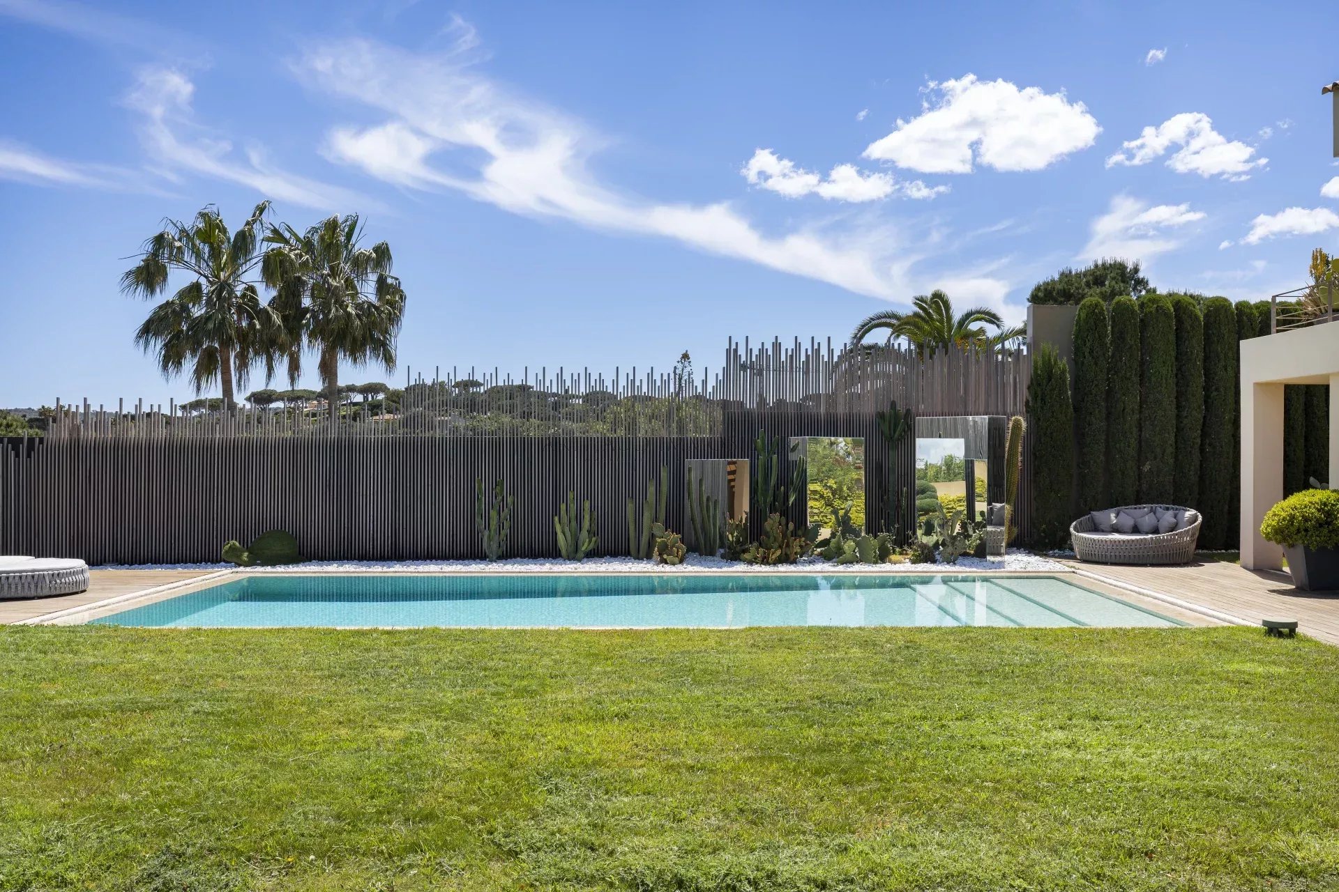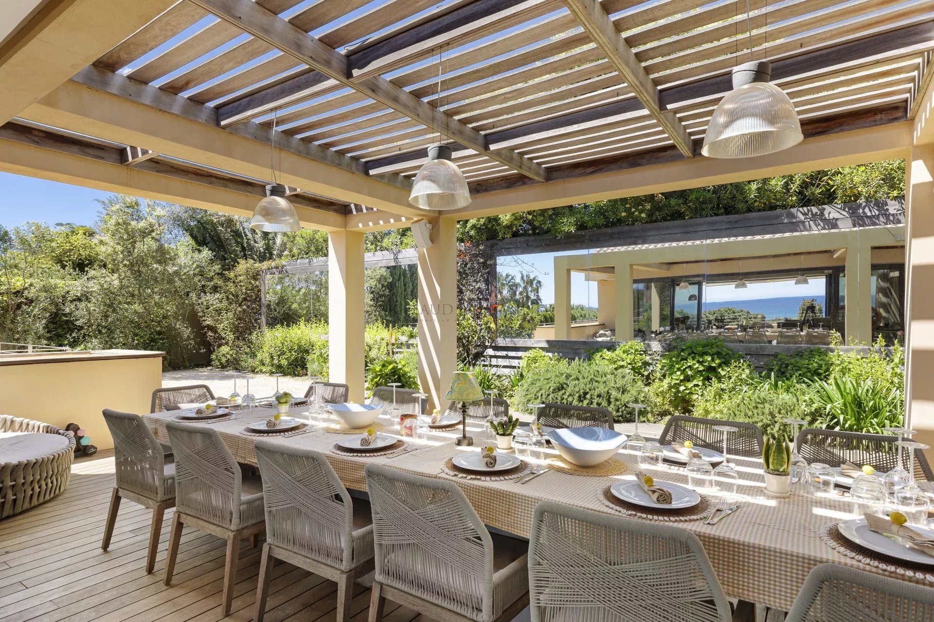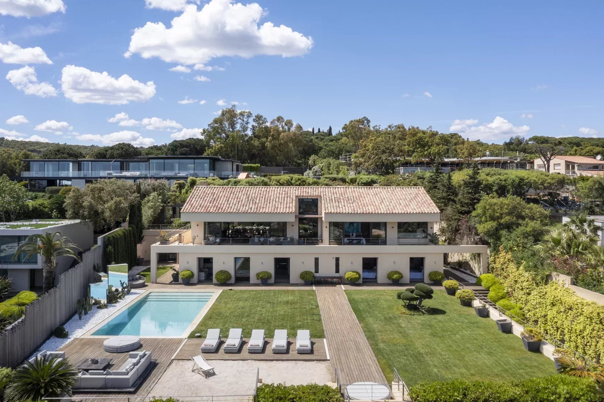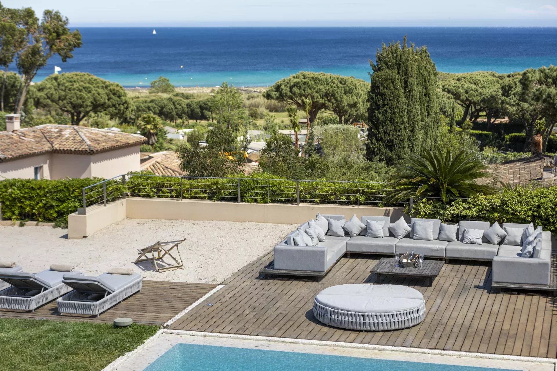 Idéalement située à proximité de Grimaud, Saint-Tropez et Ramatuelle, la propriété offre un accès facile aux plages réputées de la région, à ses restaurants et à sa vie nocturne animée, tout en préservant une intimité absolue.