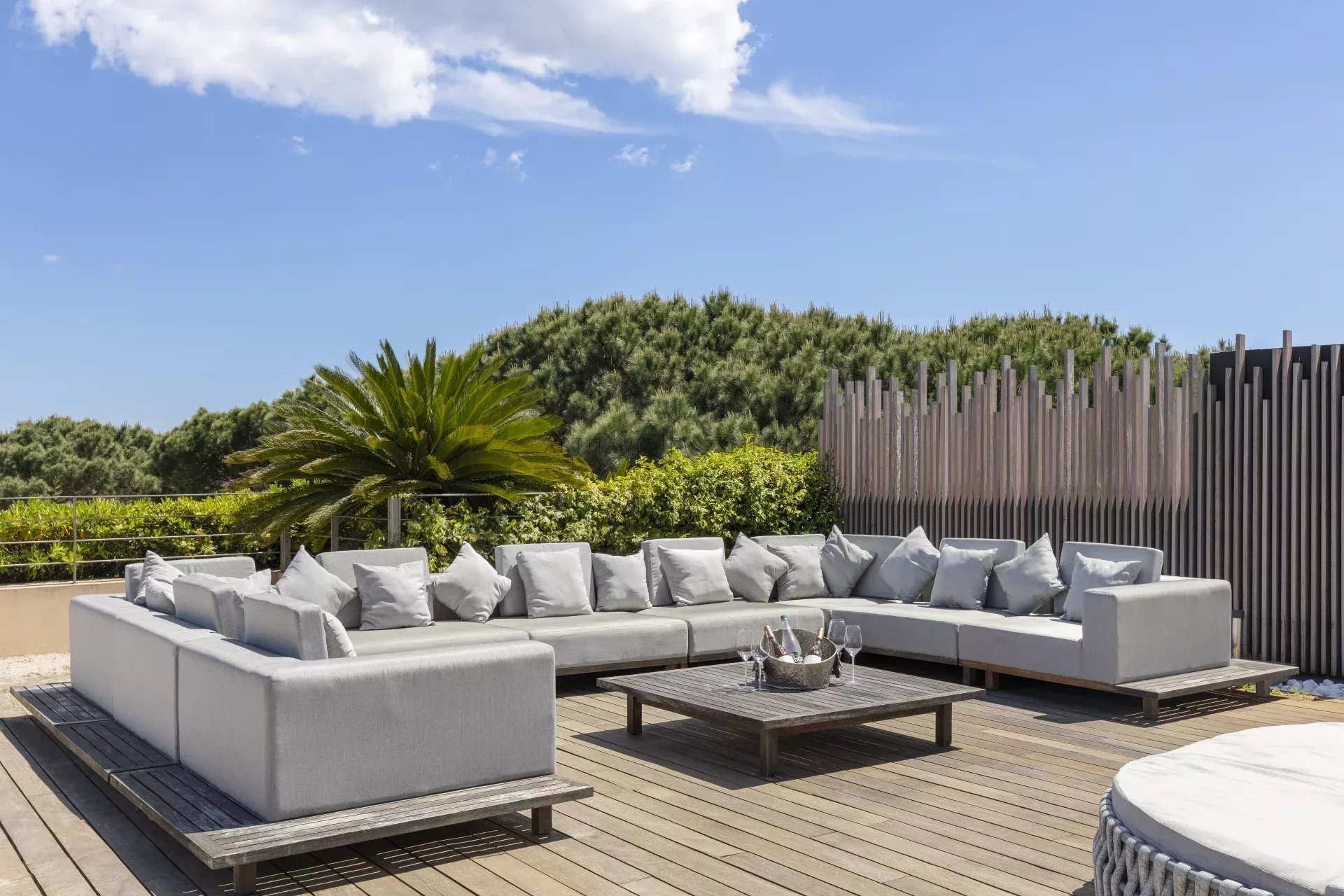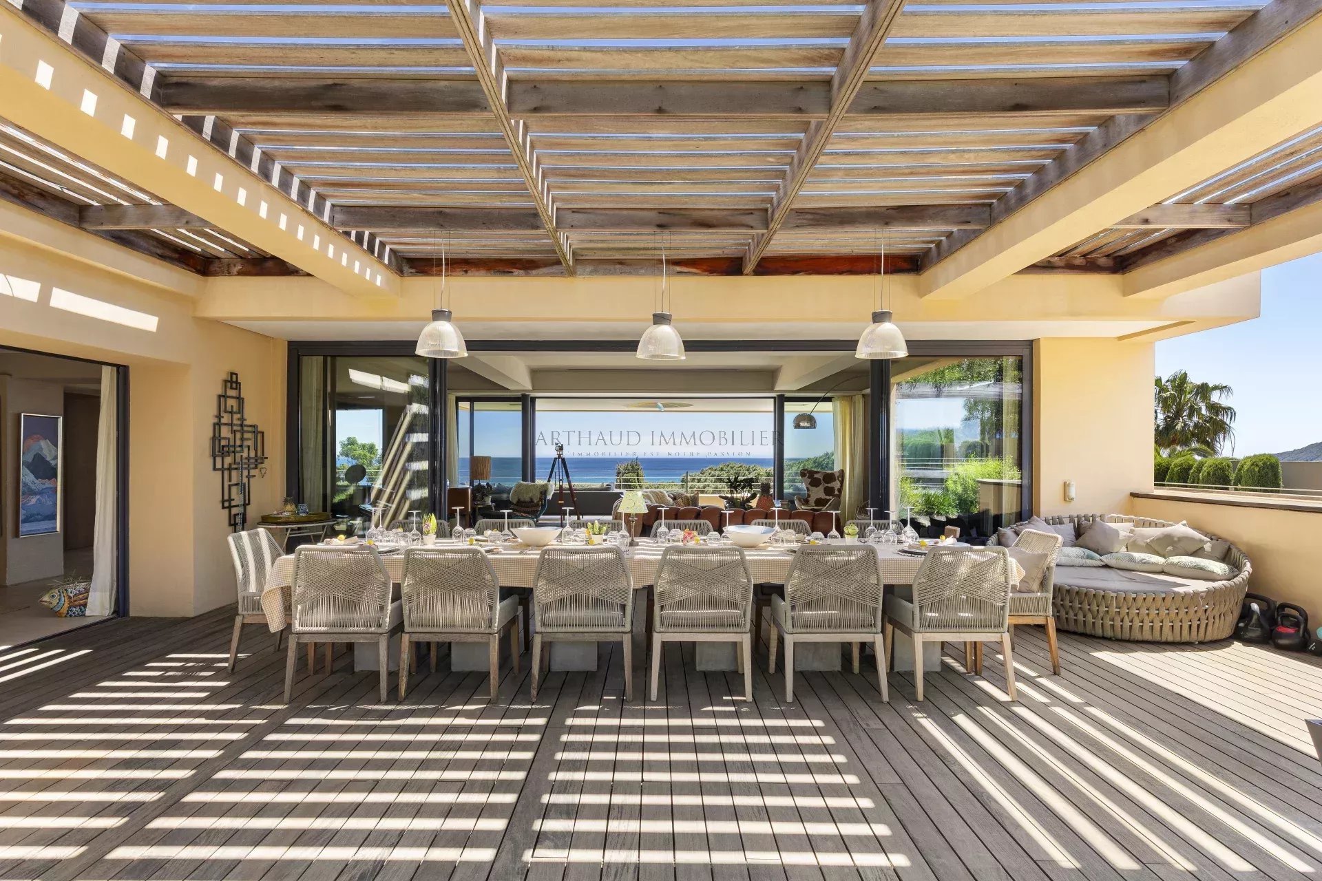 La résidence propose huit chambres avec salle de bains privative, complétées par de généreux espaces de vie et de réception pouvant accueillir jusqu'à 16 personnes dans un confort absolu. La cuisine professionnelle, entièrement équipée, comprend des appareils haut de gamme ainsi qu'une vaisselle et des verres de qualité, idéale pour les chefs privés et les réceptions raffinées.