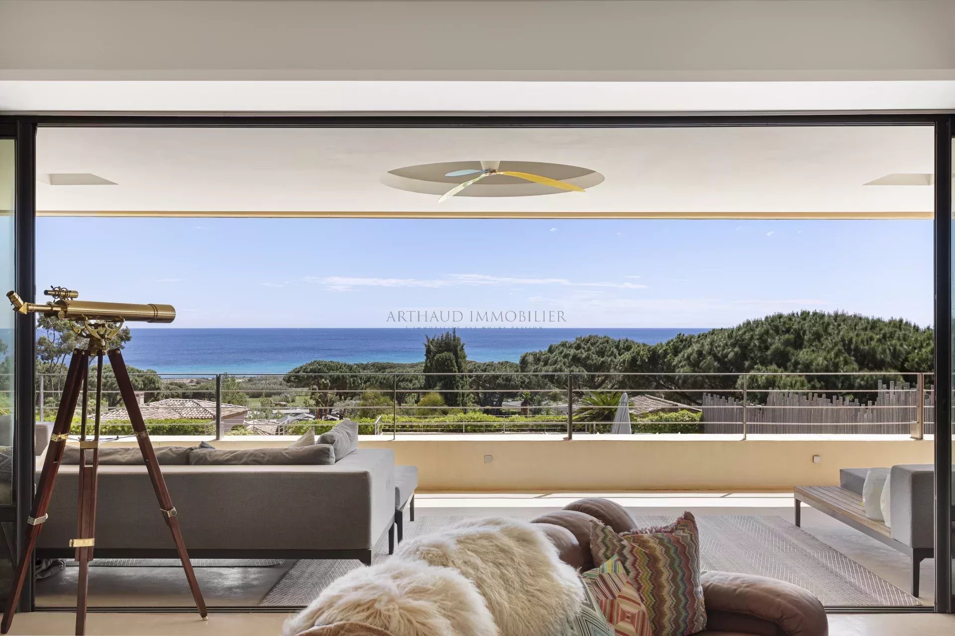 Nichée dans une vallée isolée, la propriété bénéficie d'une double exposition remarquable. À l'ouest, les montagnes se déploient, tandis qu'à l'est s'étend le golfe de Saint-Tropez, offrant des levers et couchers de soleil inoubliables.