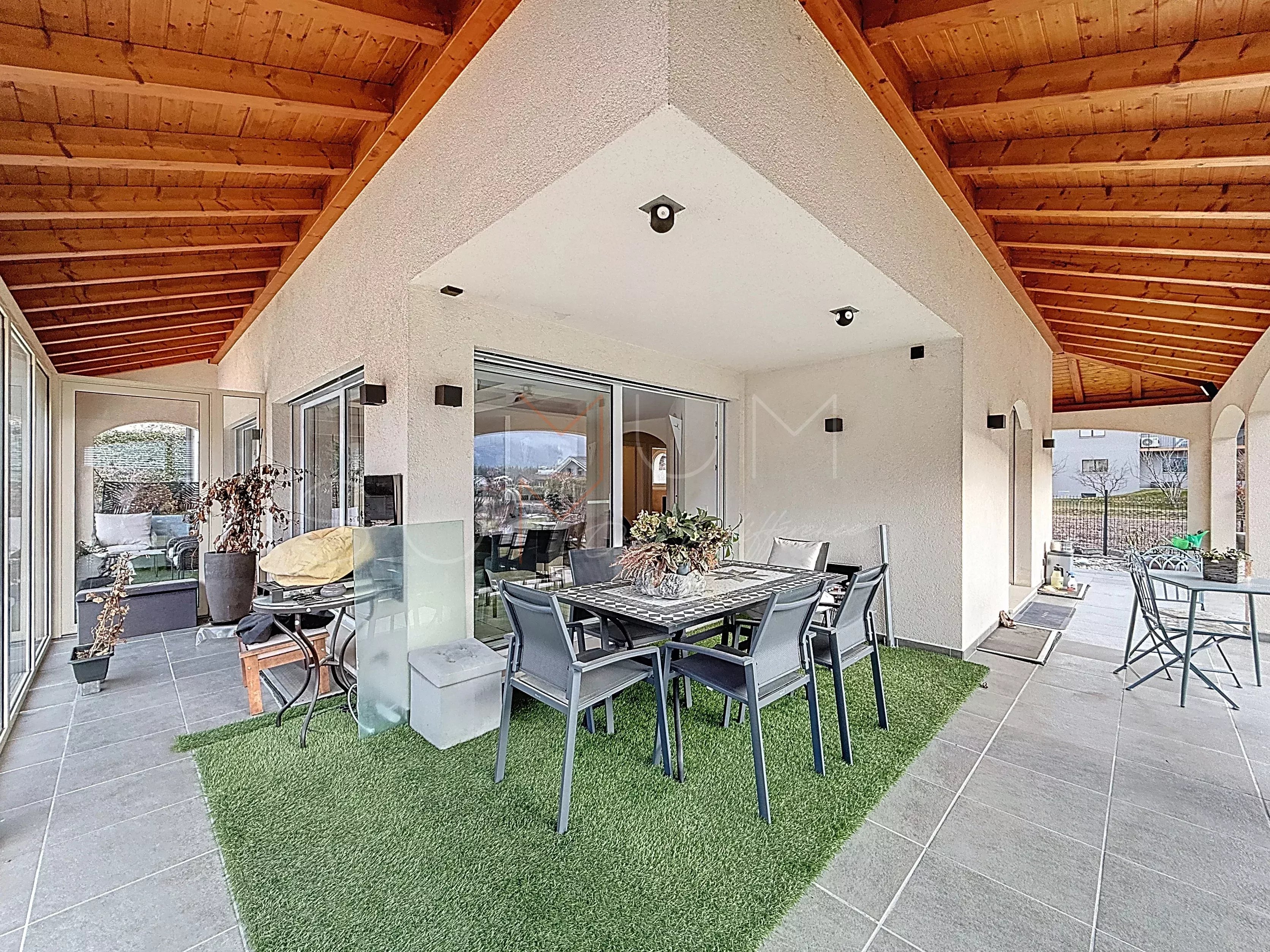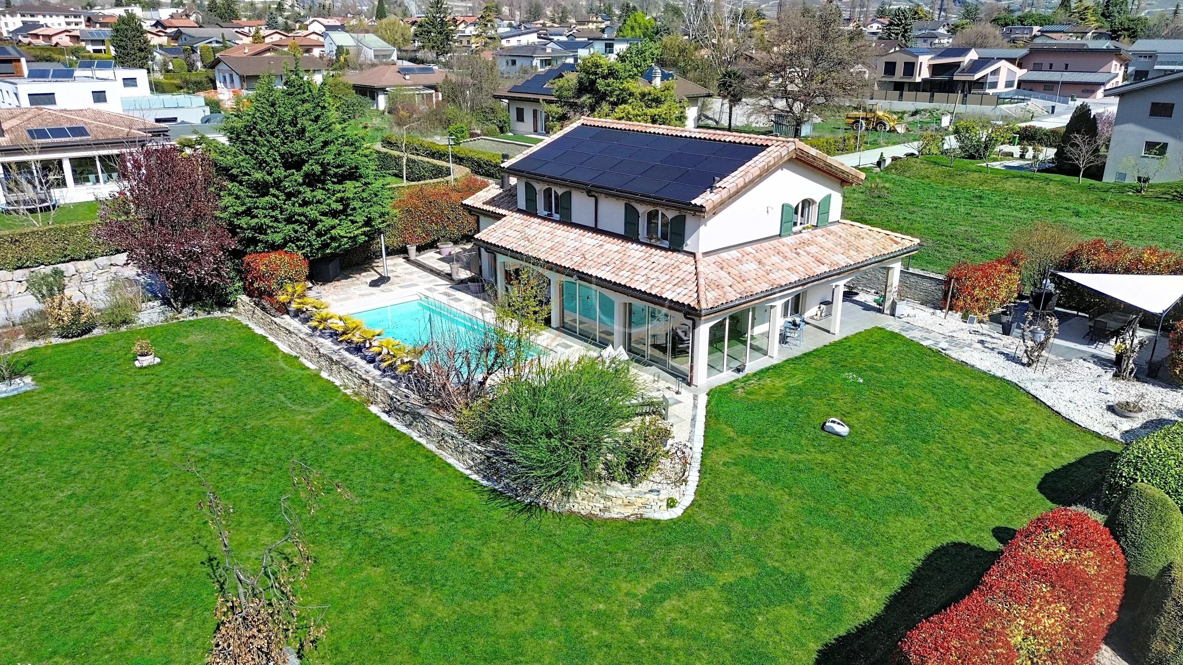 Cette élégante maison individuelle de standing, construite en 2008, est implantée sur une magnifique parcelle de 1’500 m² avec piscine et aménagements extérieurs soignés.