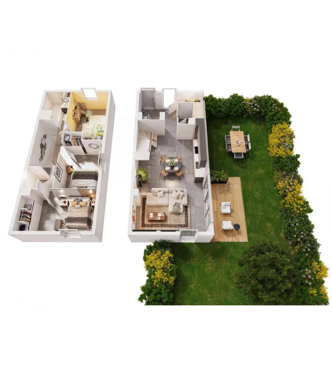 Espace nuit indépendant : À l'étage, vous trouverez deux chambres confortables et une salle d'eau moderne.