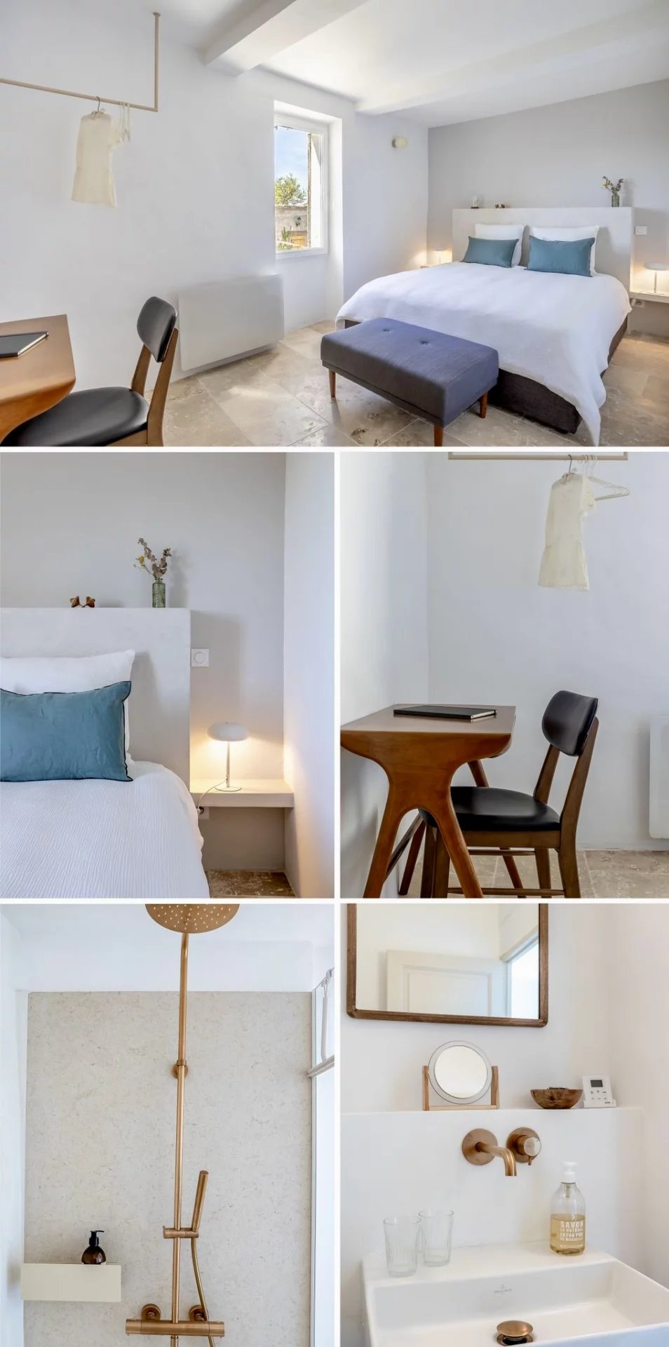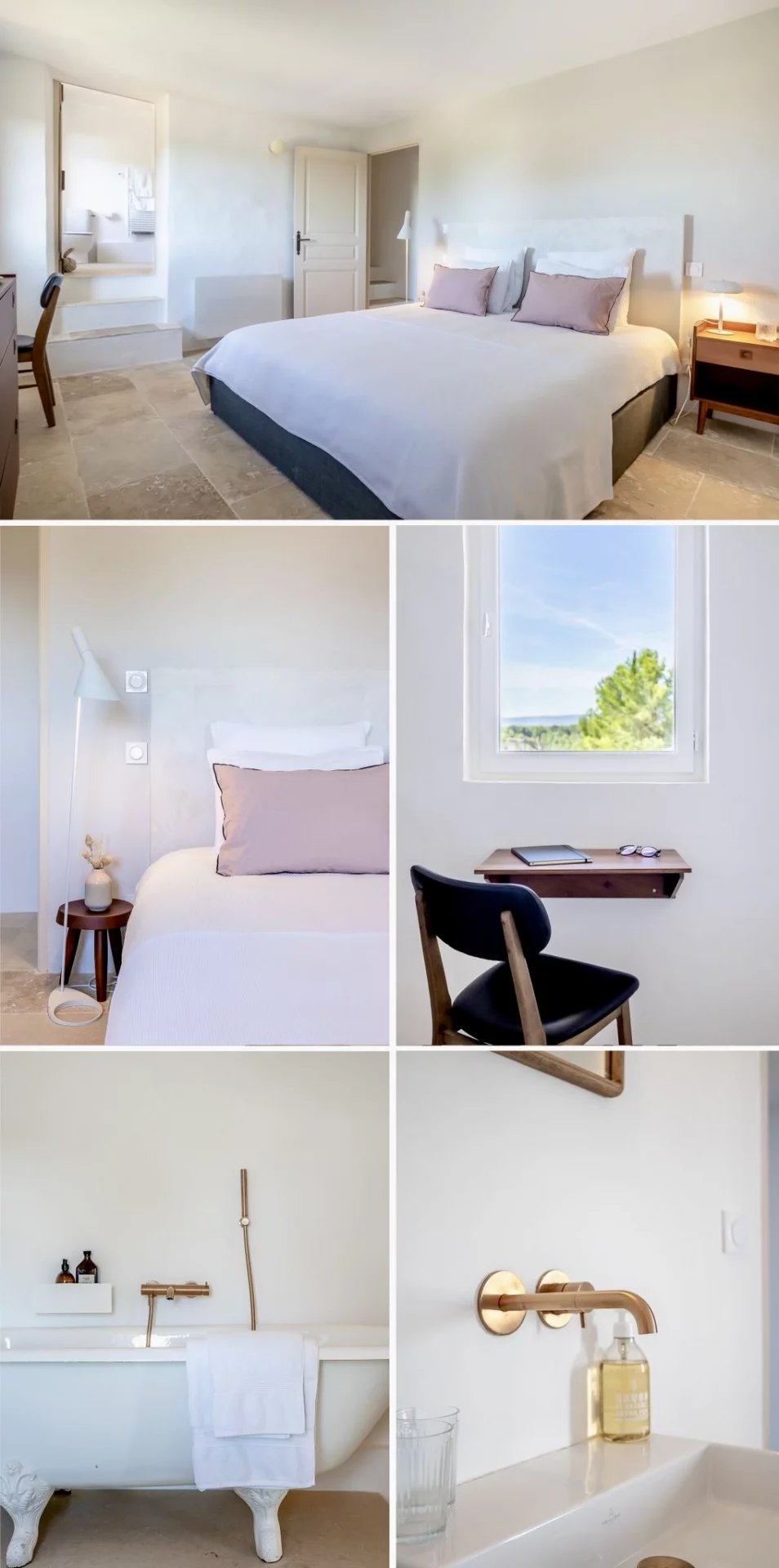 À l’étage, quatre chambres et un bureau (ou chambre d’appoint) offrent un espace de nuit intimiste. Chacune possède sa propre salle d’eau, dont l’une dispose également d’une élégante baignoire sur pied.
