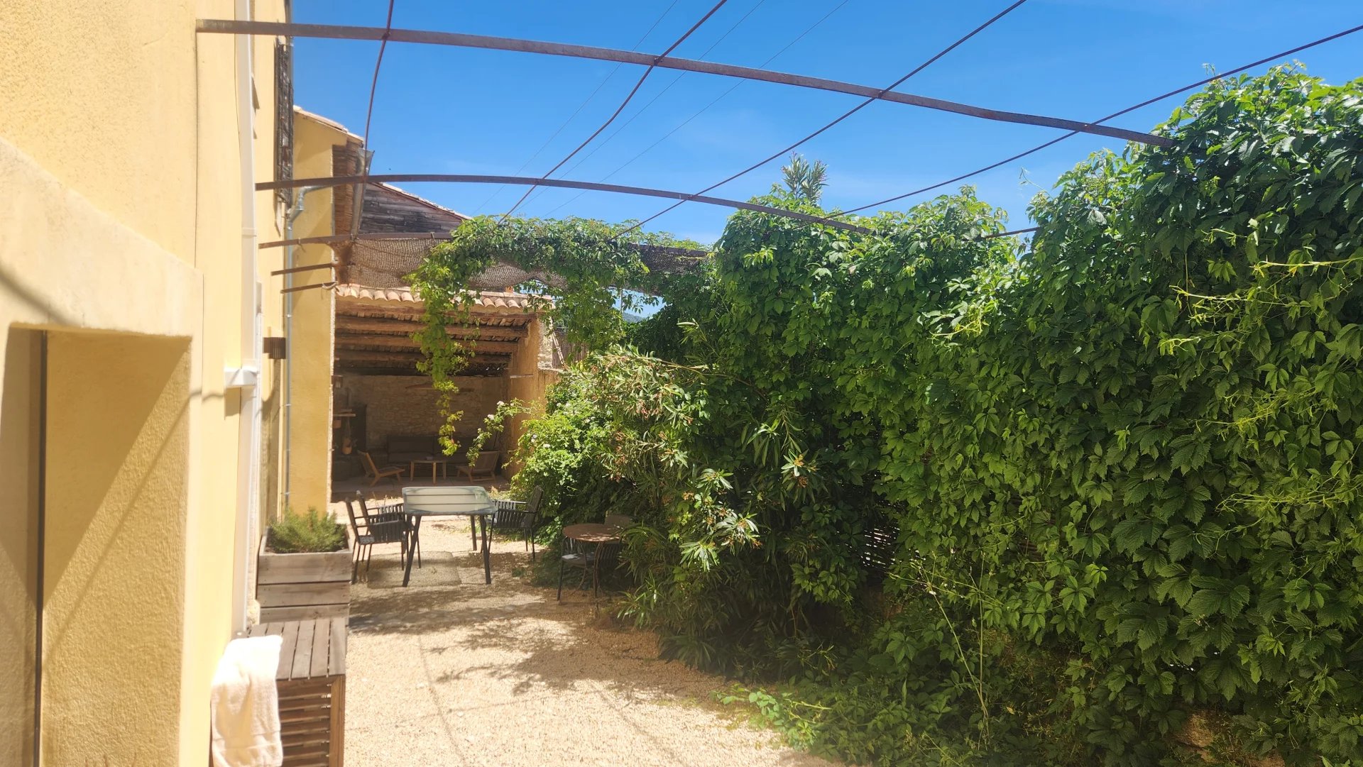 Un espace extérieur intime sans vis-à-vis invite à la détente en toute tranquillité, un bassin de nage pourrait facilement y être installé. Cet espace est parfait pour profiter pleinement de la douceur provençale sans les contraintes d’un grand jardin.