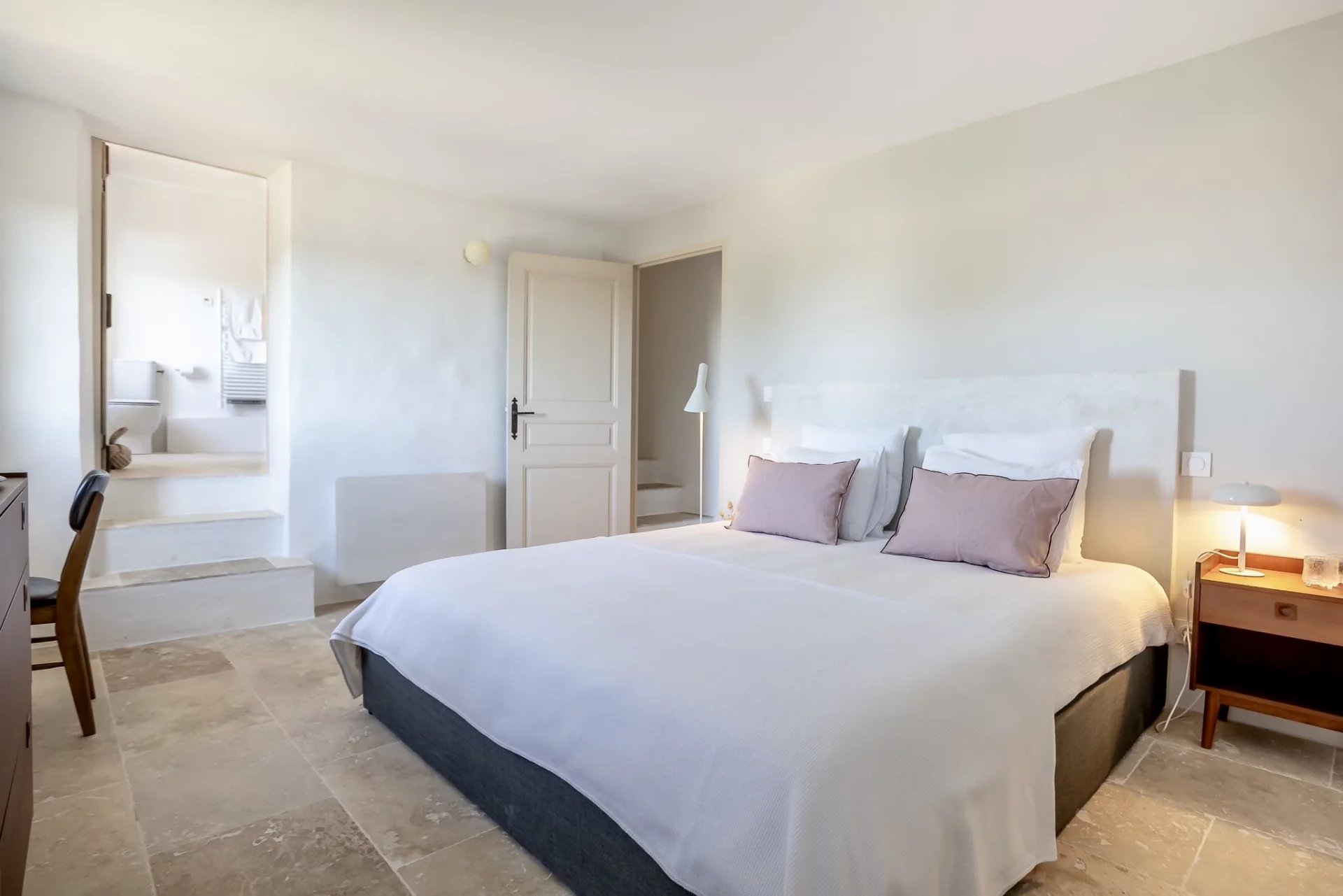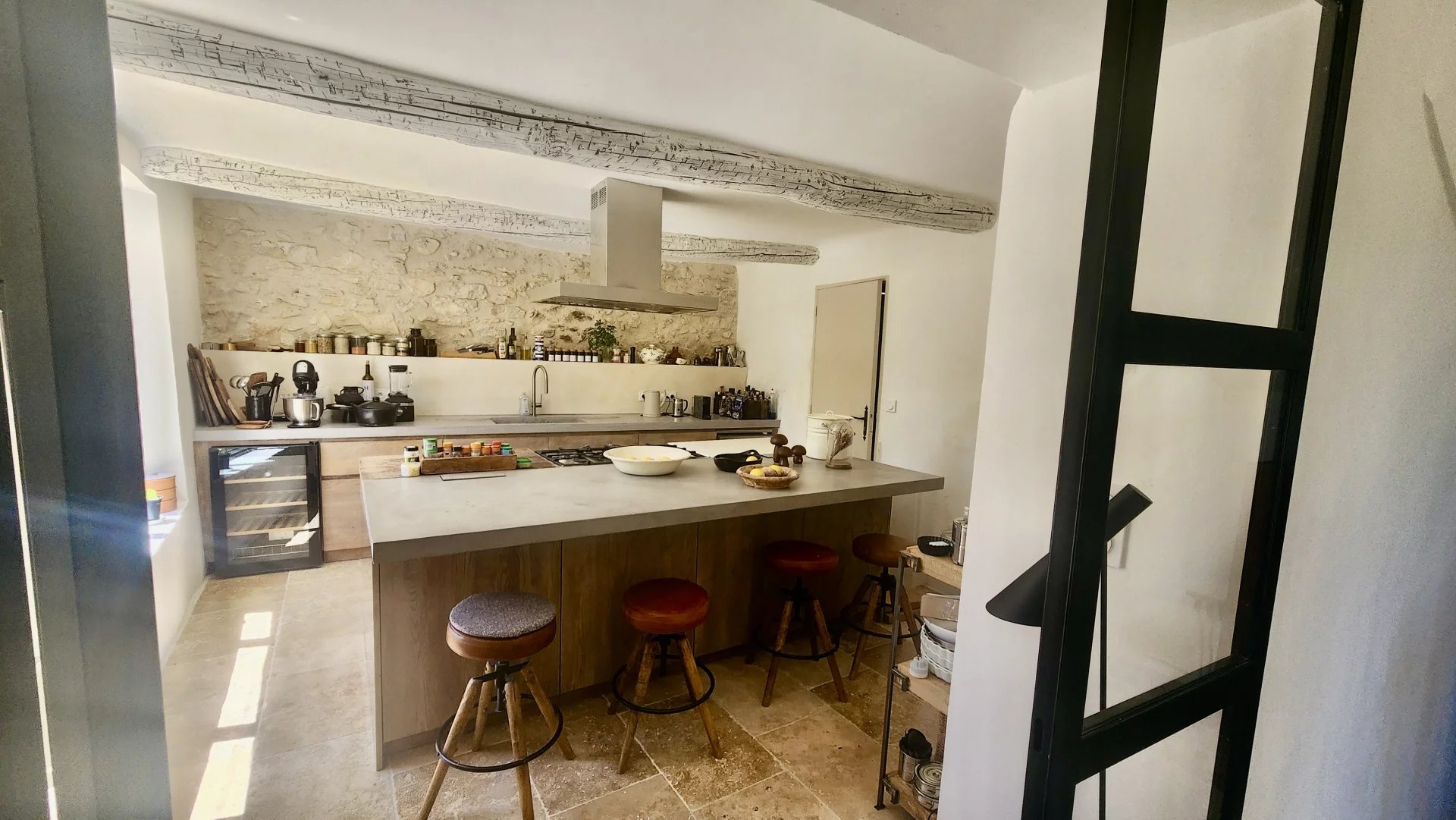 Matériaux de qualité, murs en pierres, sols en travertin, volumes généreux, luminosité omniprésente et rénovation soignée font de cette maison un pied-à-terre idéal pour une grande famille ou une résidence secondaire sans contraintes d’entretien.