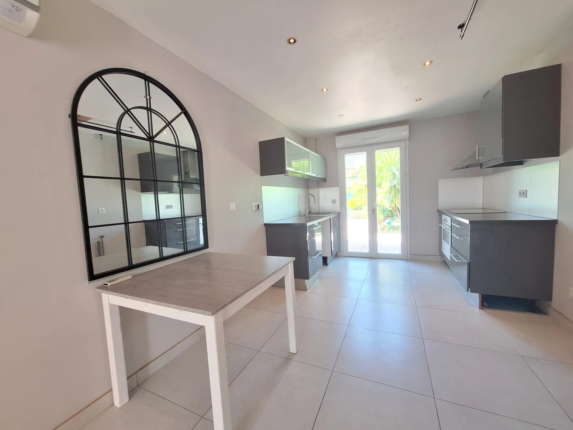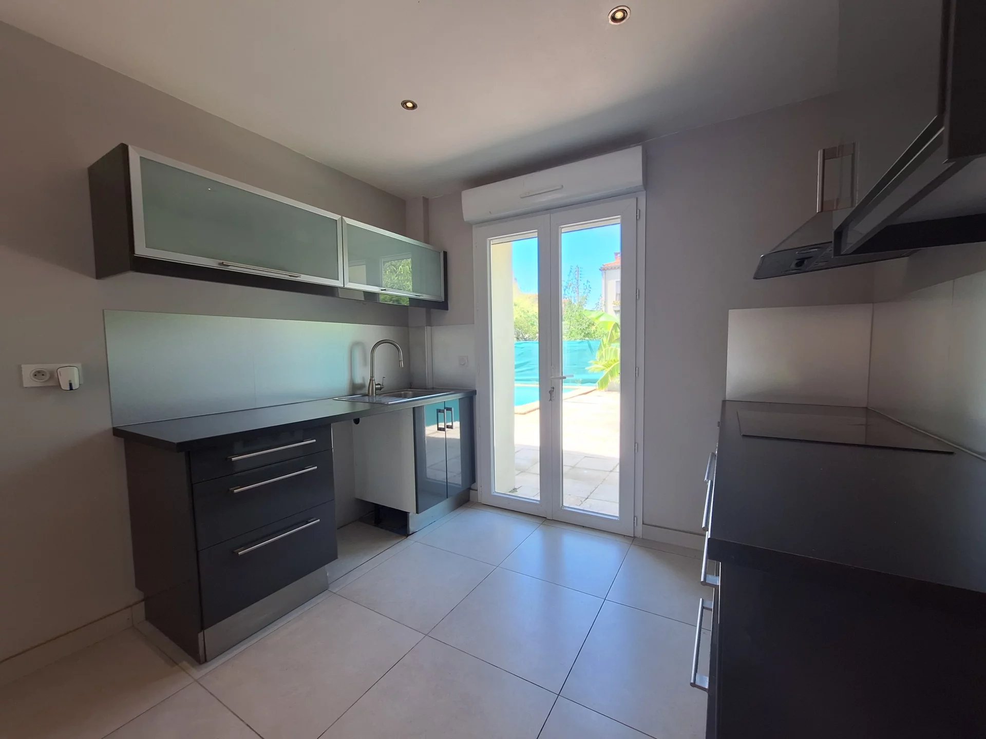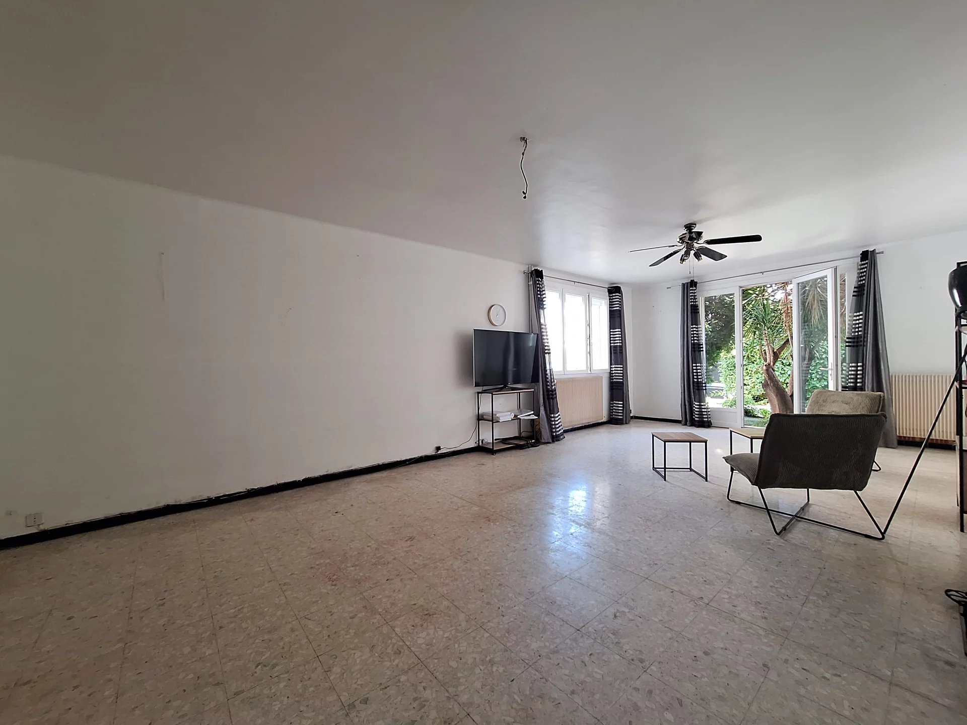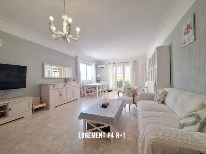 Au rez-de-chaussée, un appartement de type P4 de 111 m², de plain-pied, comprenant un vaste séjour lumineux, une cuisine séparée, trois chambres, une salle de bains. Le logement est équipé de menuiseries double vitrage, de volets roulants électriques, d’un chauffage au gaz de ville et de la climatisation réversible dans toutes les chambres. Il bénéficie d'un accès direct à la piscine.