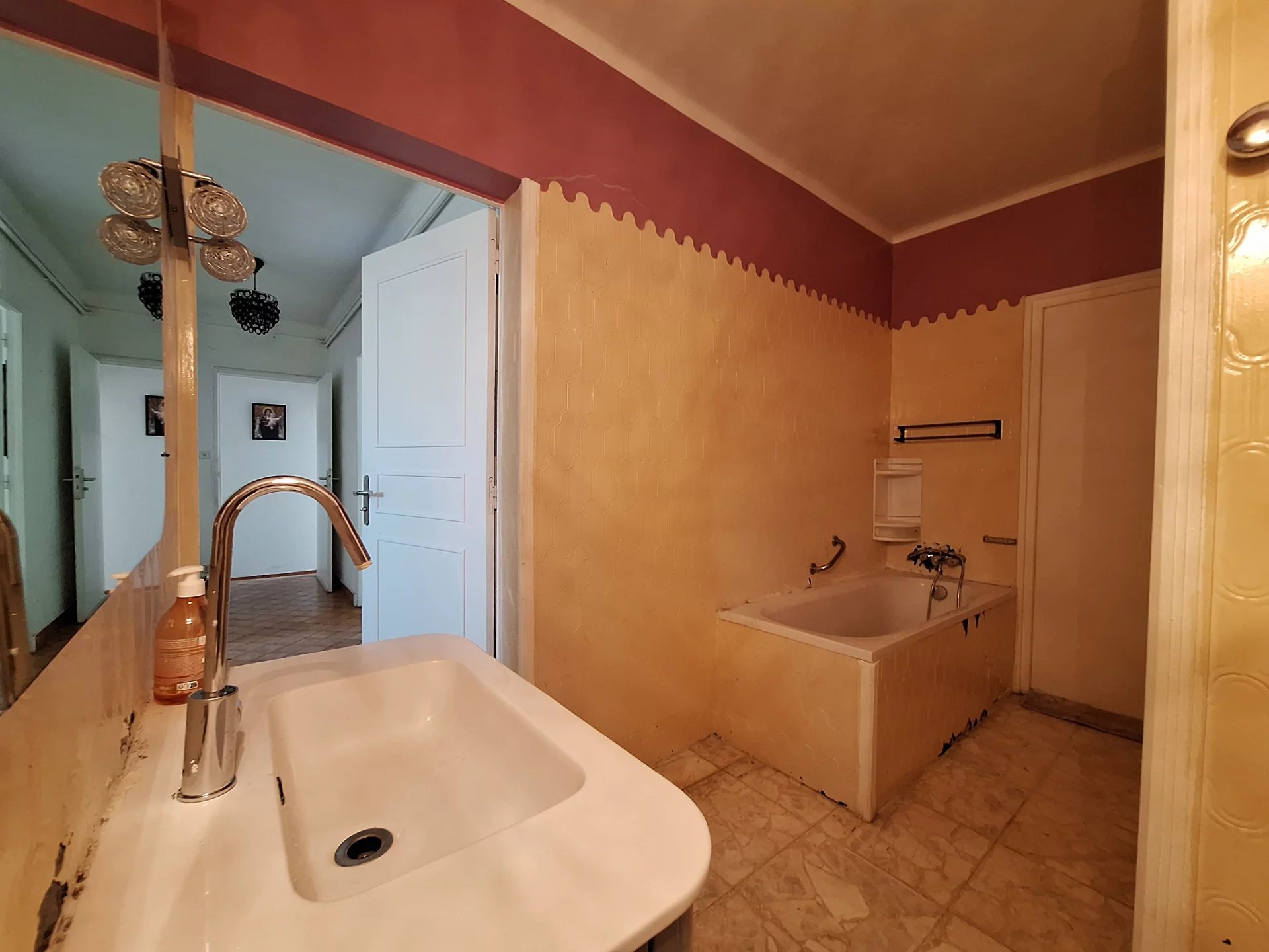 À l’étage, un appartement T4 de 134 m² avec entrée indépendante se compose d’un grand séjour, d’une cuisine séparée, de trois chambres, d’une salle d’eau, de WC indépendants, d’une buanderie, de nombreux rangements et d’un balcon. Ce logement est actuellement loué jusqu’en janvier 2026 pour un loyer de 1 100 € charges comprises, assurant un revenu locatif immédiat. Il dispose également d’une cour et d’une terrasse privatives en rez-de-chaussée, avec possibilité de stationnement.