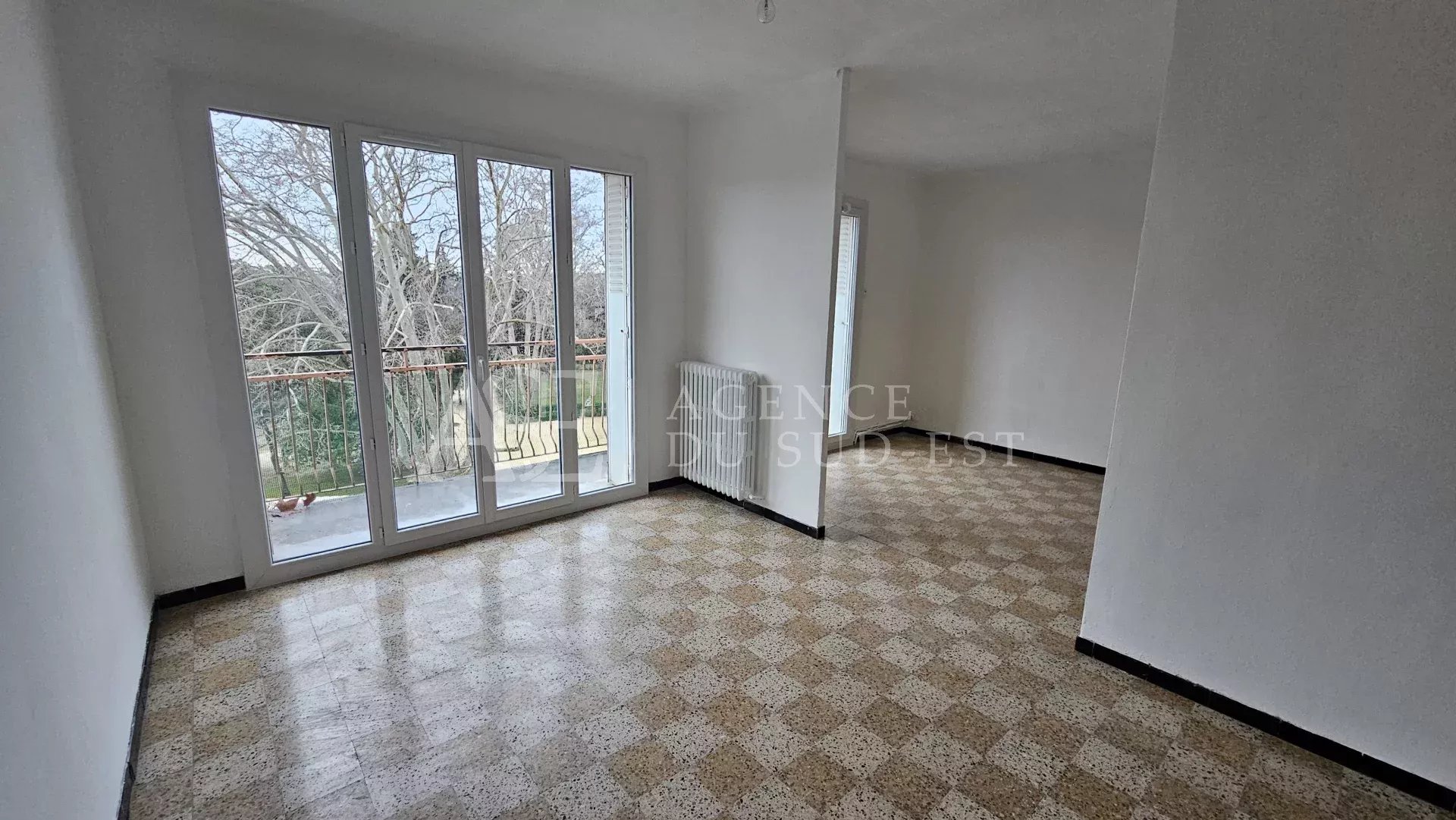 Appartement de type 5 au 4ème étage dans résidence fermée et sécurisée, proche des axes autoroutiers et vue sur la Bastide Jas de Bouffan, il est traversant. Comprenant : un hall d'entrée, une pièce principale donnant sur un grand balcon, une cuisine séparée, 3 chambres, une salle d'eau et wc.