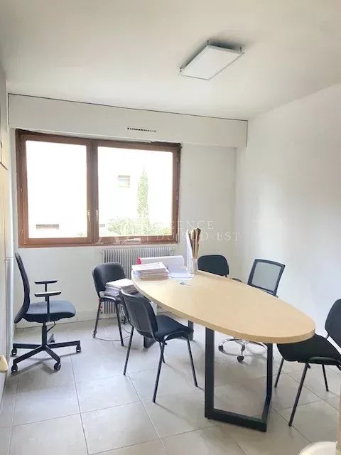 Aix Centre, quartier la Violette à pieds du centre historique, à 100 mètres du parking Pasteur, très lumineux, local professionnel de 3 pièces de 75 m2 au RDC, idéal pour profession libérale, entièrement refait à neuf, comprenant une grande entrée ouvrant sur le bureau principal côté Sud avec 2 prises au sol, 2 bureaux séparés avec grands placards côté jardin, 1 salle d'eau avec WC PMR.