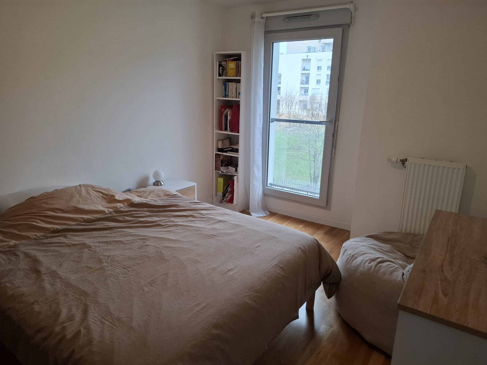 F2 lumineux de 41.34 m2 avec balcon de 6.58 m2 au 2ème étage ascenseur, exposition Sud-Ouest, vue donnant sur un magnifique parc paysager avec plan d’eau. Résidence récente sécurisée arborée, nouveau quartier du Clos D’Ambert au calme. Entrée séparée avec placard aménagé, séjour-cuisine ouverte avec grande baie coulissante, salle d’eau meuble vasque avec douche, chambre de 12.78 m2, chauffage collectif gaz. Une place de parking au sous-sol et emplacements vélos collectifs sous appentis. 12 minutes à pied du RER A de Noisy Champs, réaménagement en cours du quartier de la gare Grand Paris avec les nouvelles lignes de métro 15 et 16. Proche commerces, centre commercial, quartier universitaire, stations bus 310 et 320. Facilité d’accès à l’autoroute A4 et à la voie rapide D19