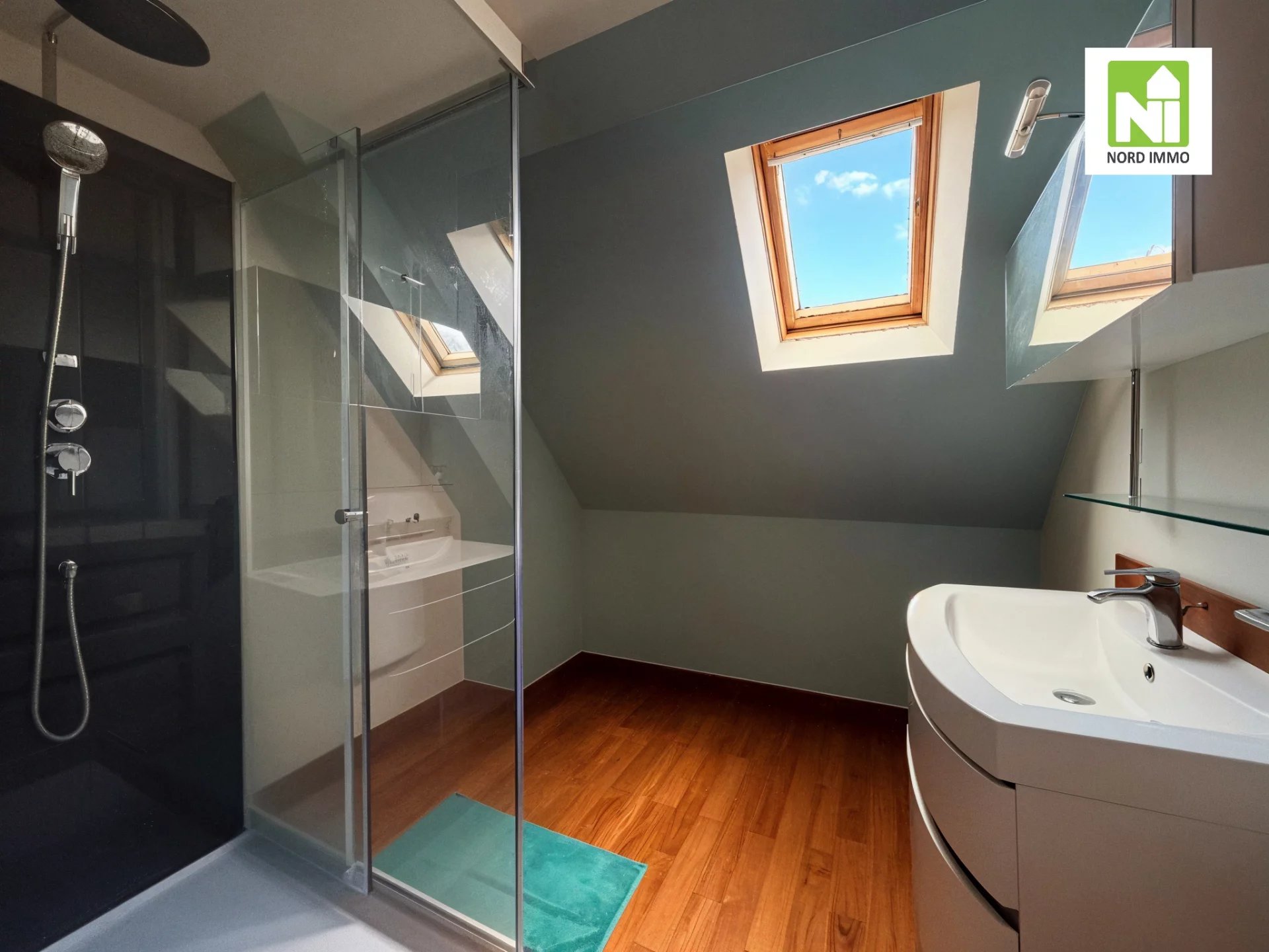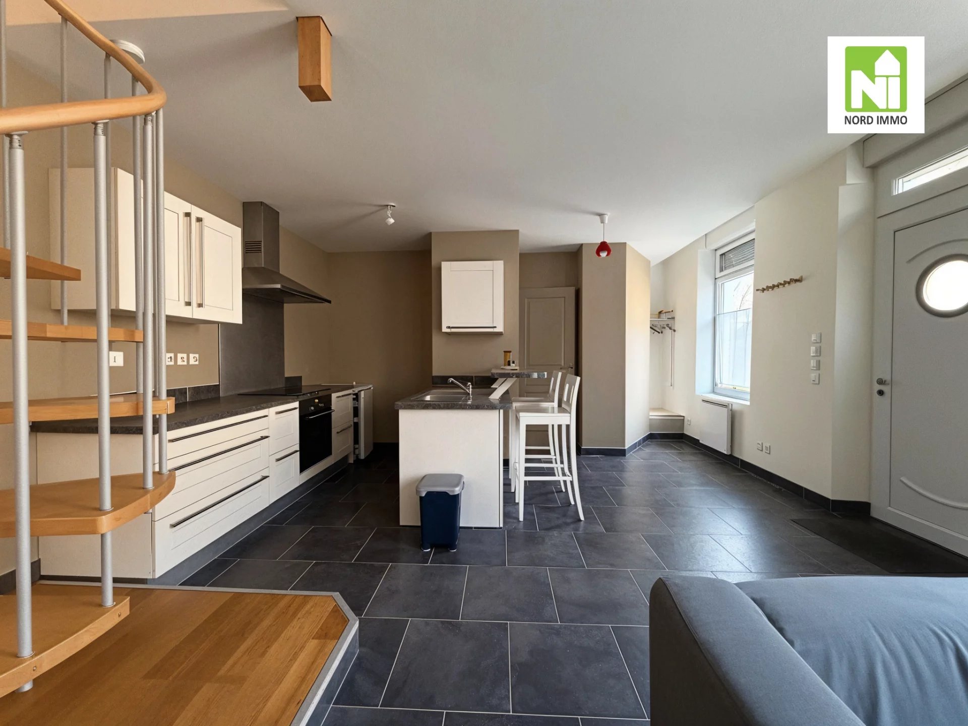 LOCATION MEUBLE Nord Immo vous propose à la location cette charmante maison située à Avelin dans un hameau au cœur de la campagne. La maison se compose d’une belle pièce de vie ouverte accueillant, un salon/séjour, une salle à manger et une cuisine équipée (plaques, hotte, four, lave vaisselle, frigidaire). Un Wc séparé et une buanderie complète ce niveau. Au premier étage, un palier / bureau desservant deux belles chambres et une salle de bain (vasque, douche, sèche serviette) Chauffage electrique, double vitrage PVC, volets roulants manuels. Pas de stationnement extérieur, pas d’extérieur. Visite possible après présentation de votre situation: CDI uniquement Contrat de travail 3 dernières fiche de paie Avis d’imposition Un garant physique minimum Loyer 720 euros Caution 720 euros Honoraires Bailleur 720 euros Honoraires aires locataires 720 euros