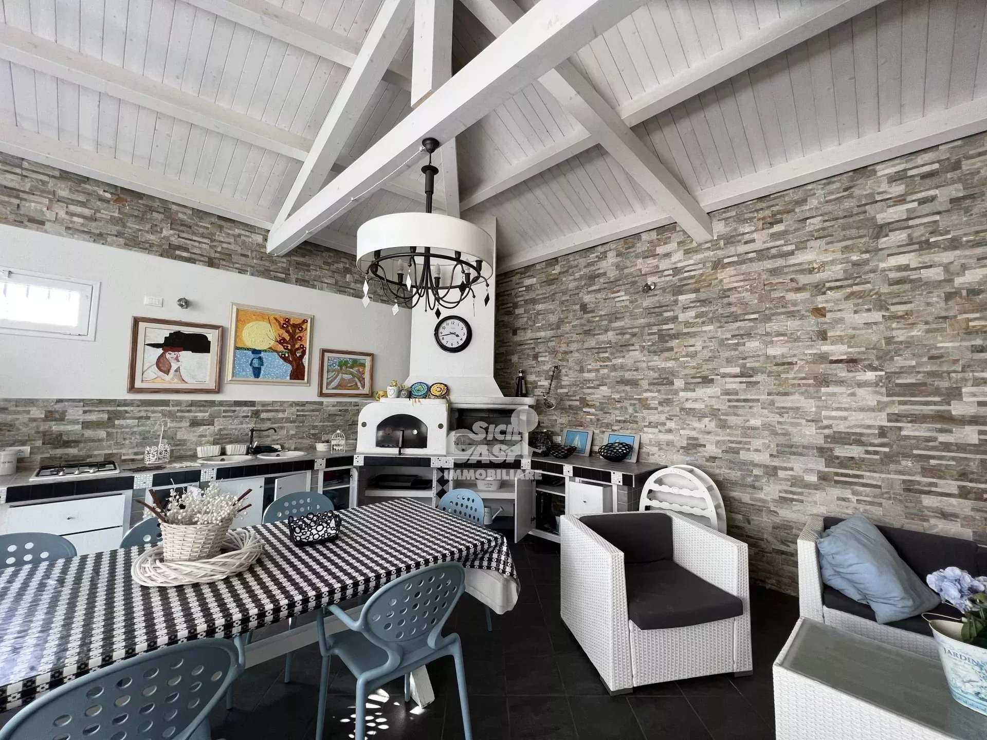 Proponiamo a Marsala, nella contrada Berbaro, a pochi metri dal mare e dai lidi balneari, in residence, la vendita di una villetta di piano terra, con annesso lotto di terreno recintato. La villetta si compone di un ampio salone con annessa cucina, di 2 camere da letto matrimoniale, bagno, disimpegno, ripostiglio e di ampio soggiorno di circa mq. 80, cn struttura in legno ove vi è ricavata zona barbecue, forno e cucina. Inoltre nella parte esterna, insistono due servizi e un deposito. Il tutto su lotto di terreno recintato ed attrezzato con piante e prato all'inglese. La villetta in ottime condizioni generali, totalmente ristrutturata, dotata di impianto di climatizzazione, bombolone gas.